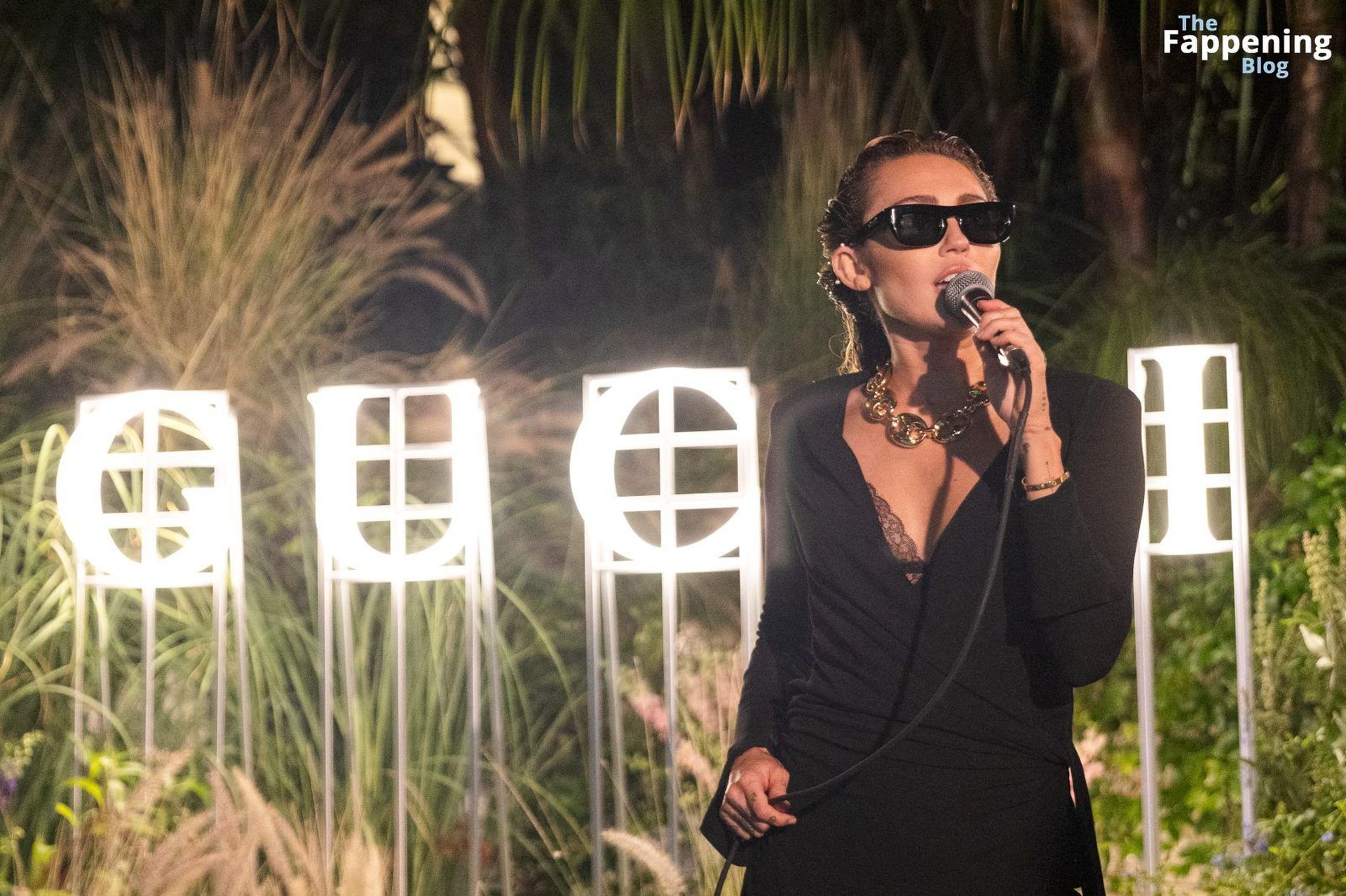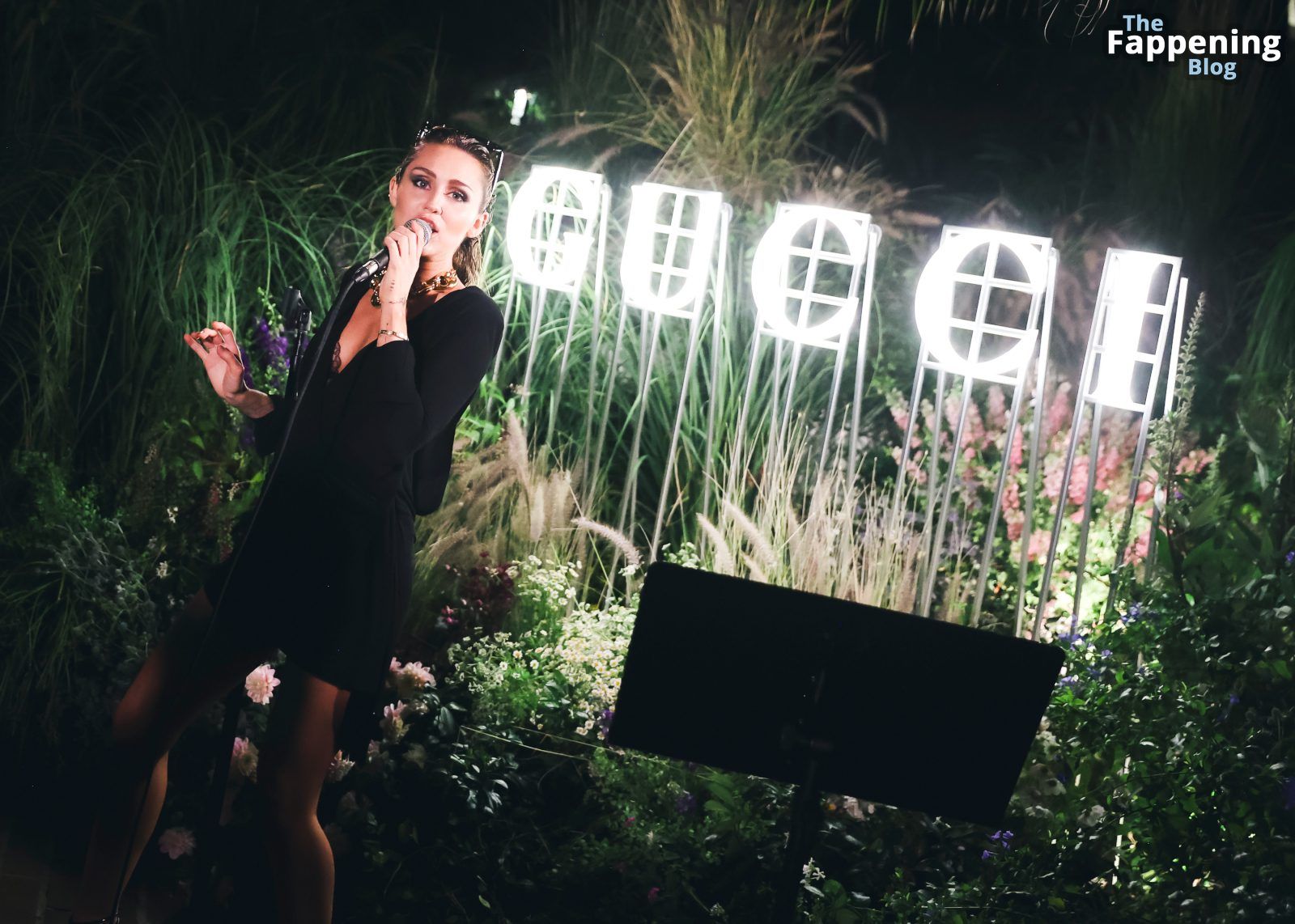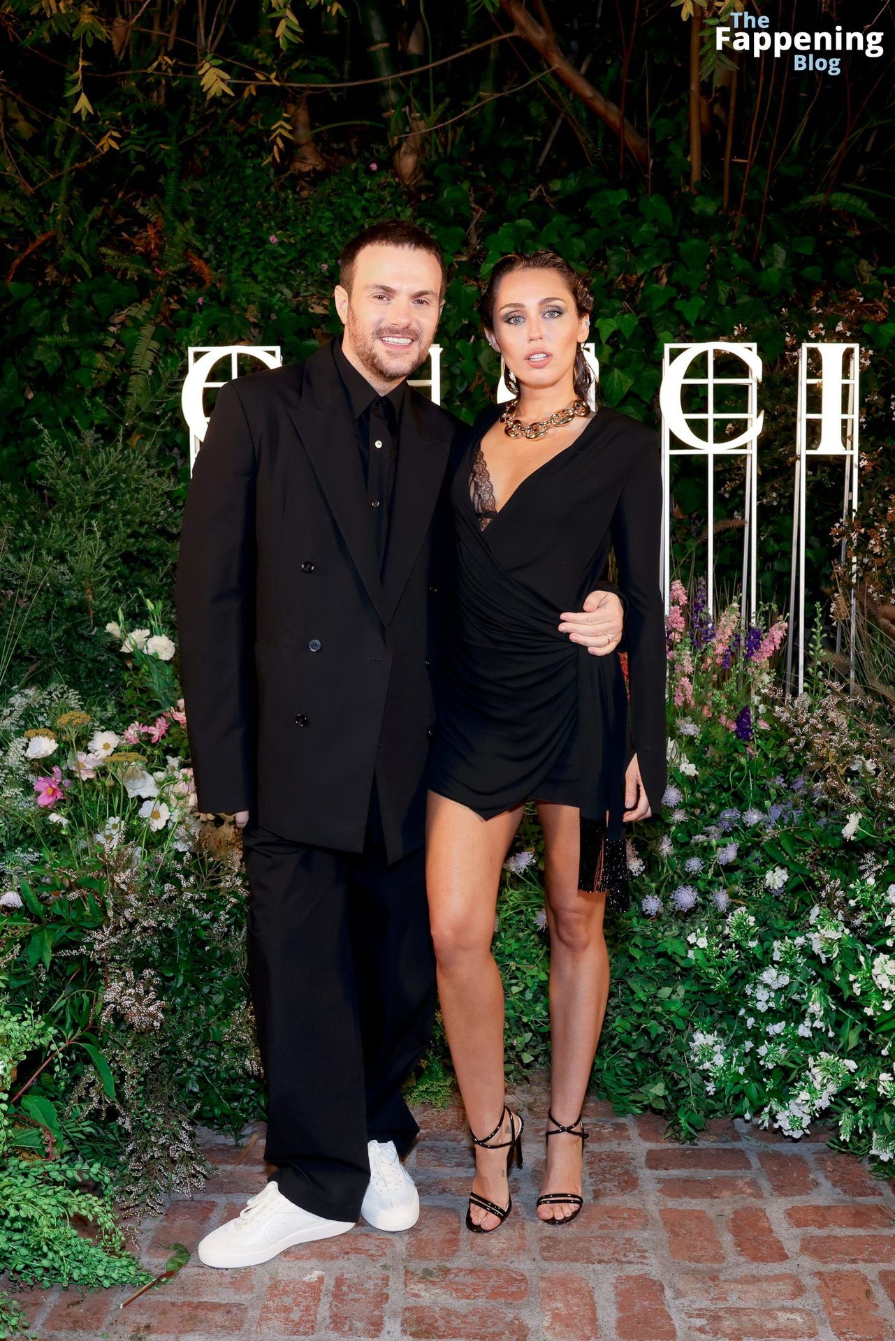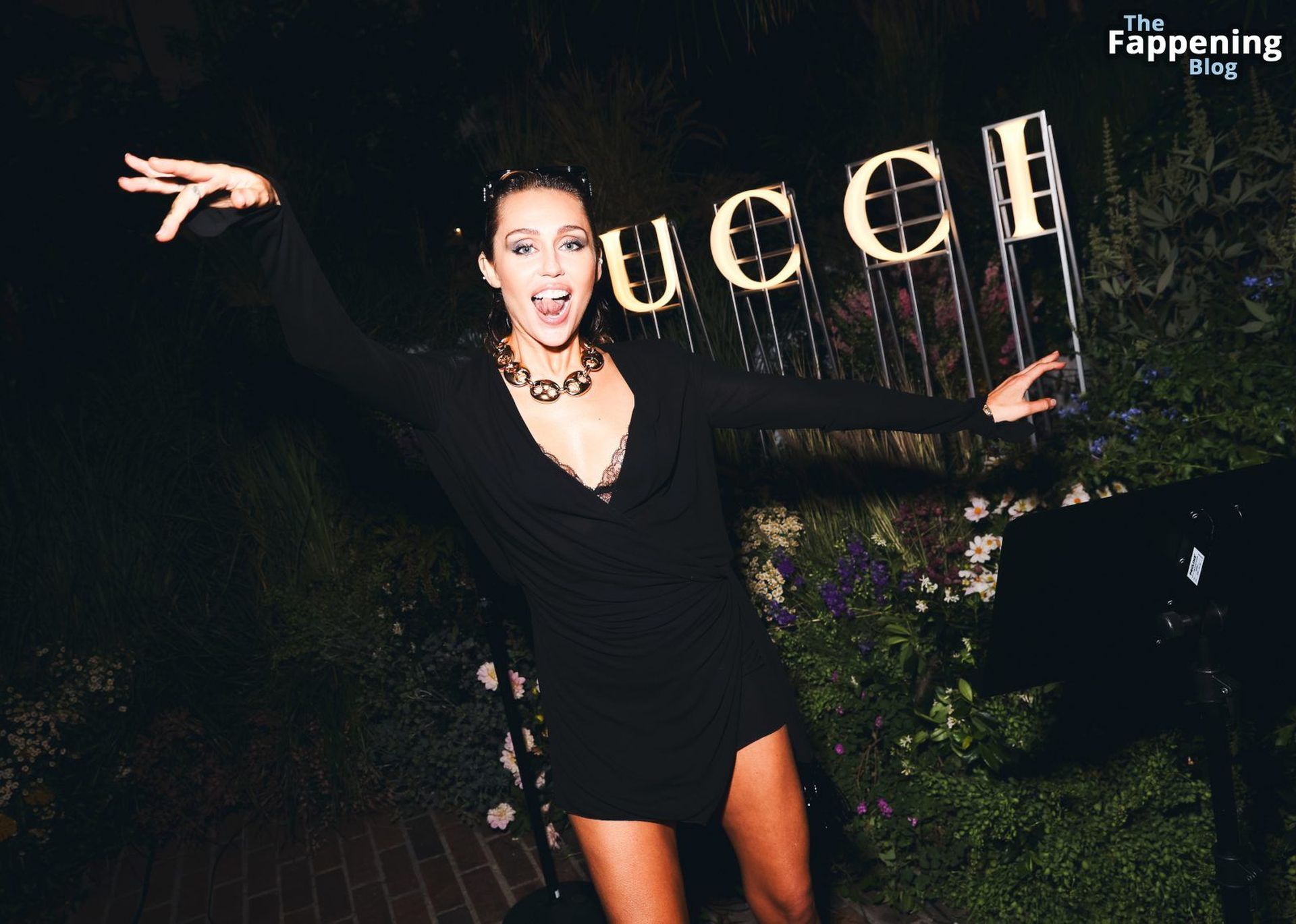 Miley Cyrus impressiona com um vestido preto, exibindo suas lindas pernas na Gucci Summer Celebration em LA.