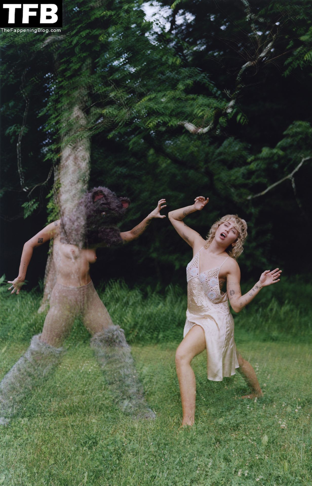 A estrela do Fappening Miley Cyrus exibe seus seios nus, pernas sensuais e um belo bumbum de calcinha, posando em um novo ensaio fotográfico de Brianna Capozzi para a Interview Magazine (2021).
