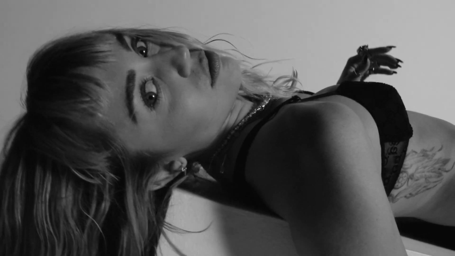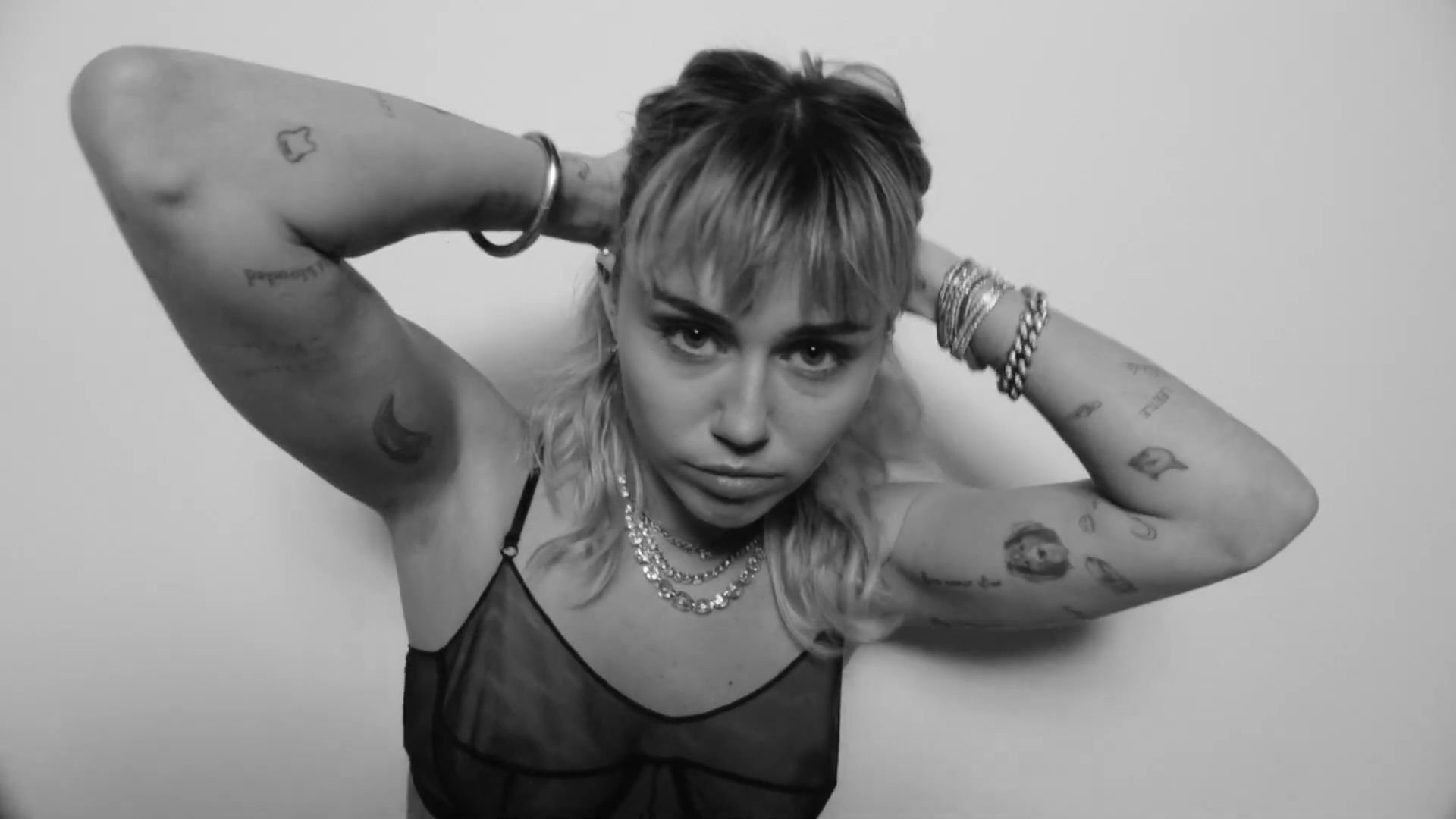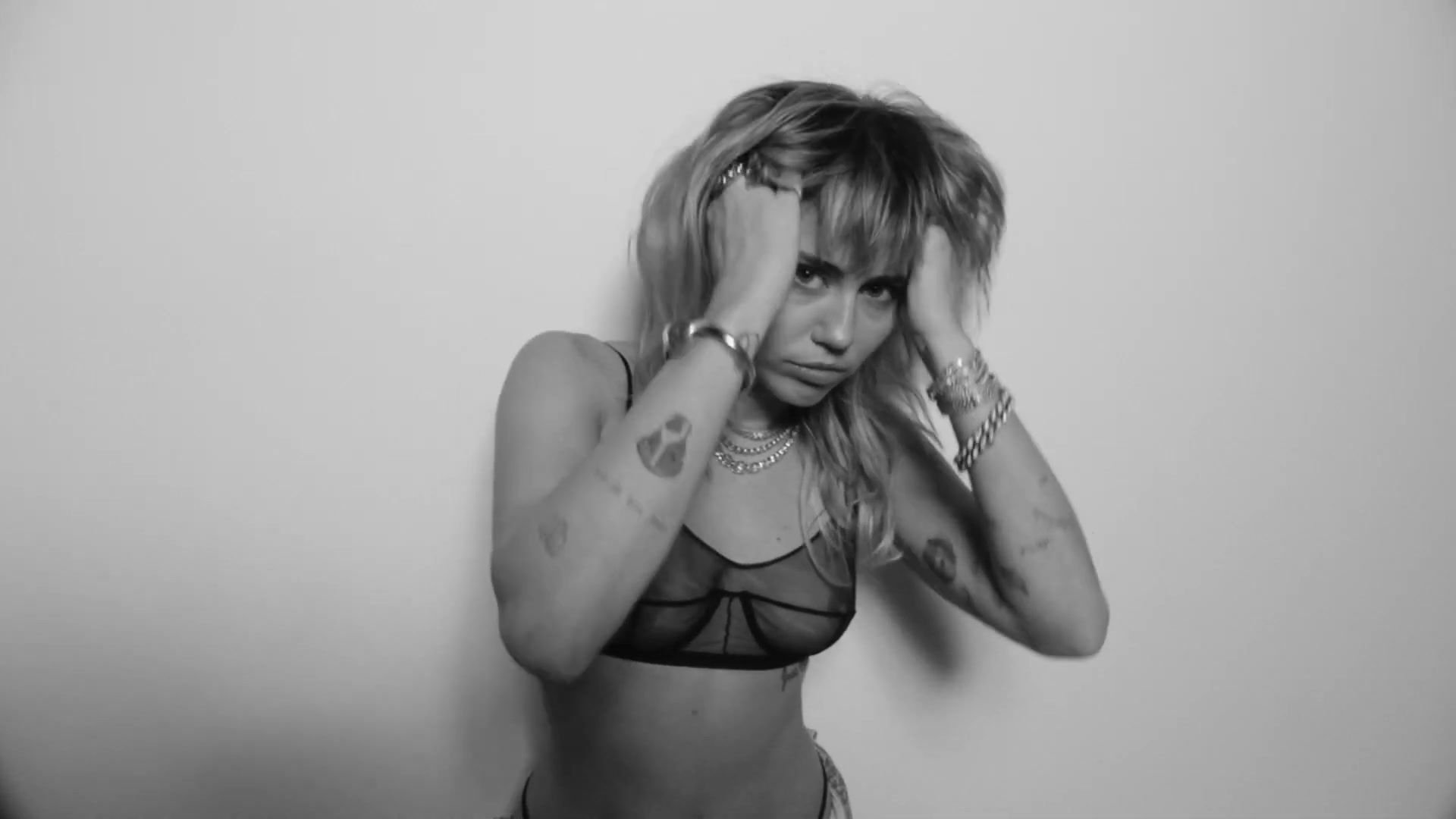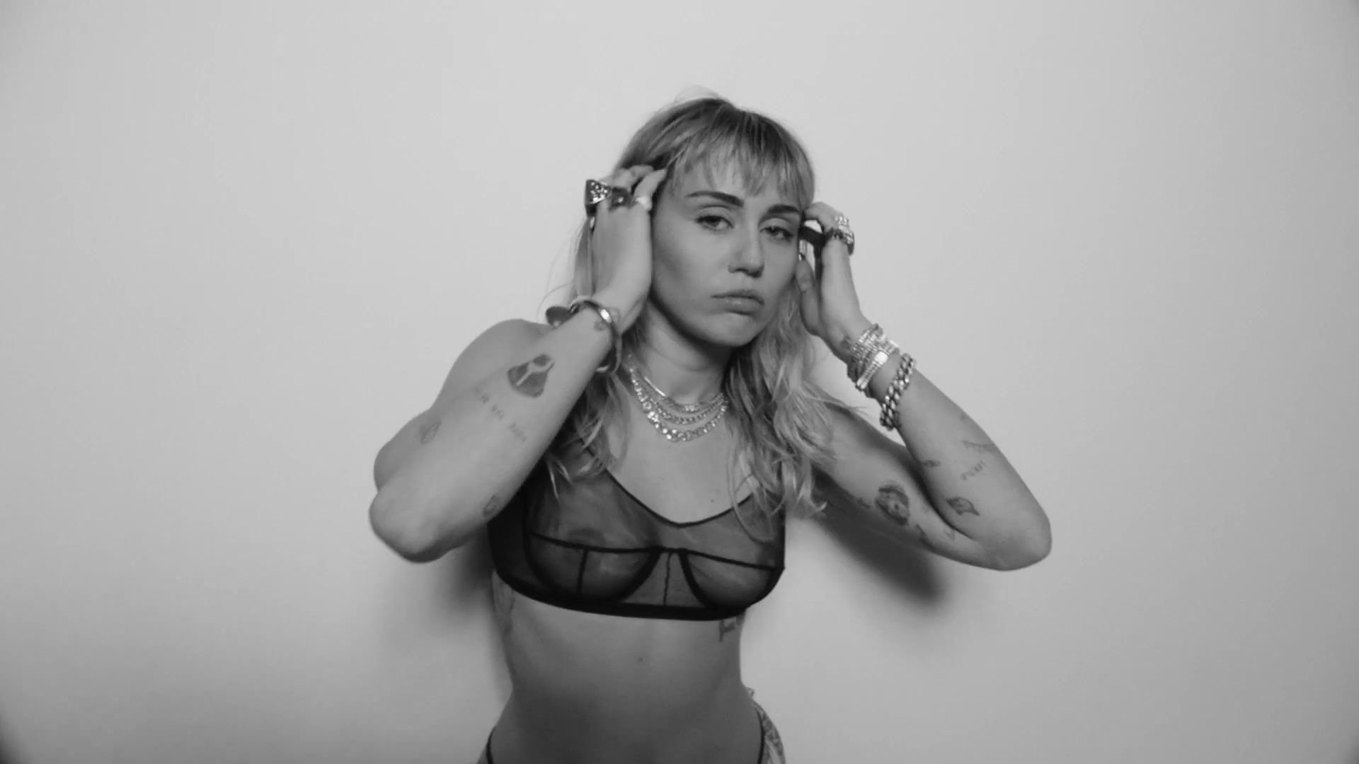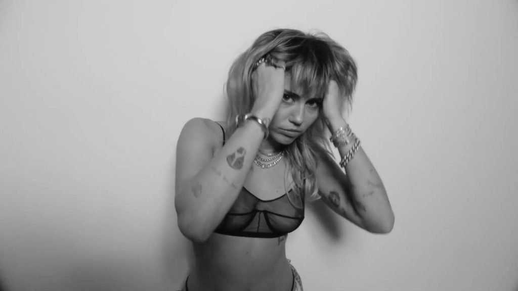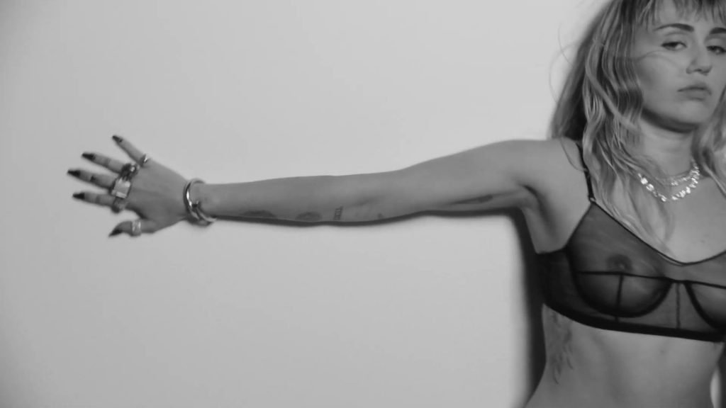 Cantora Miley Cyrus apresenta seu novo videoclipe levemente nua para promover seu novo álbum “She Is Coming”, onde você pode ver seus seios, enquanto ela posa com um sutiã transparente.