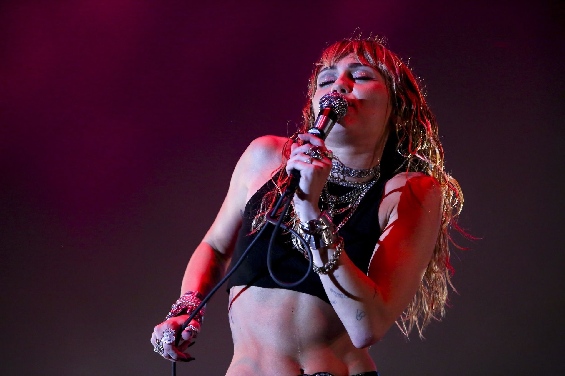 American singer Miley Cyrus performs on stage during a concert at the Sunny Hill Festival in Pristina, 08/02/2019. Confira também fotos/vídeos quentes do Instagram dela.
