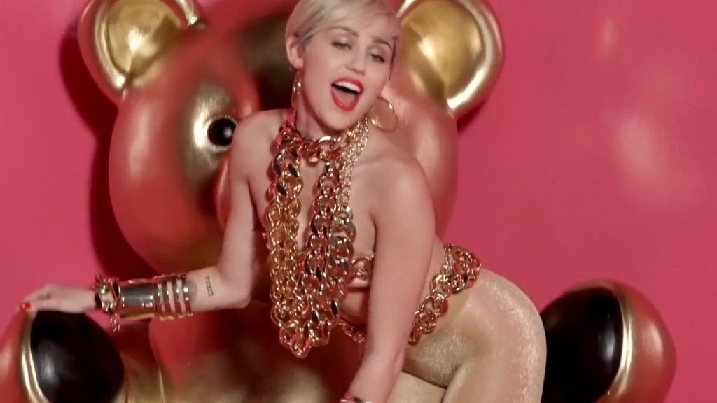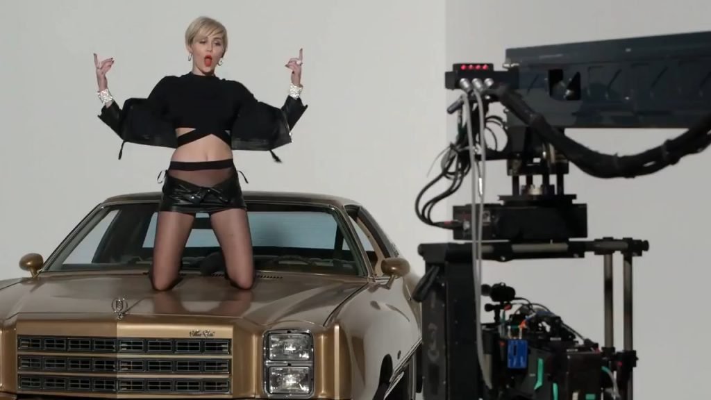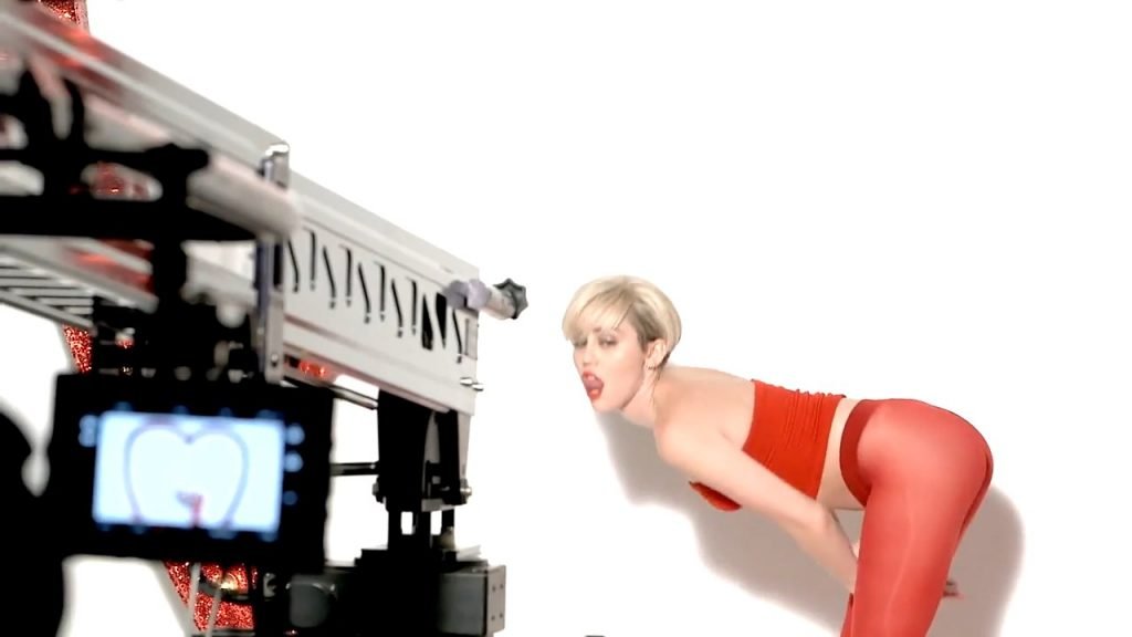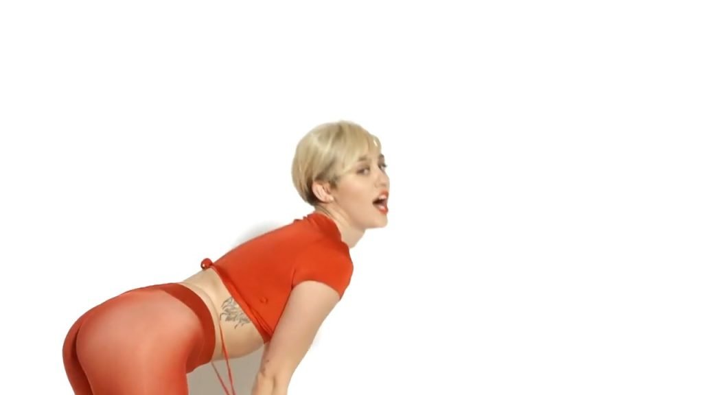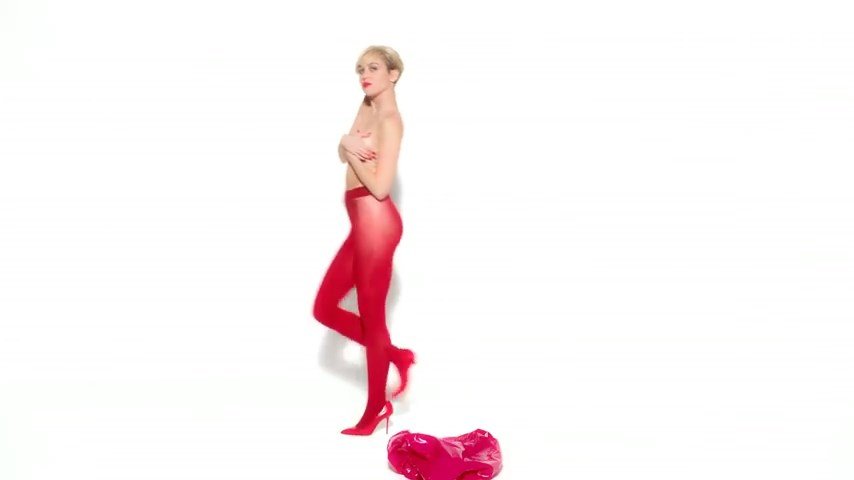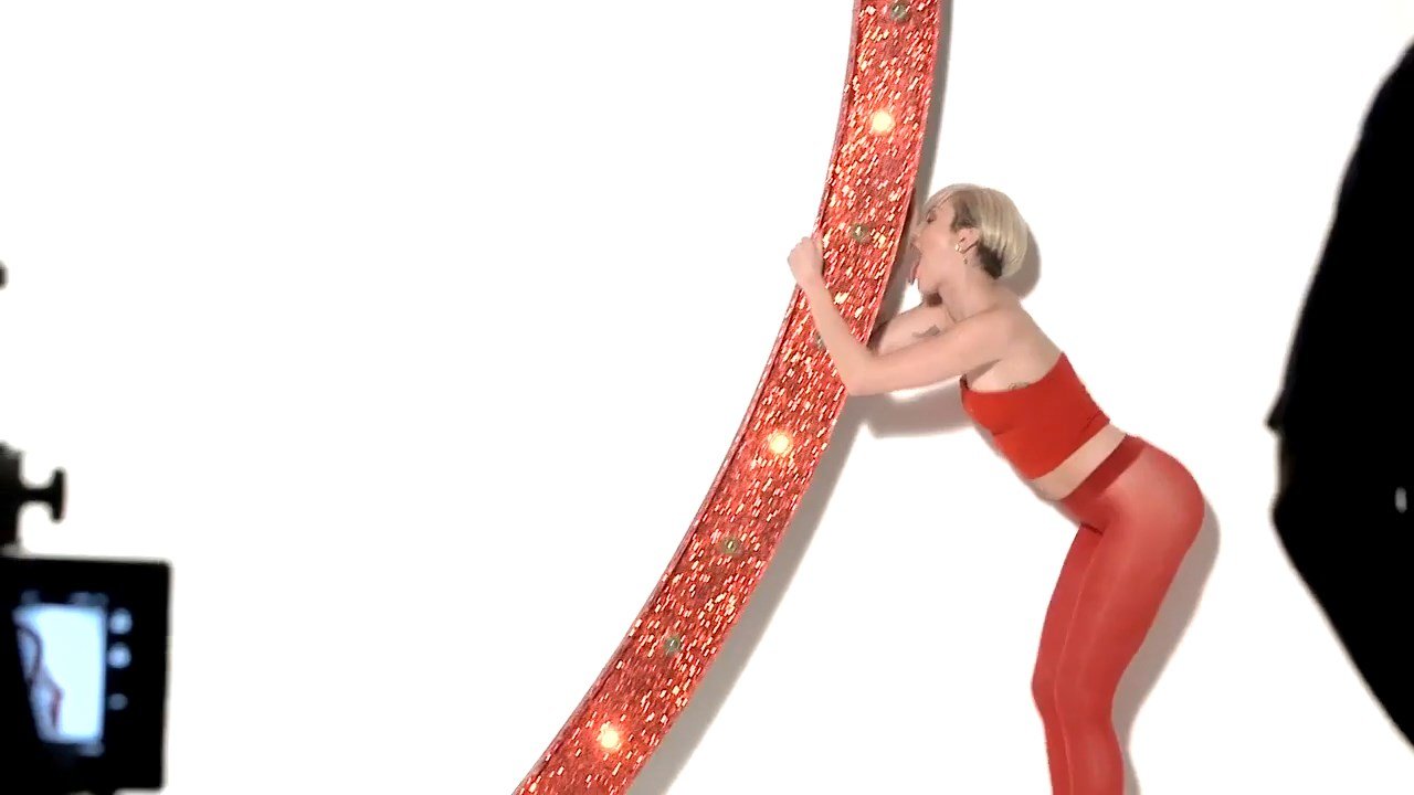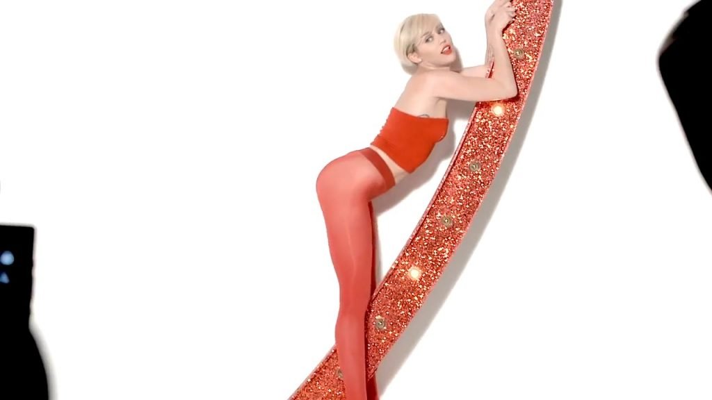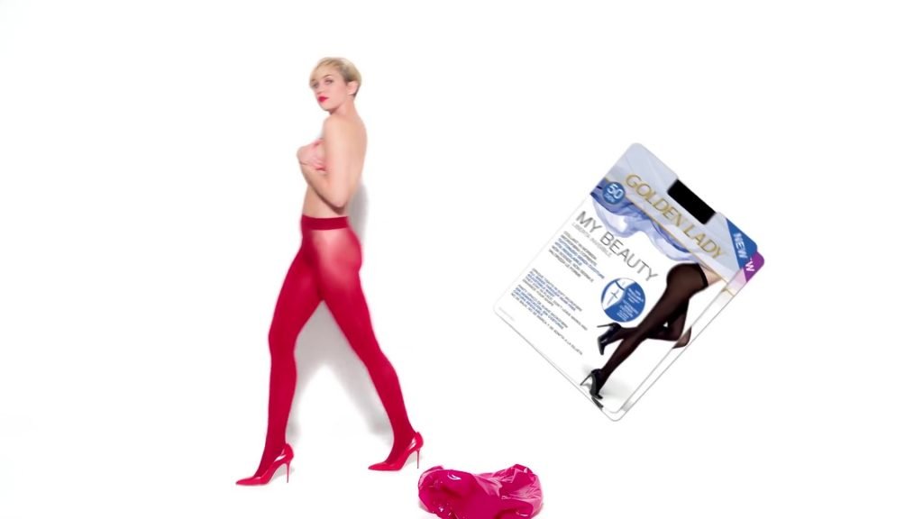 A cantora pop americana Miley Cyrus confirma a imagem da “garota escândalo” neste vídeo promocional de Terry Richardson “Rock Your Legs” para Golden Lady (2014).