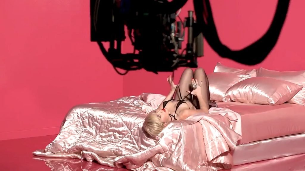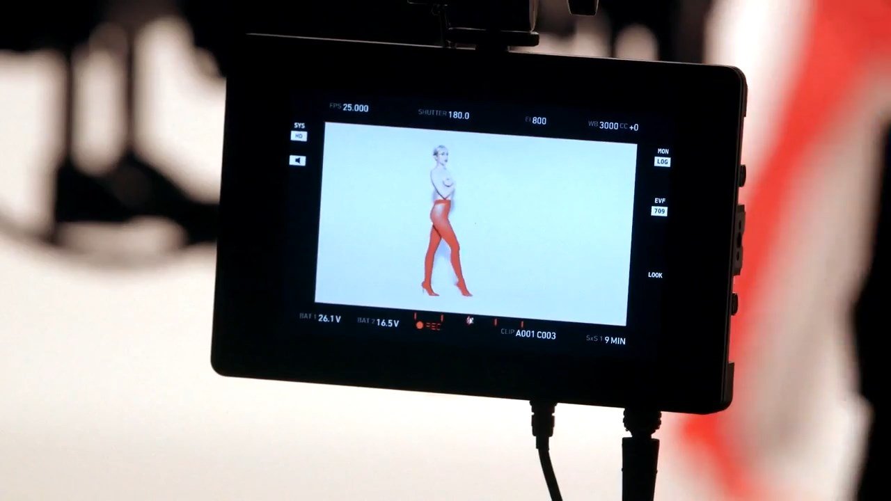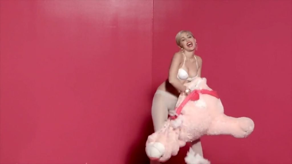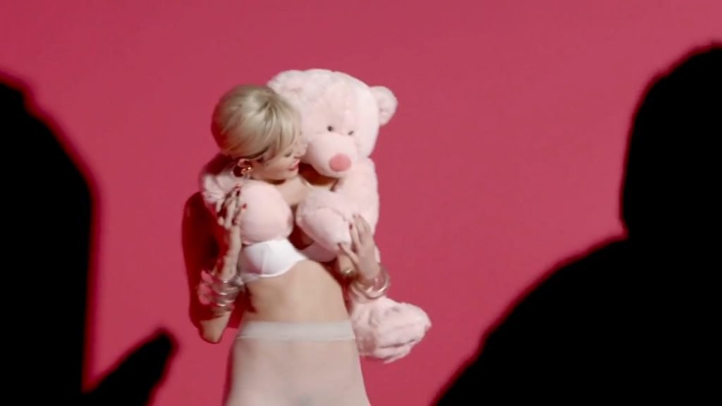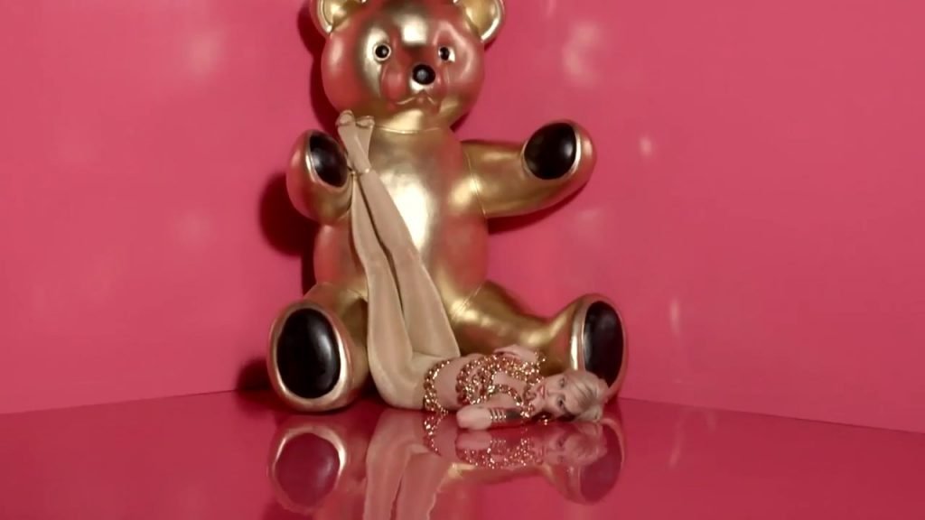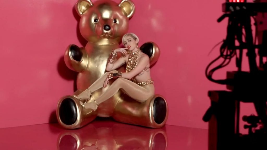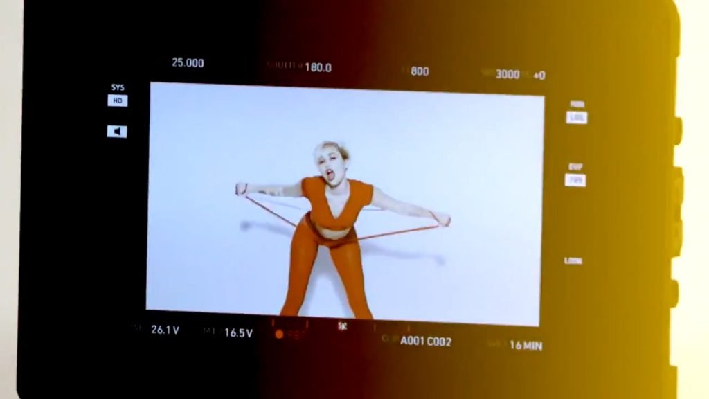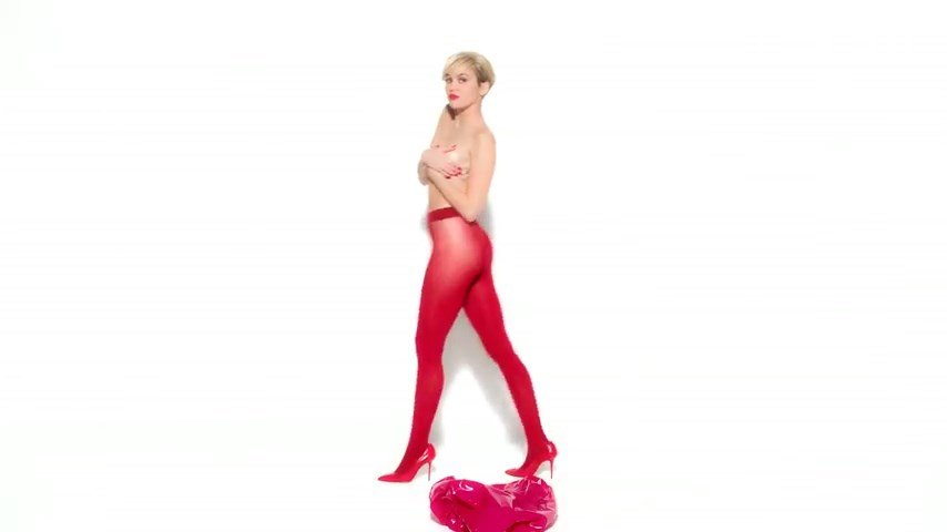 A cantora pop americana Miley Cyrus confirma a imagem da “garota escândalo” neste vídeo promocional de Terry Richardson “Rock Your Legs” para Golden Lady (2014).