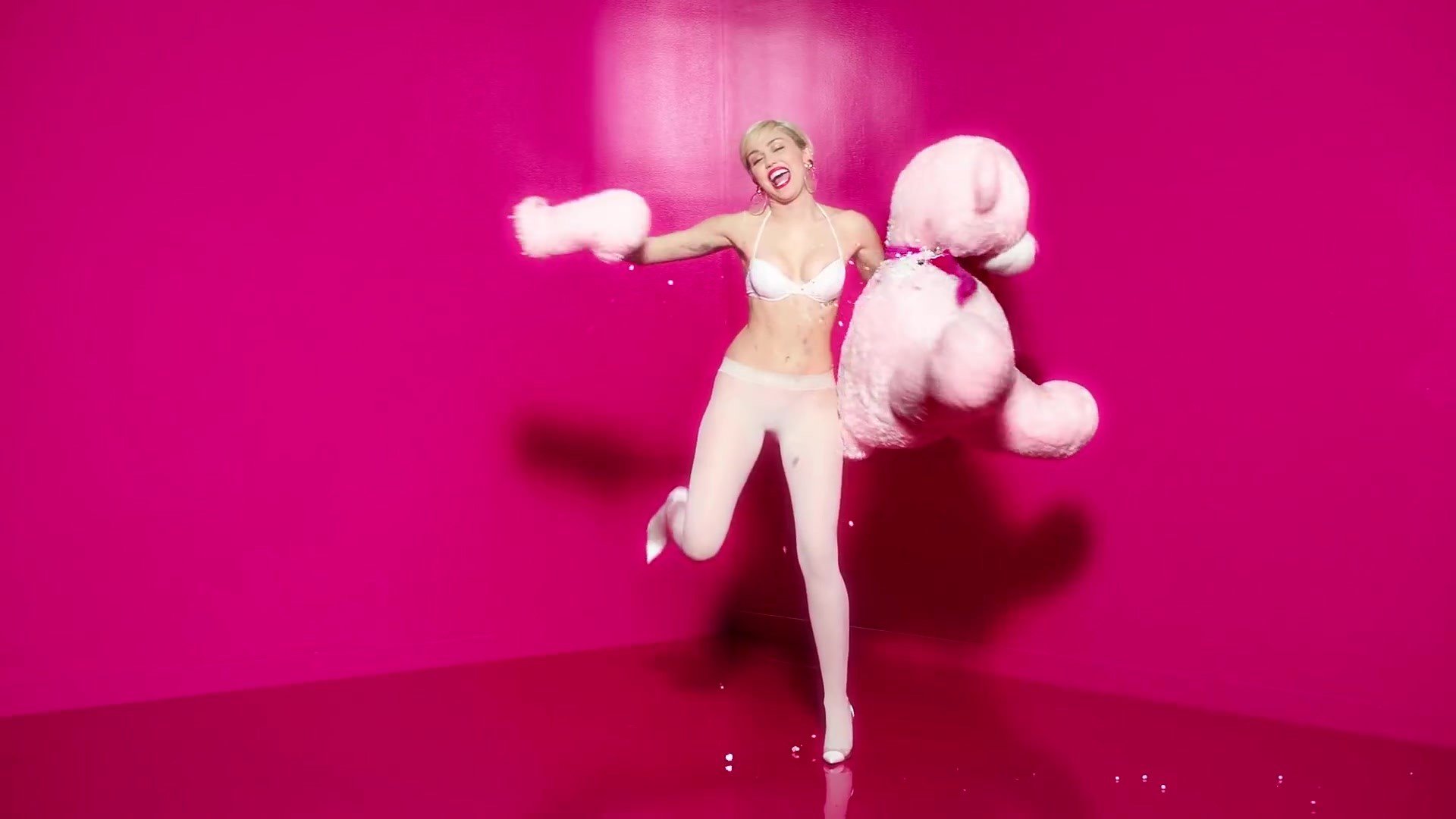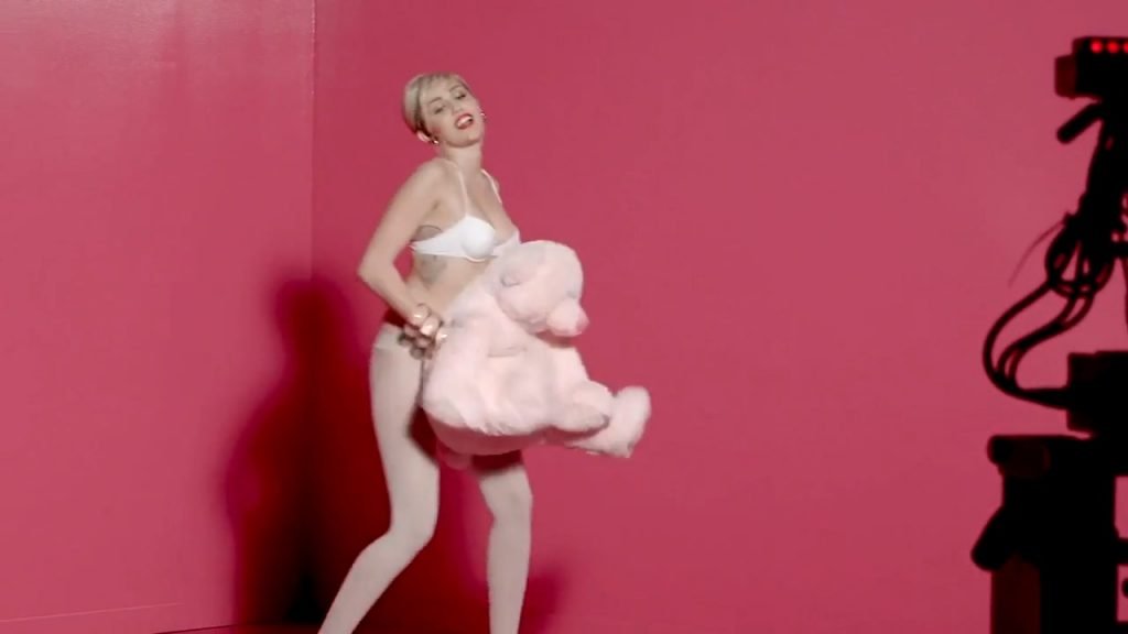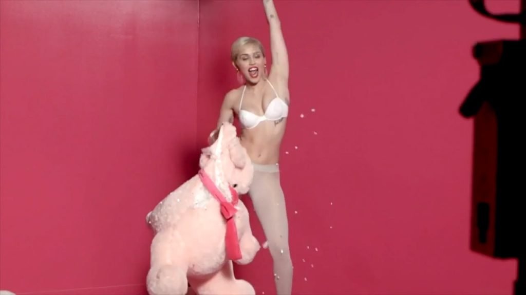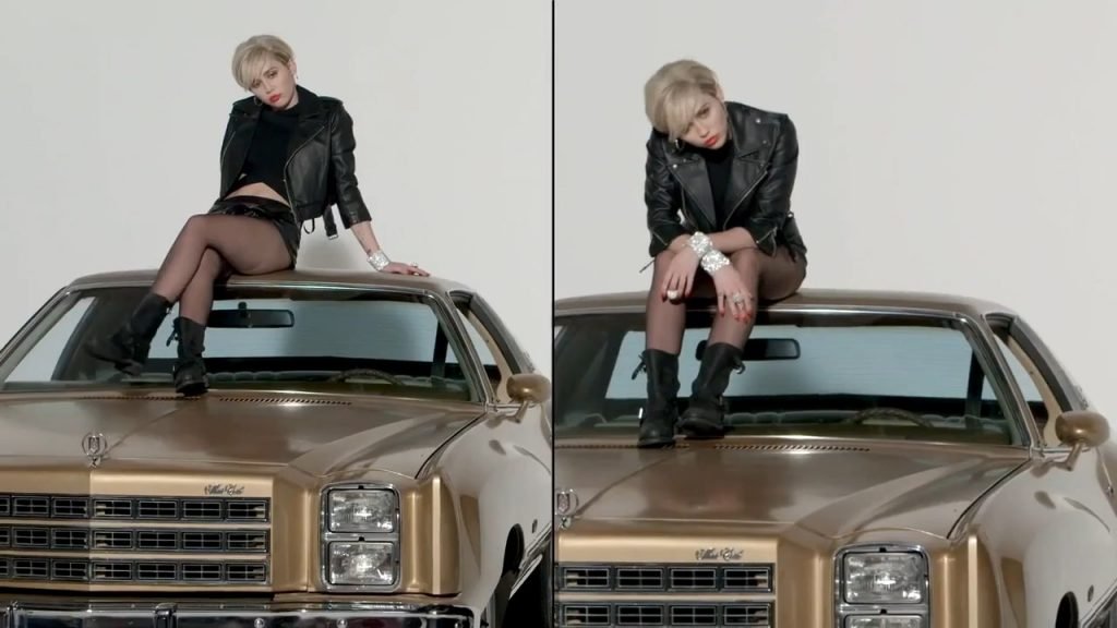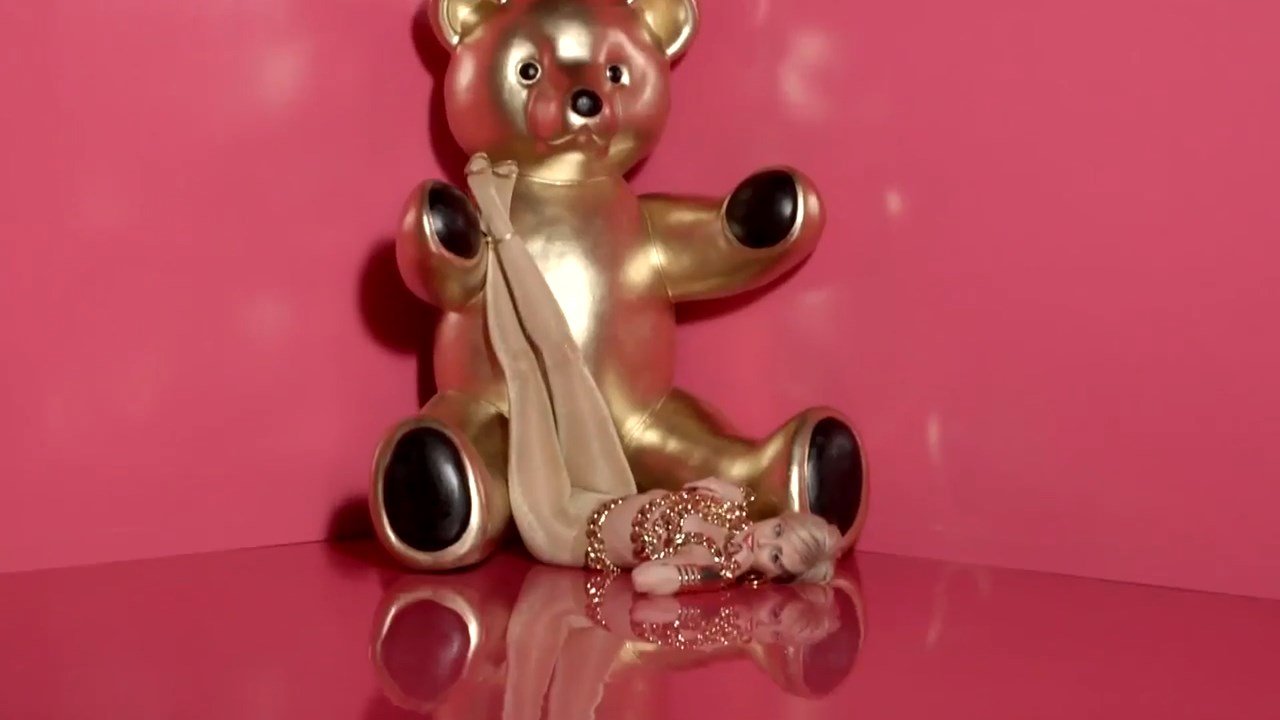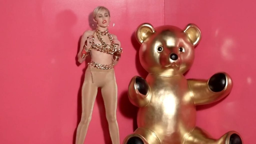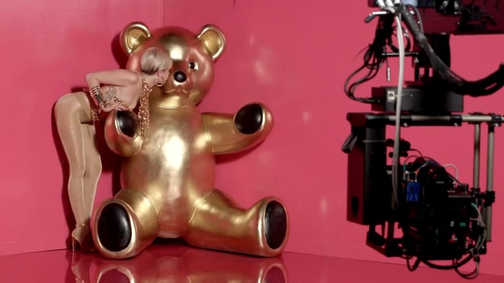A cantora pop americana Miley Cyrus confirma a imagem da “garota escândalo” neste vídeo promocional de Terry Richardson “Rock Your Legs” para Golden Lady (2014).
