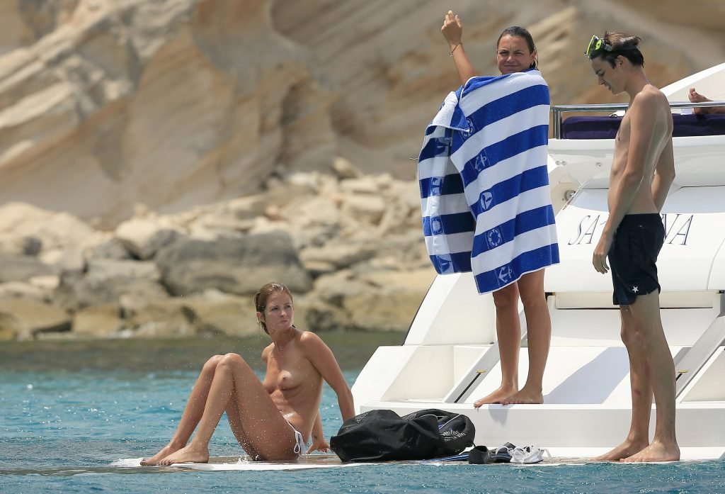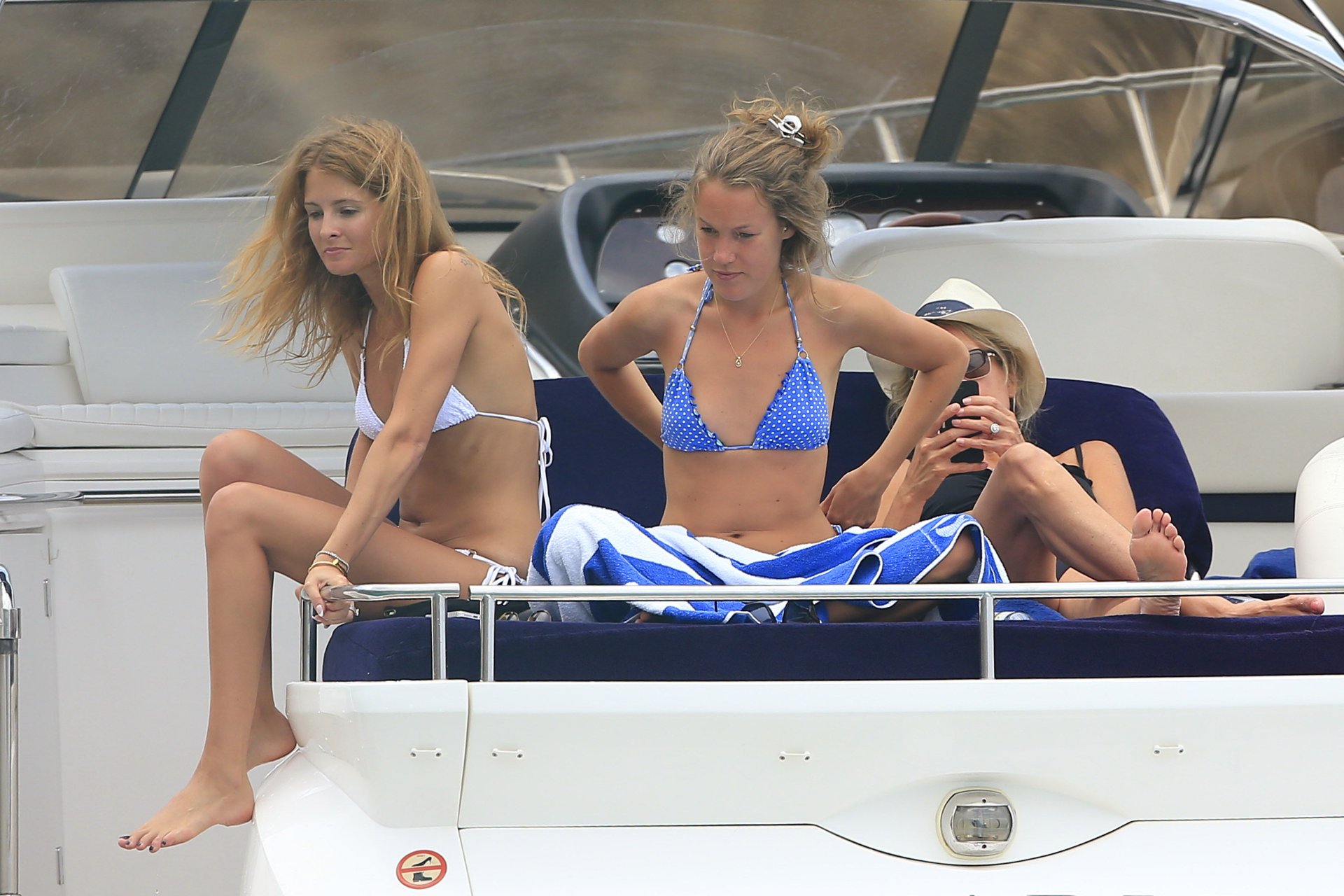 Antes da festa da estrela, Millie Mackintosh aproveitou o descanso, passando o dia todo no iate cercada por amigos.