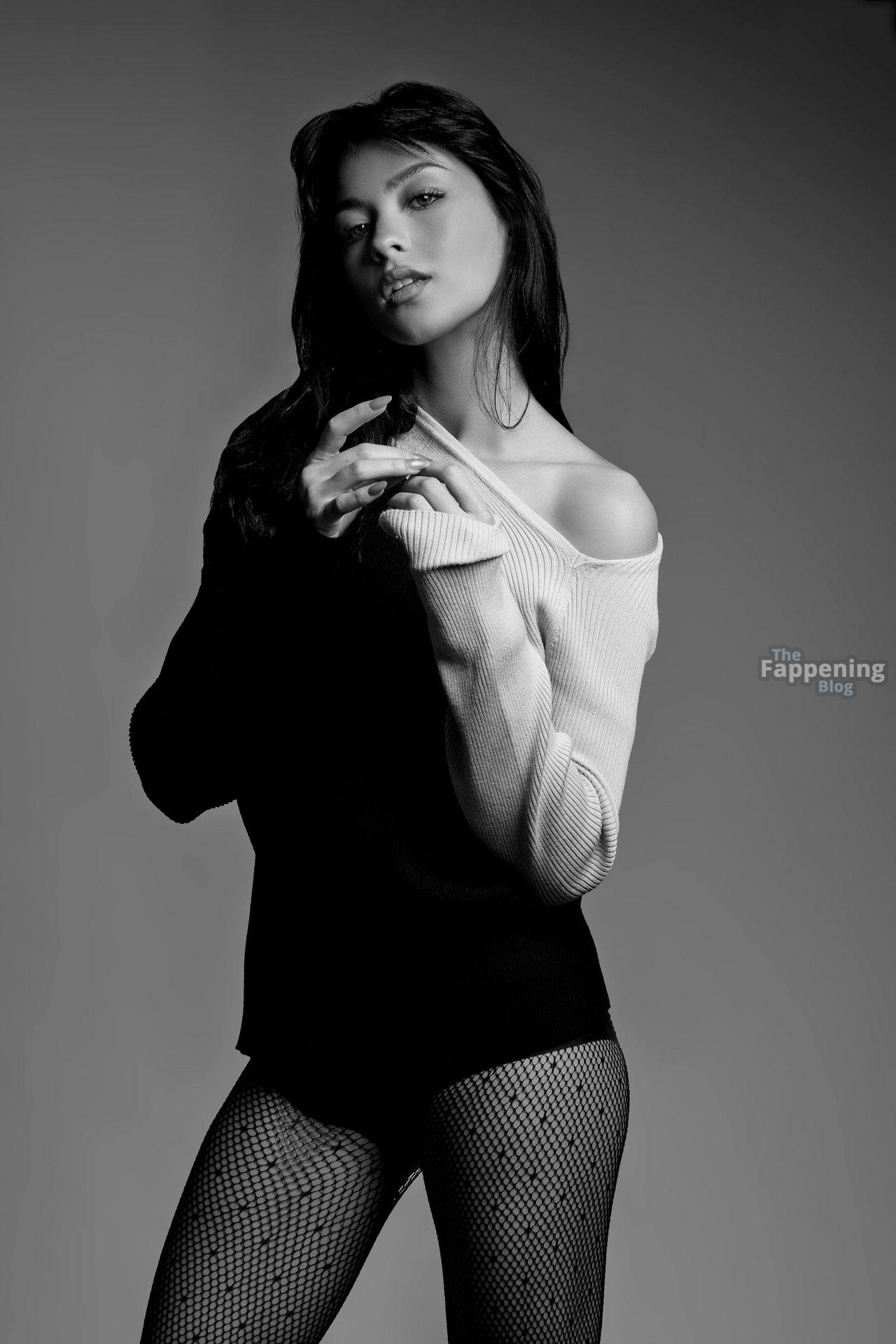 A estrela americana do TikTok Mishka Silva provoca usando suéteres, blazers e meias arrastão para a edição de setembro de 2025 da revista Chicle. Ela exibe suas pernas quentes e seu rosto bonito.