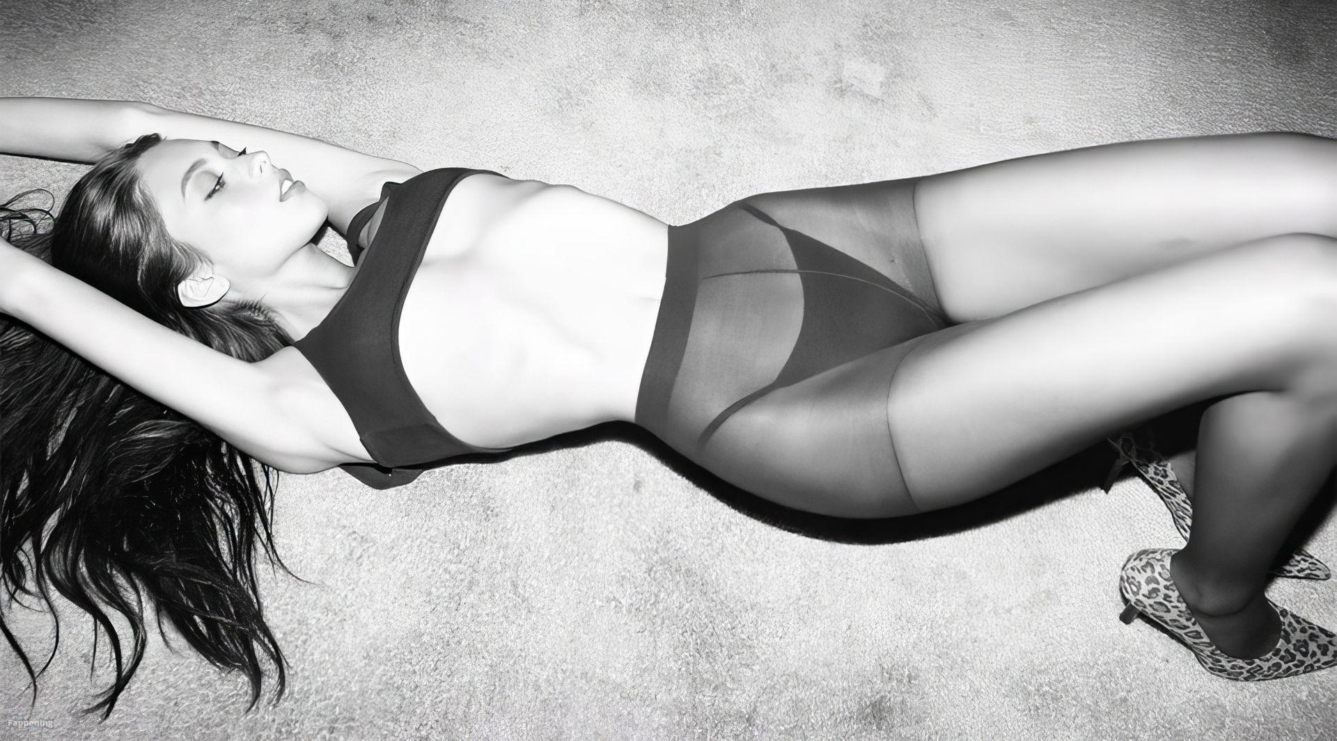 A estrela americana do TikTok Mishka Silva arrasa com uma tanga e top cropped em um ensaio em preto e branco – abdômen à mostra, pernas esbeltas, underboob e muito charme.