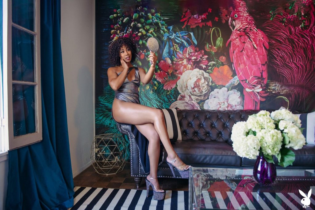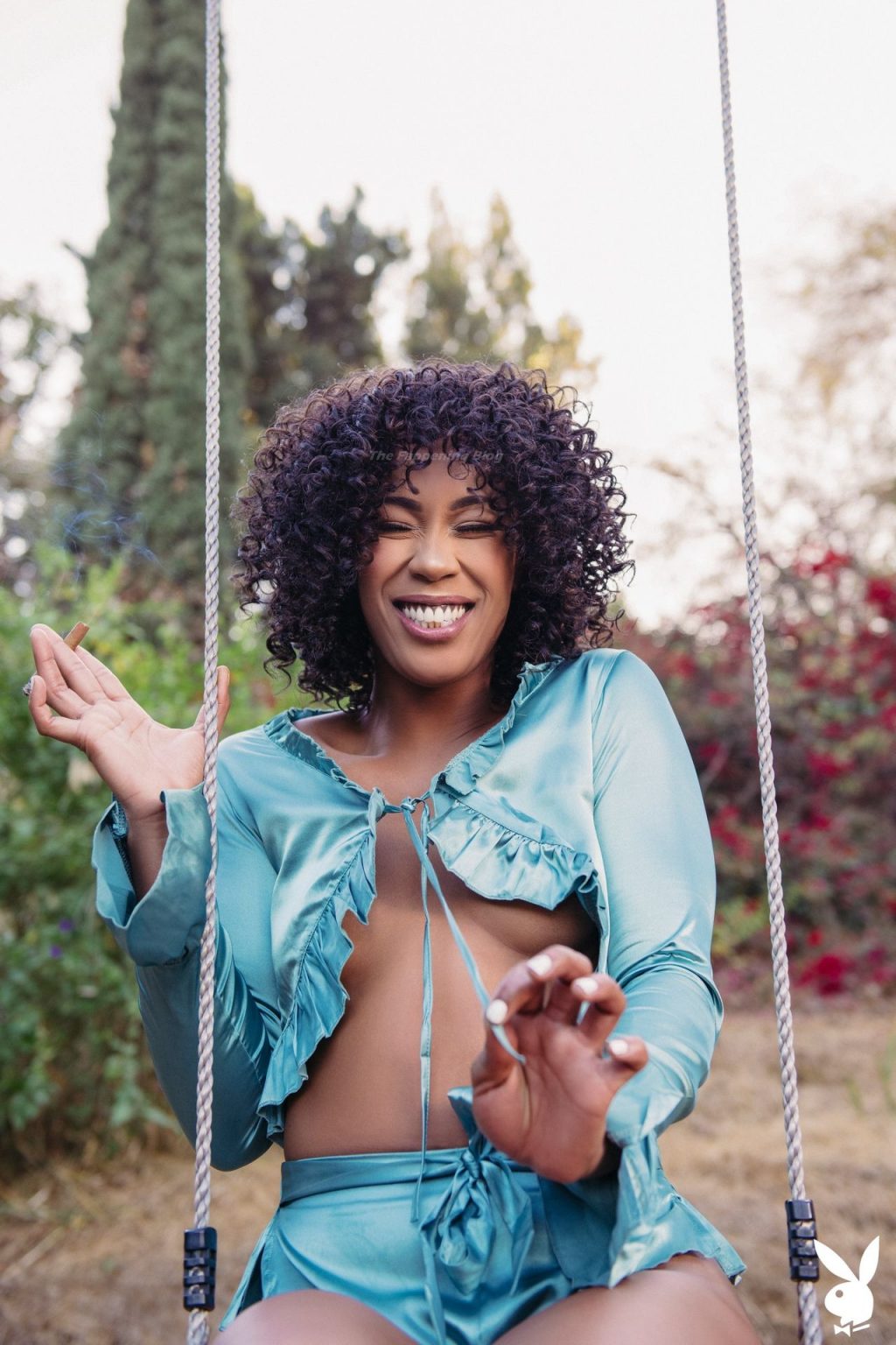 Black hottie Misty Stone exibe seu corpo natural para a Playboy Plus (2021). Ela mostrou suas habilidades sexuais nas cenas pornográficas muitas vezes, mas aqui ela parece linda, posando nua com flores e um baseado.