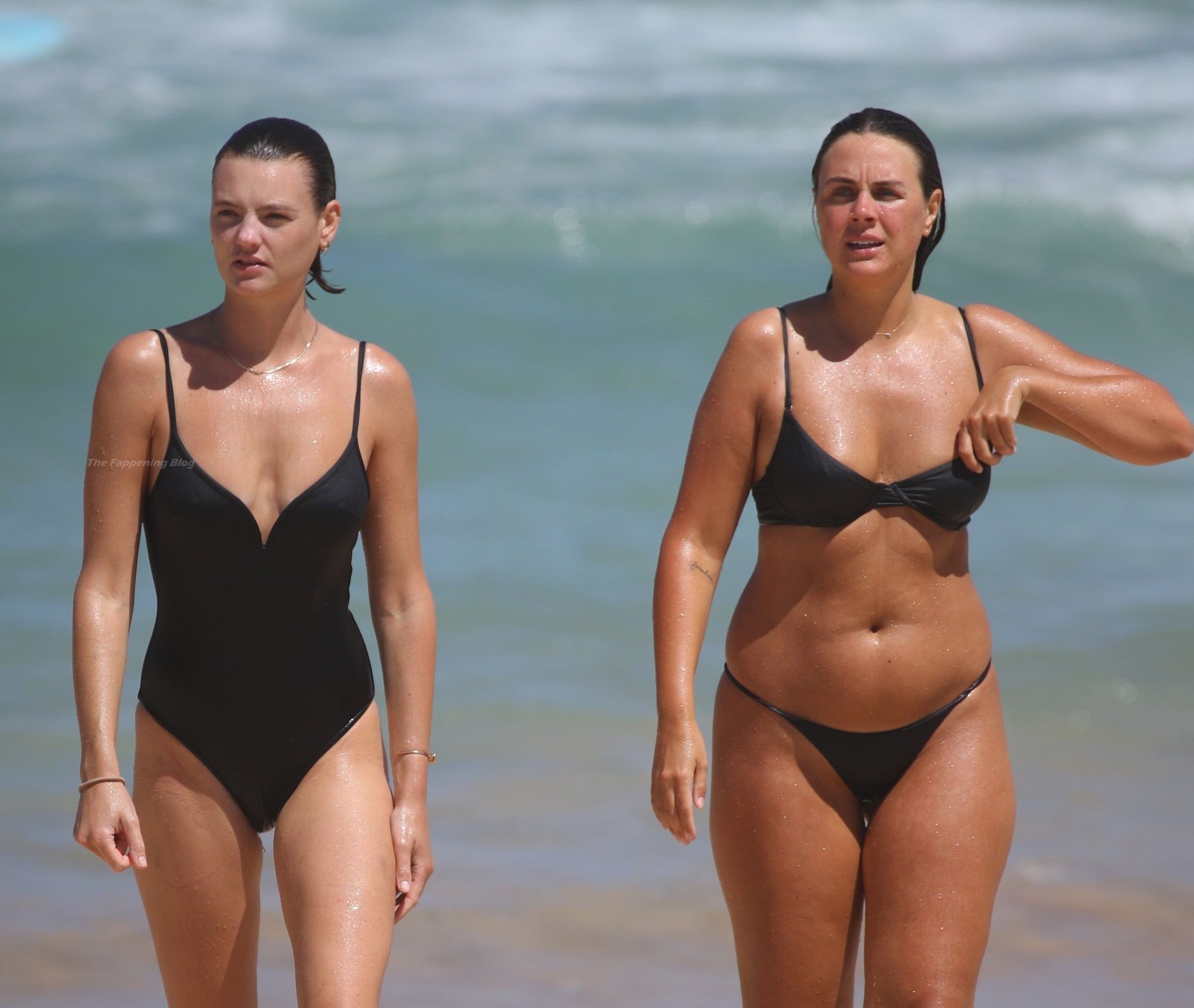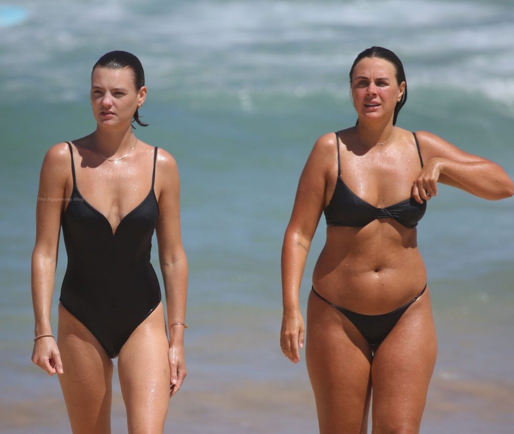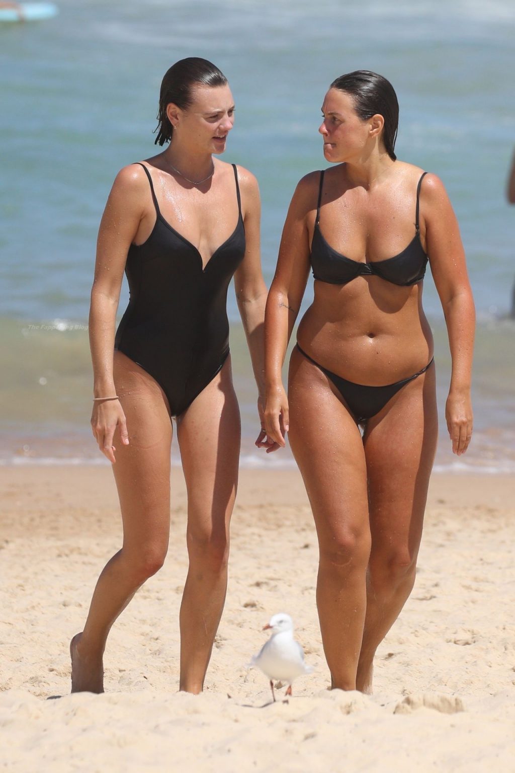 A modelo australiana Montana Cox é fotografada ainda usando o que parece ser uma aliança de casamento enquanto aproveita um dia na praia em Sydney, 22/02/2021.