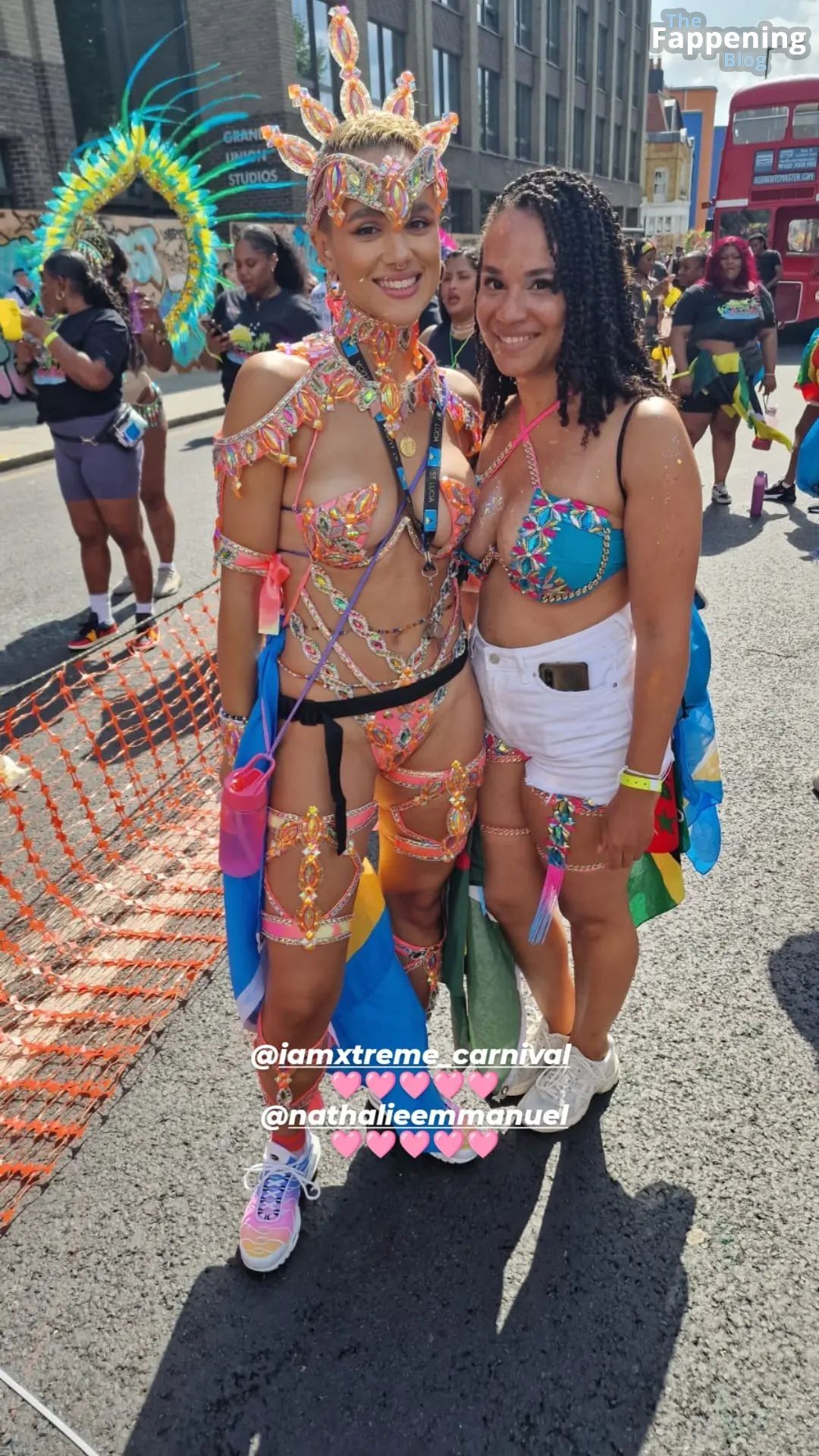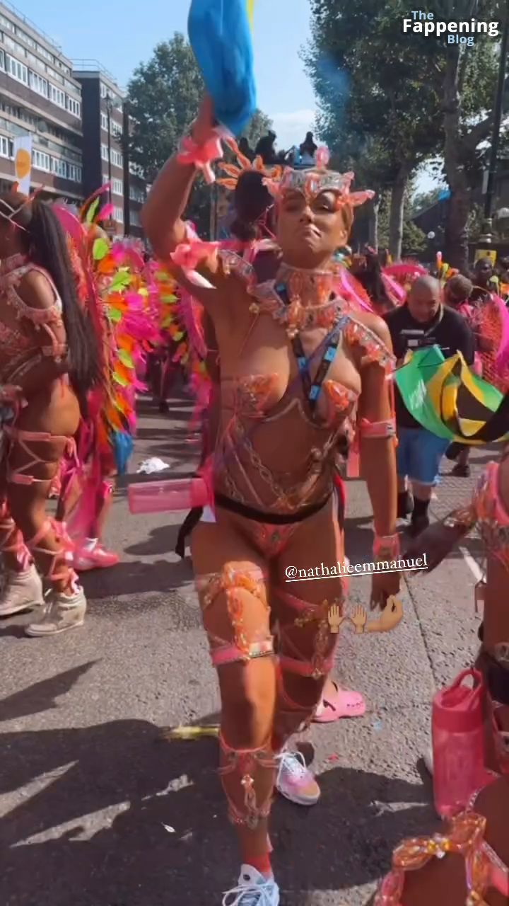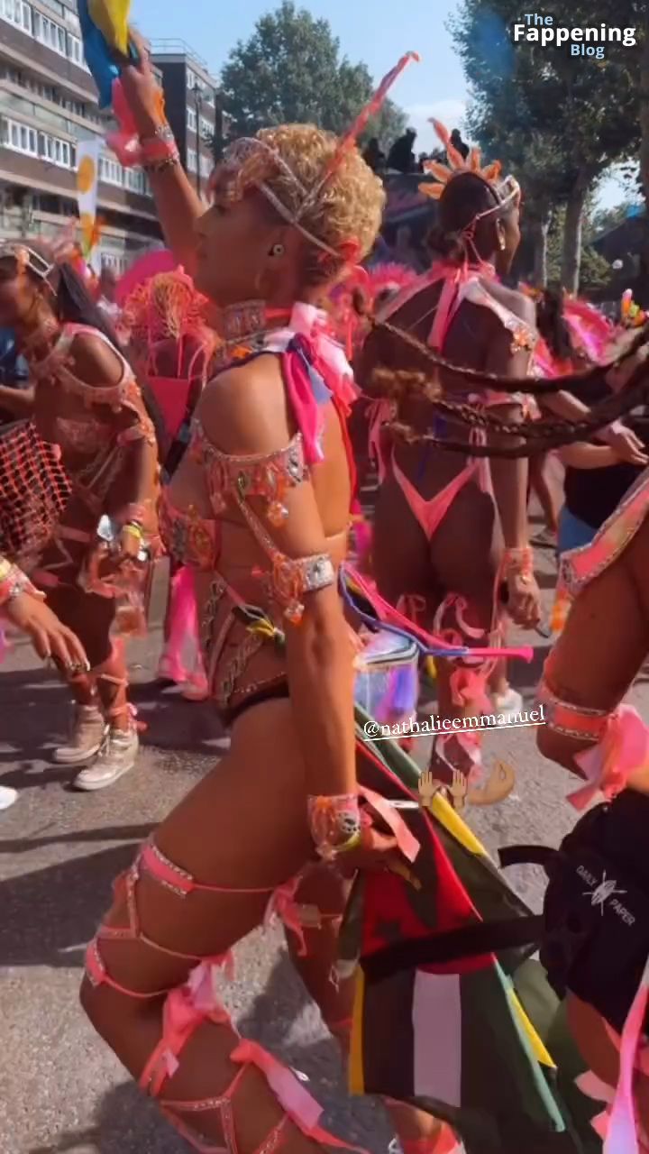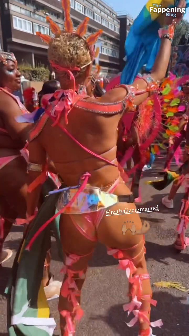 Quando se trata de chamar atenção no carnaval, Nathalie Emmanuel é a rainha do jogo. A estrela de “Game of Thrones” apareceu para o feriado em Londres praticamente nua, deixando até as modelos adultas mais ousadas morrendo de inveja.