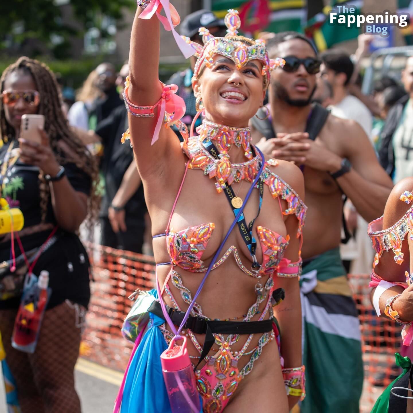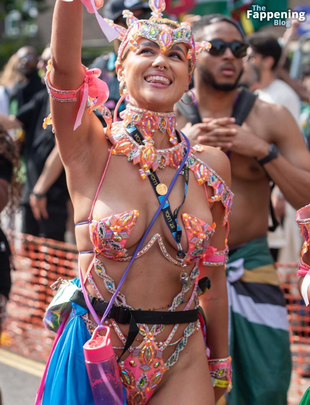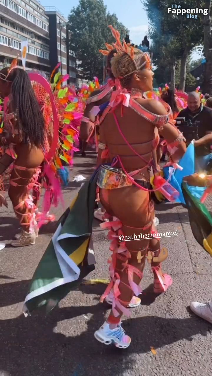 Quando se trata de chamar atenção no carnaval, Nathalie Emmanuel é a rainha do jogo. A estrela de “Game of Thrones” apareceu para o feriado em Londres praticamente nua, deixando até as modelos adultas mais ousadas morrendo de inveja.