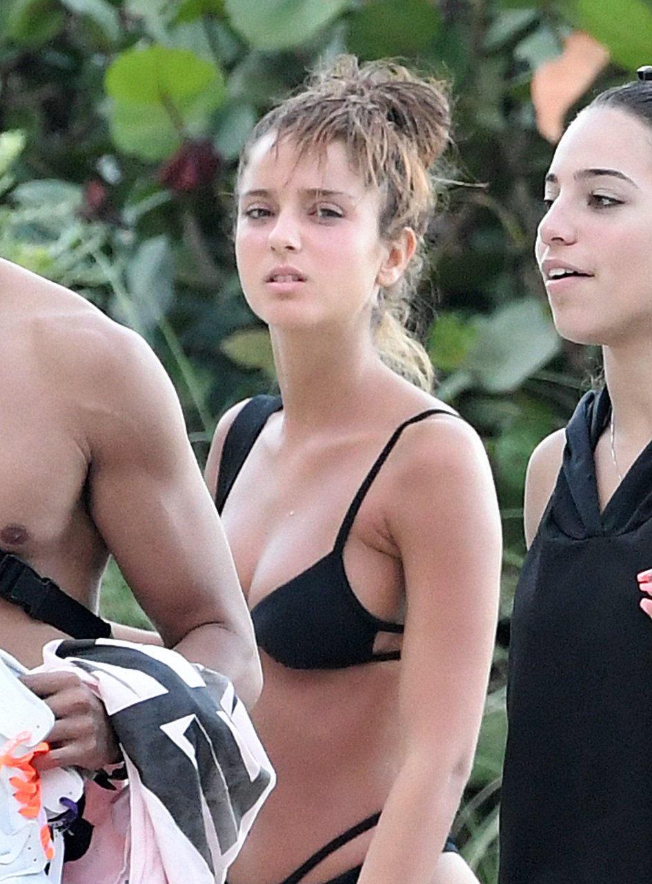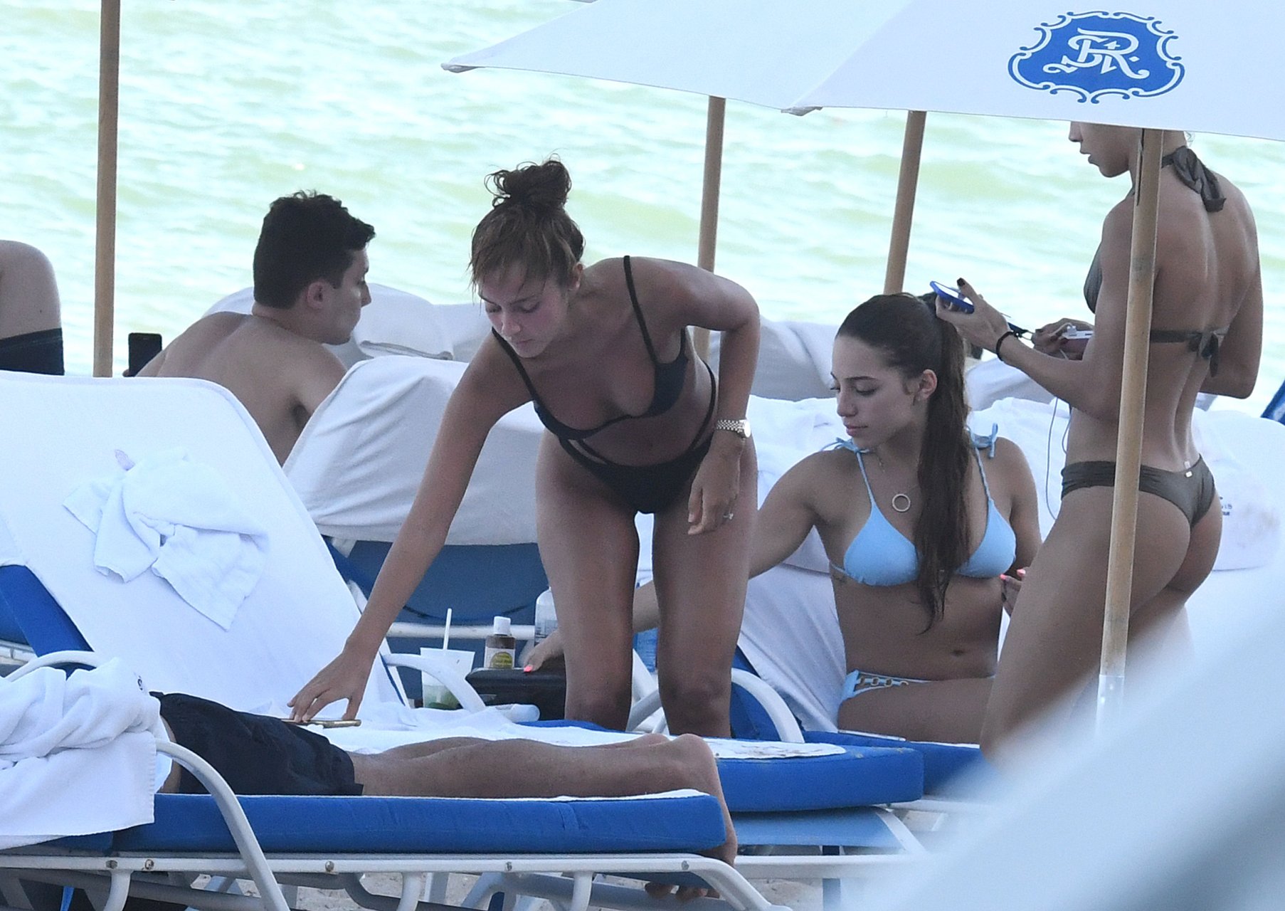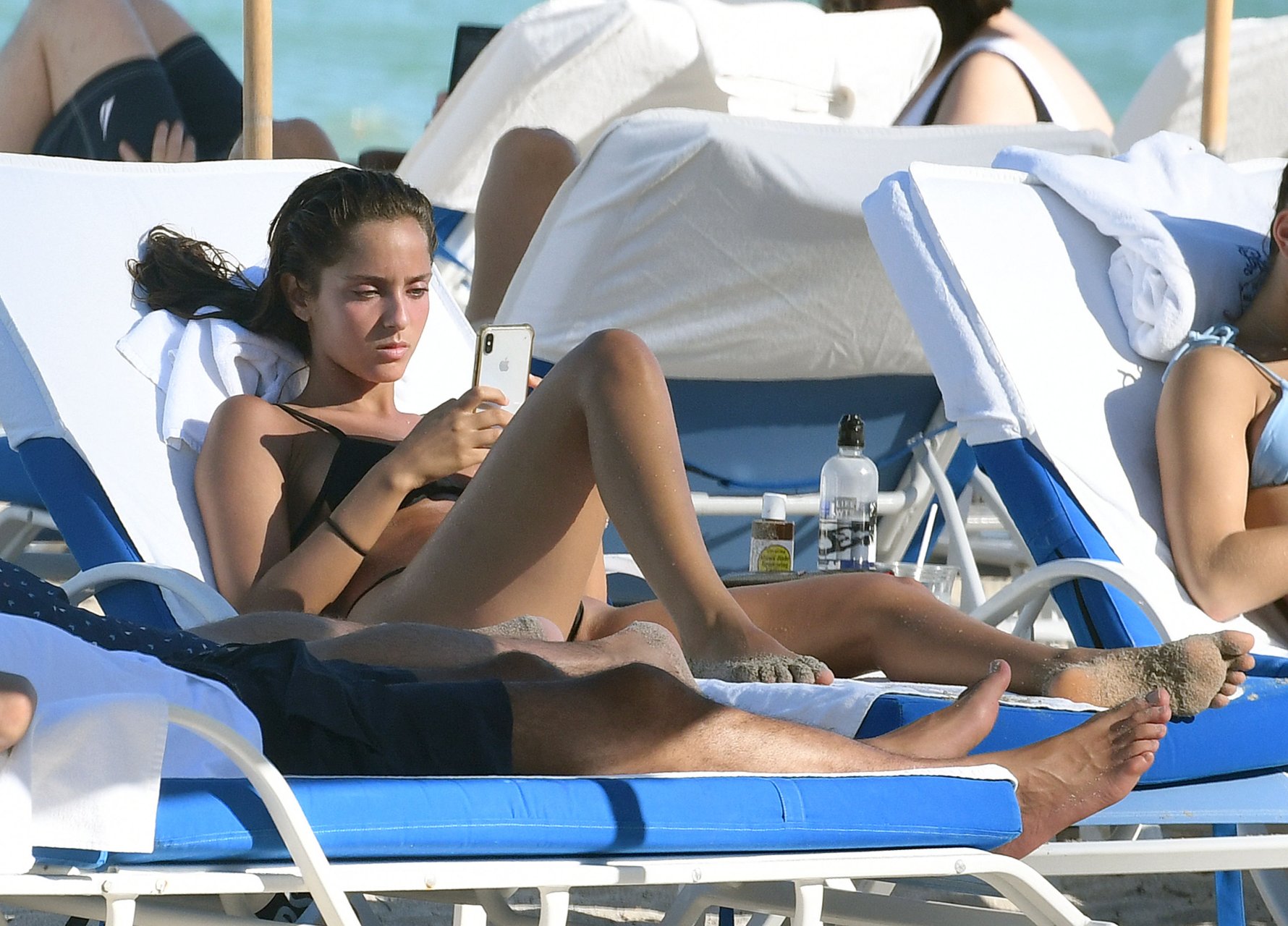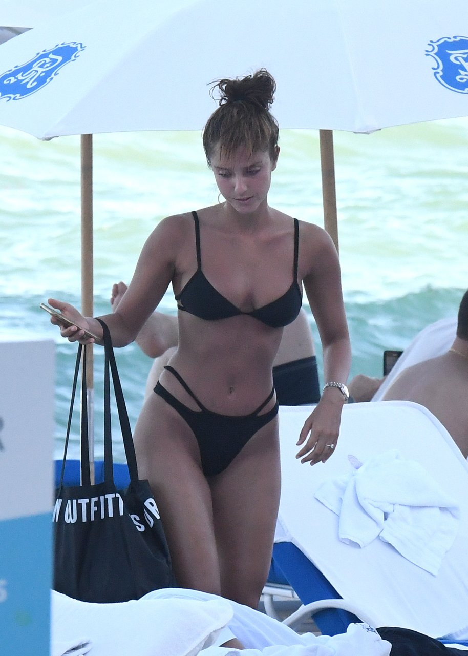 Modelo israelense, designer e estrela das redes sociais, Neta Alchimister (23) exibe seu corpo de praia usando um biquíni preto em Miami Beach, 22/10/2018.