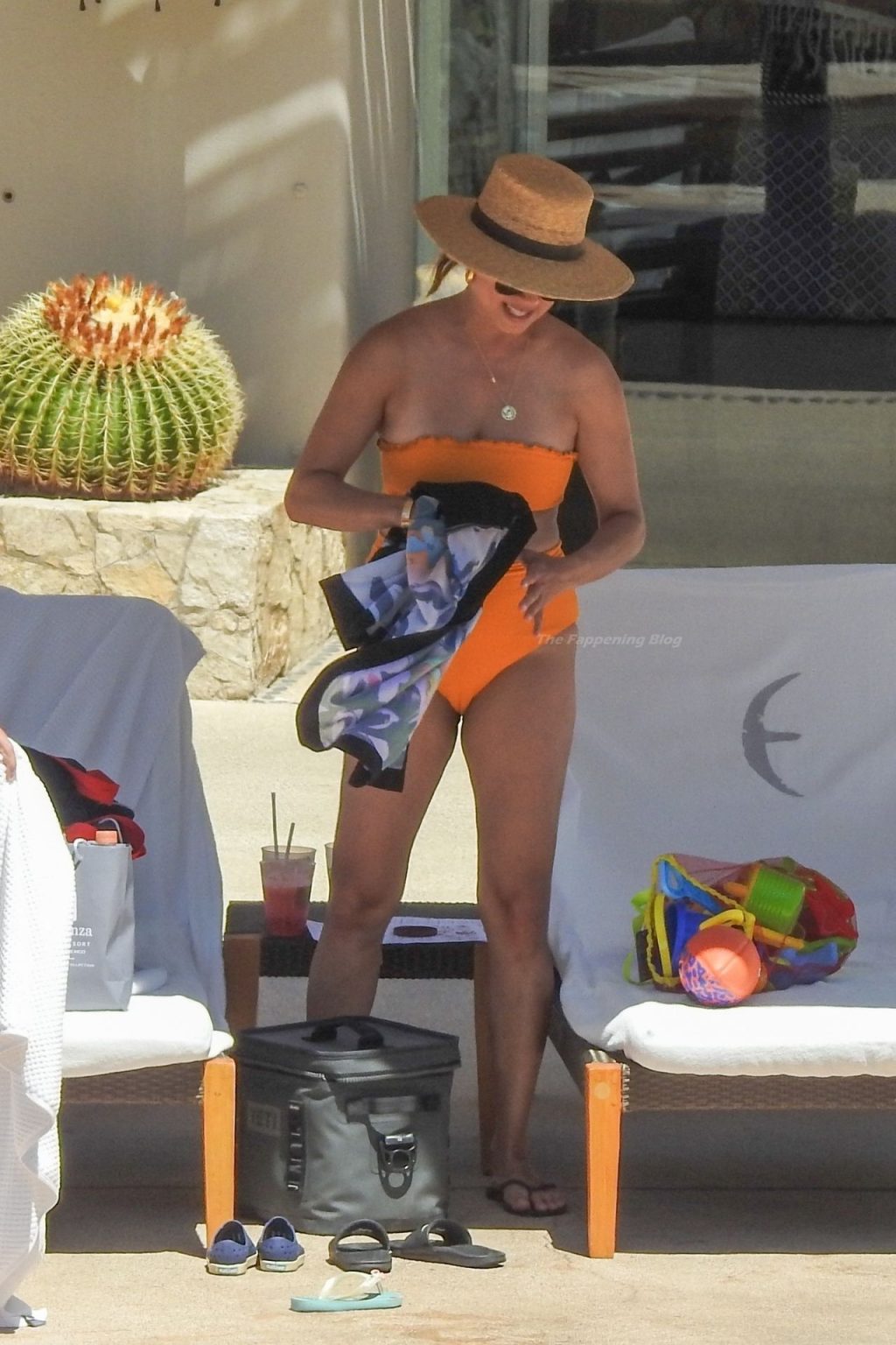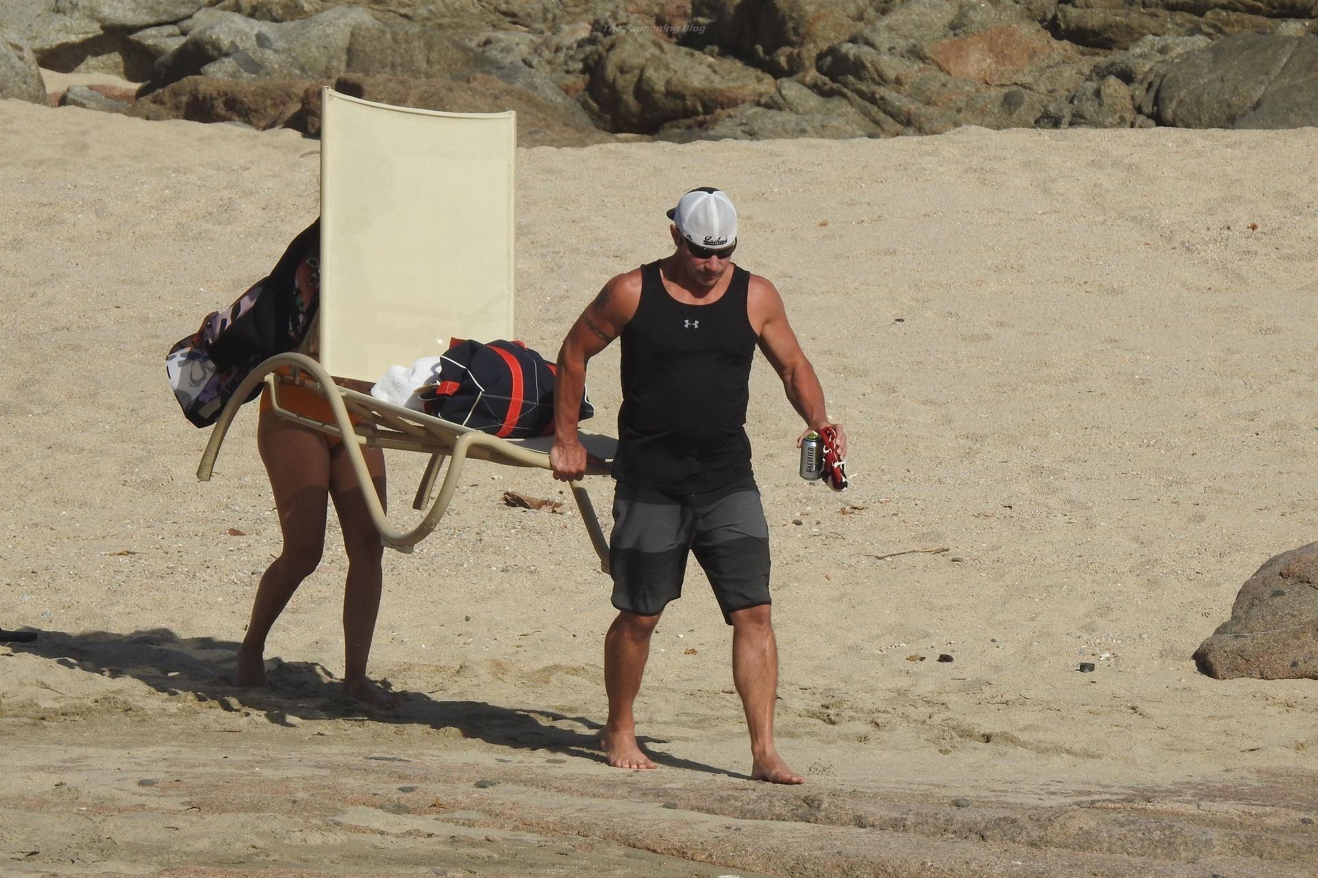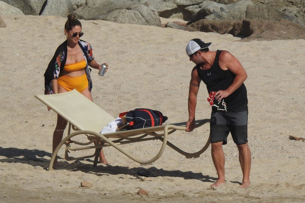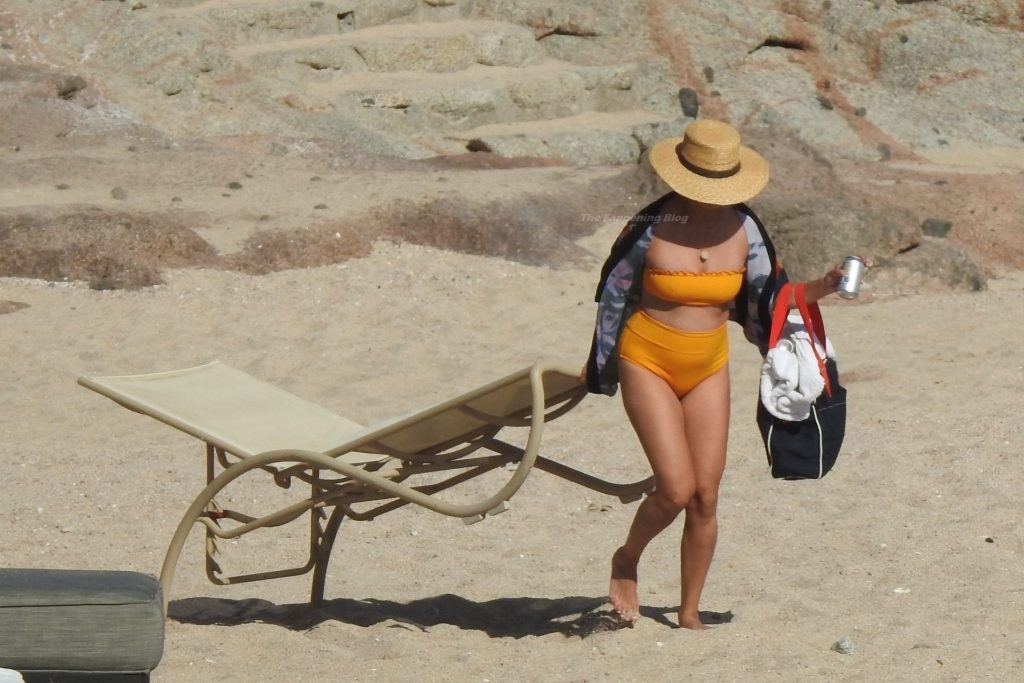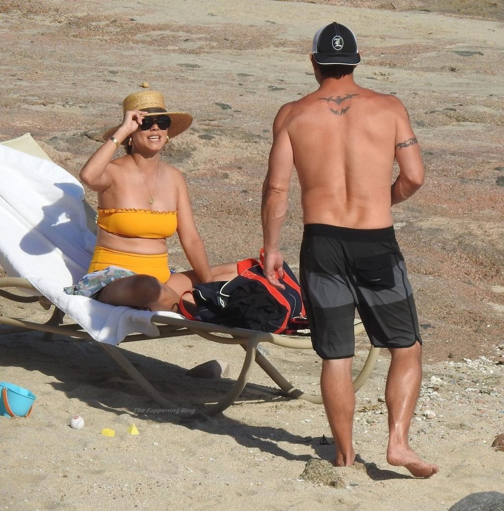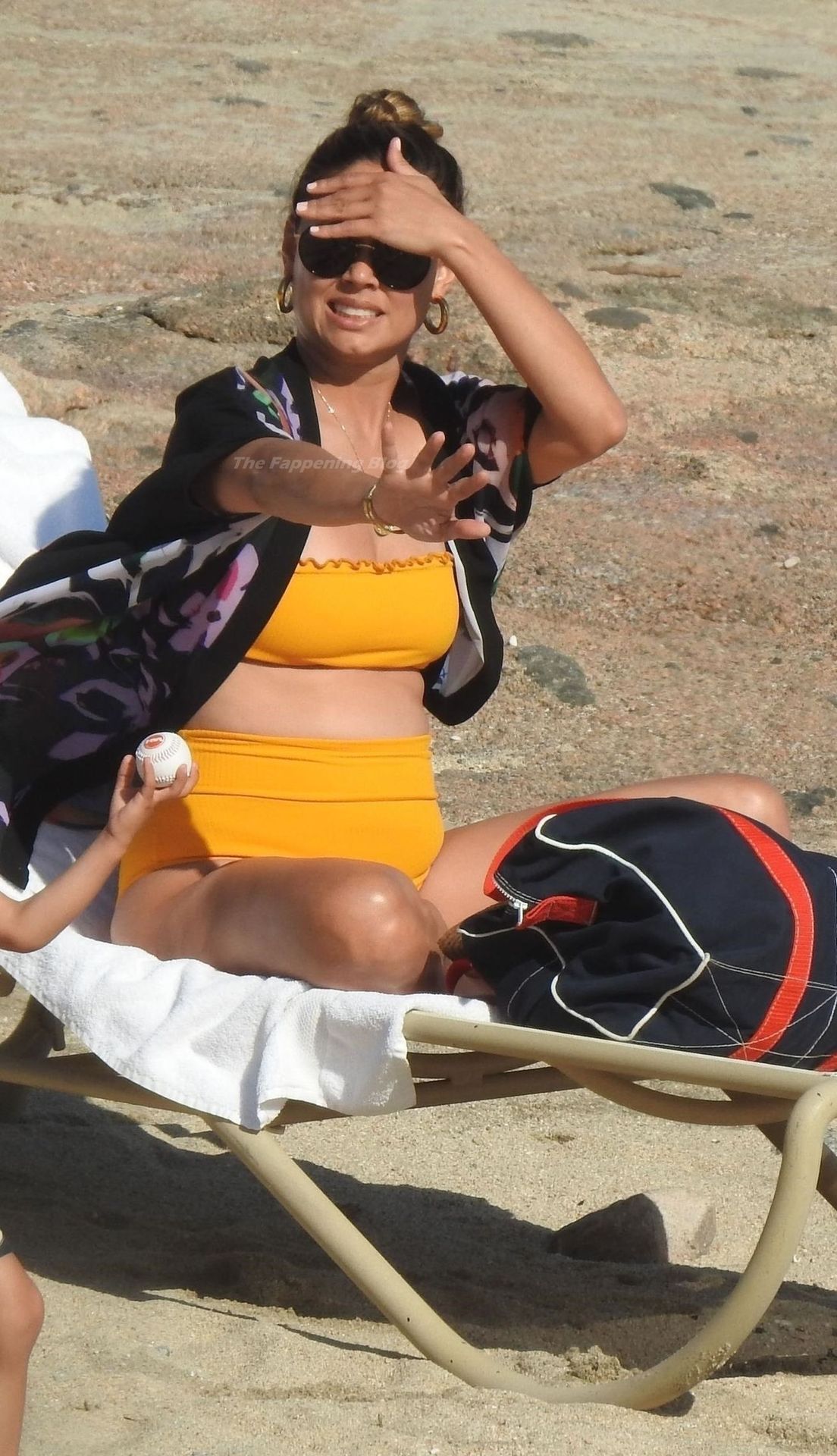 Vanessa usava um biquíni amarelo vibrante de cintura alta com uma saída de praia e chapéu de palha para se proteger do sol. O casal, que celebrará seu décimo aniversário de casamento em julho, parecia estar aproveitando um dia divertido juntos sob o sol.