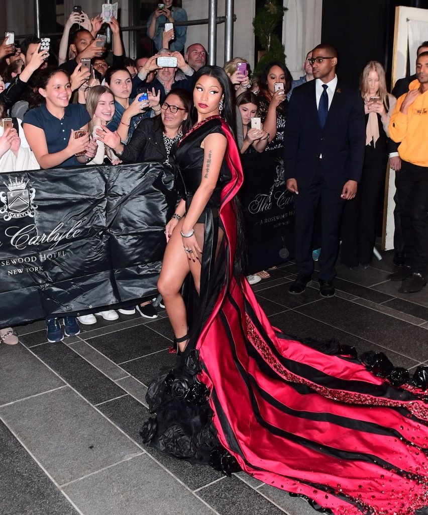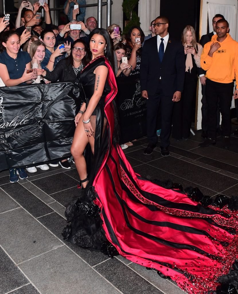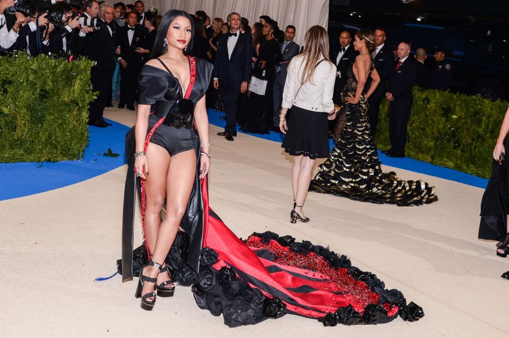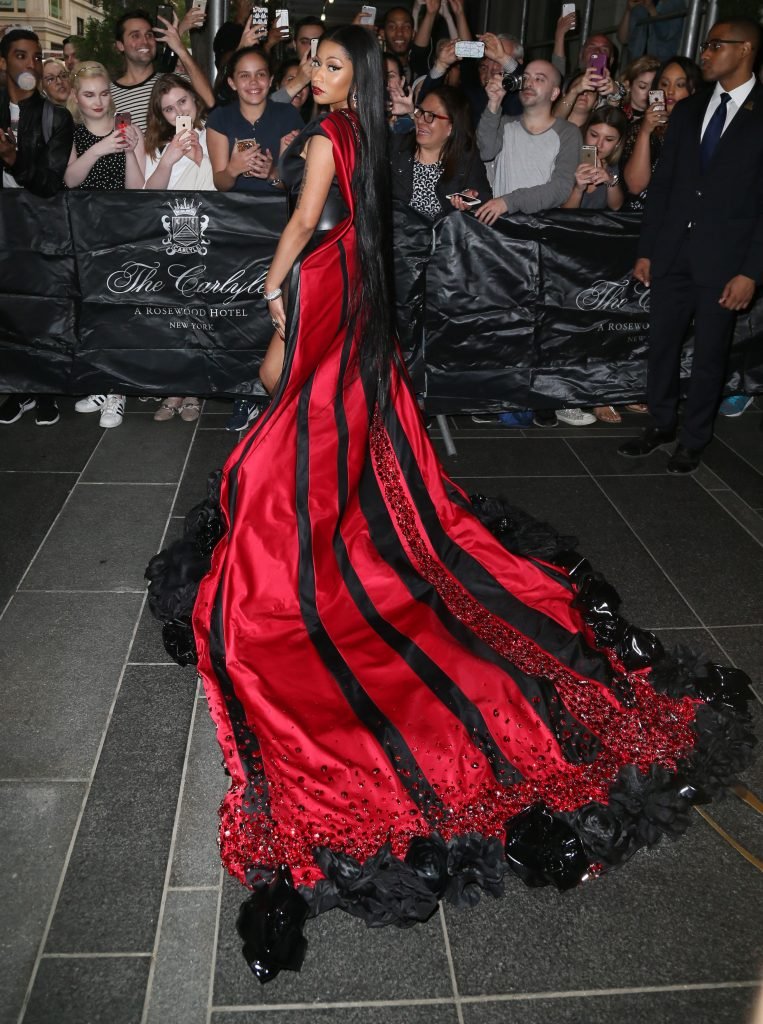 Nicki Minaj usa vestido da H&M no Met Gala 2017 em NYC, 01/05/2017. Onika Maraj é uma cantora e compositora americana nascida em Trinidad, atriz. Idade – 34 anos (8 de dezembro de 1982).