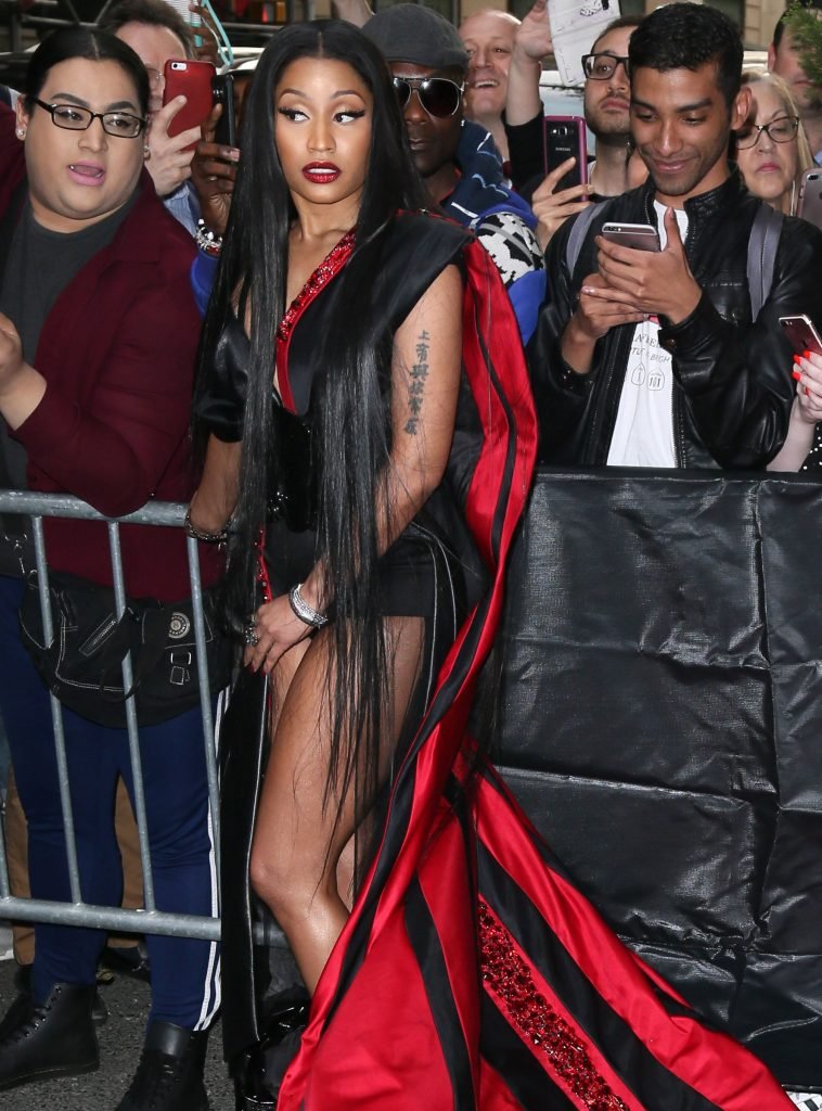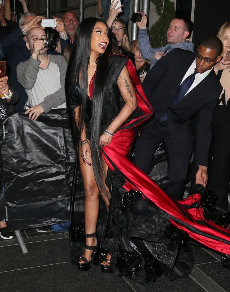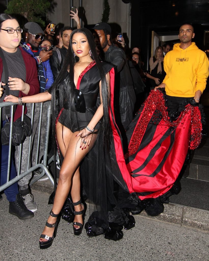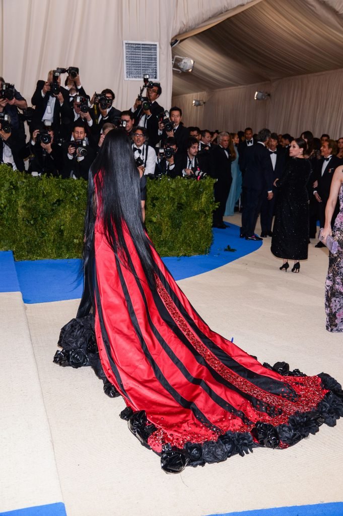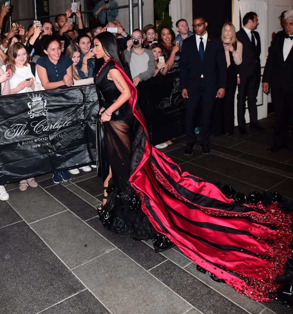 Nicki Minaj usa vestido da H&M no Met Gala 2017 em NYC, 01/05/2017. Onika Maraj é uma cantora e compositora americana nascida em Trinidad, atriz. Idade – 34 anos (8 de dezembro de 1982).