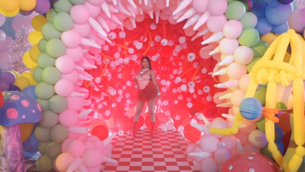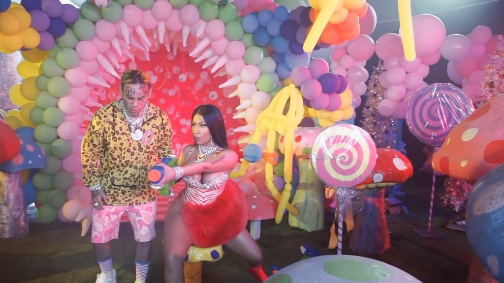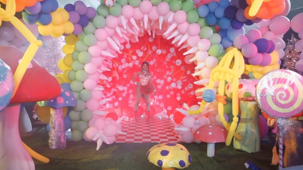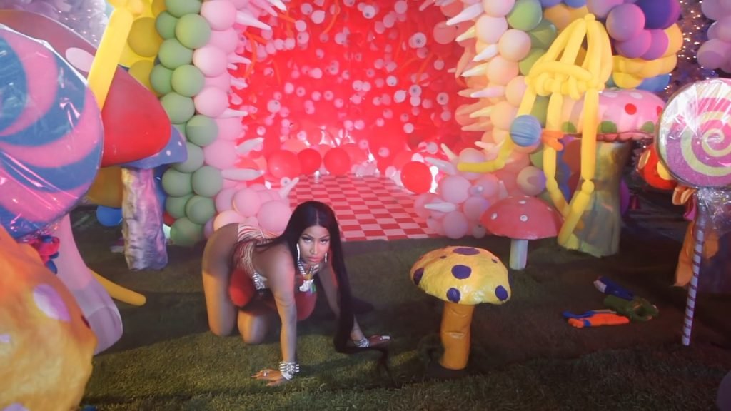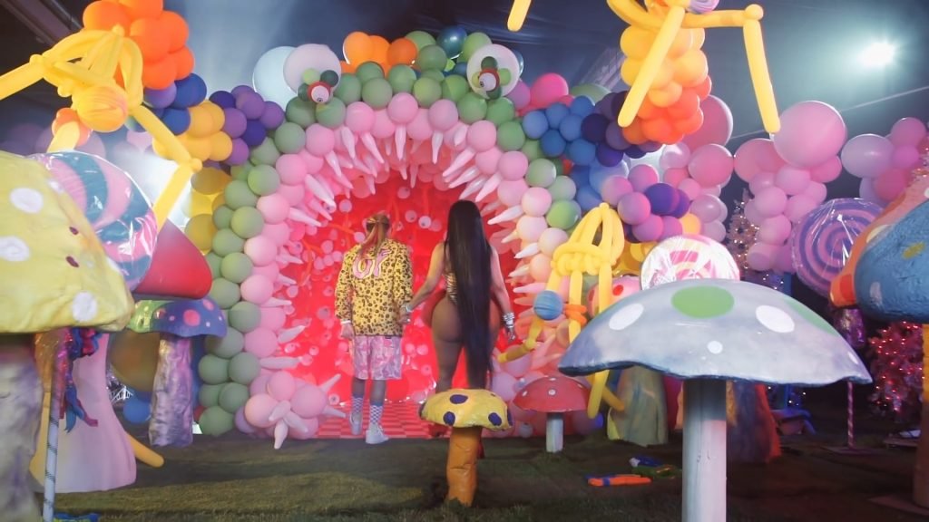 Em três minutos, os rappers comem sorvete, brincam com pistolas de água, dançam ao lado de cogumelos gigantes e exibem várias decorações.
