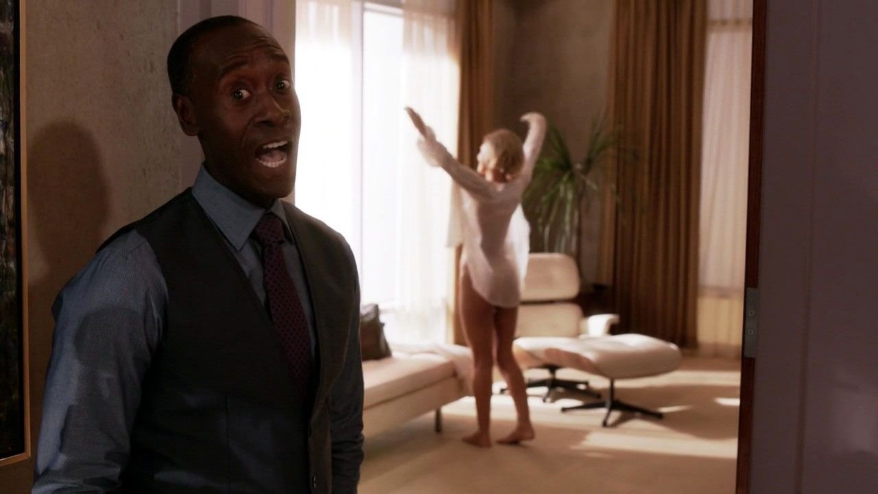 Novas capturas de tela e clipe com Nicky Whelan de House of Lies (2016) s05e01. Vemos um vislumbre do seio esquerdo de Klare (Nicky Whelan) e podemos ver sua calcinha fio dental. Depois Klare mostra seu super decote na cozinha. E então Klare exibe seus seios na cozinha enquanto é apalpada por Marty (Don Cheadle). Nicky Whelan é uma atriz e modelo australiana. Idade: 34 (10 de maio de 1981).