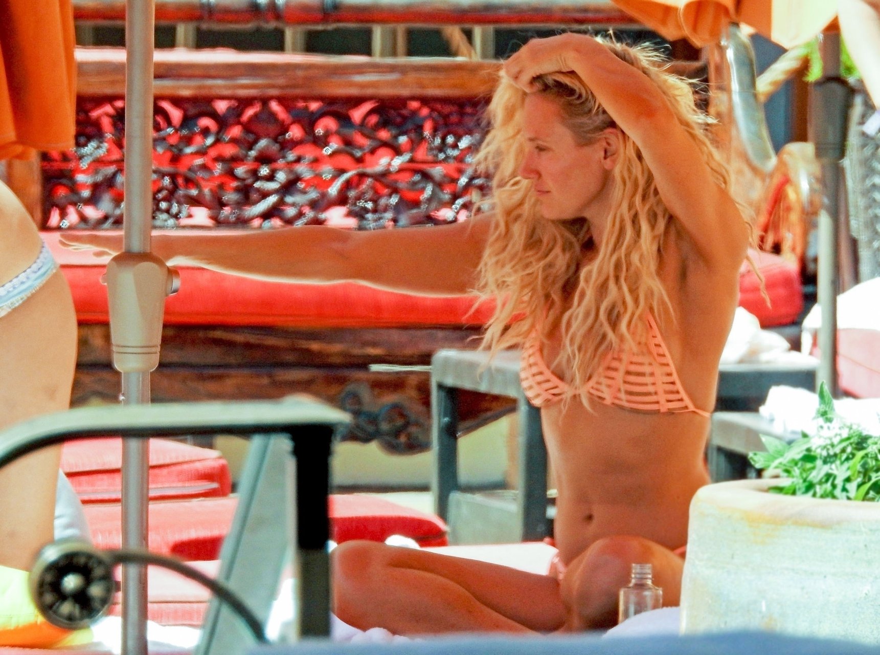 Liz Hurley, ex e lendário conquistador Shane, 48, foi visto passando quase duas horas conversando intimamente com a deslumbrante atriz australiana loira de 37 anos Nicky Whelan durante um encontro secreto e tardio no local Marquee dentro do hotel Cosmopolitan, 07/02/2018.