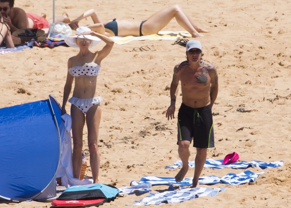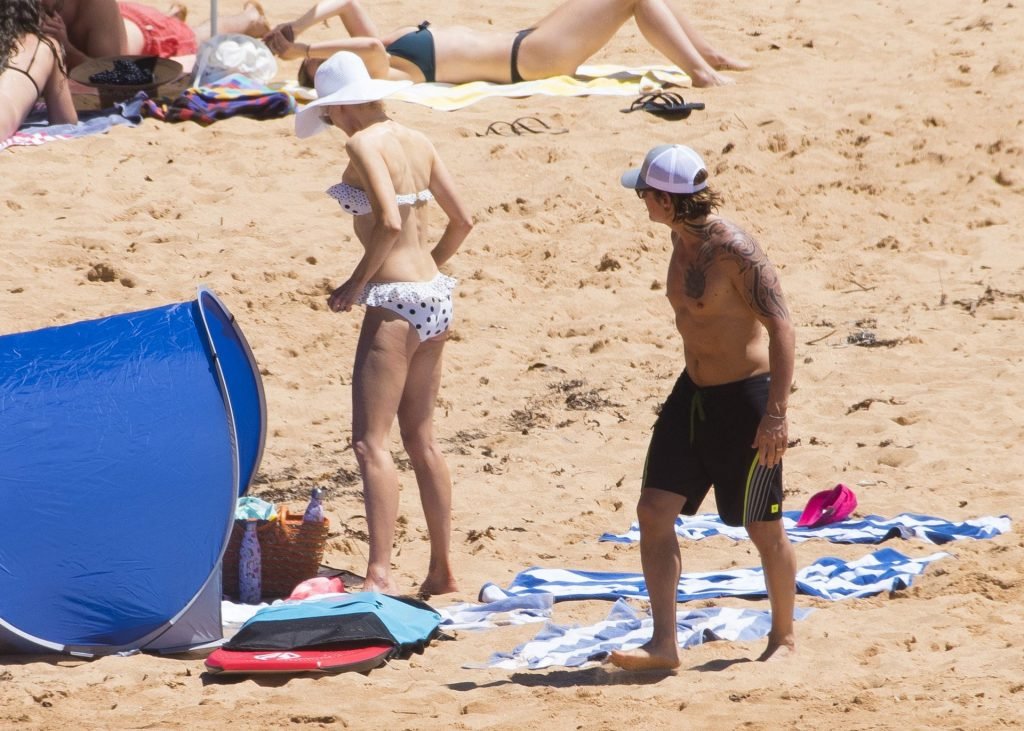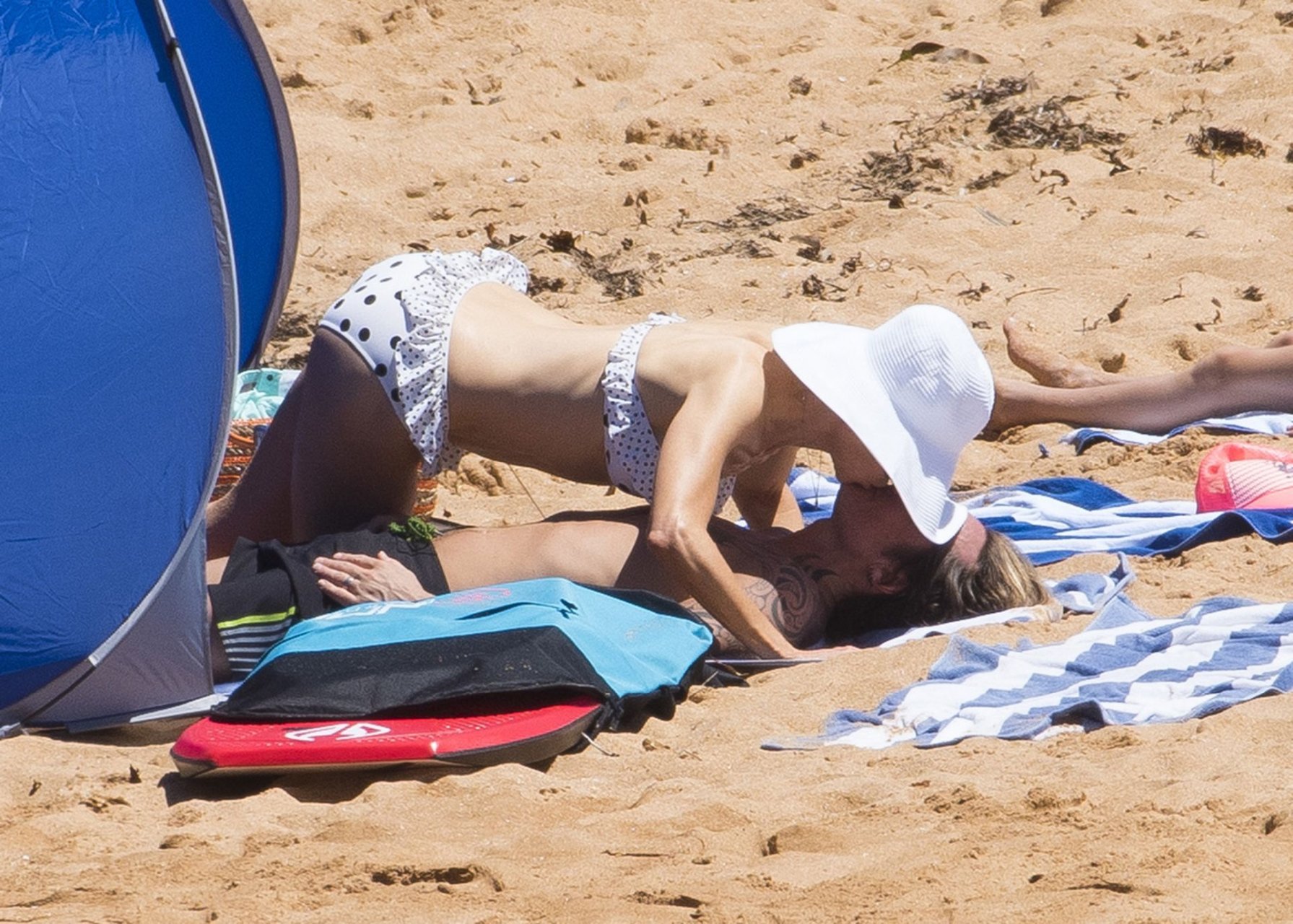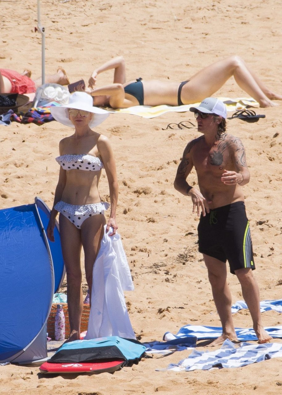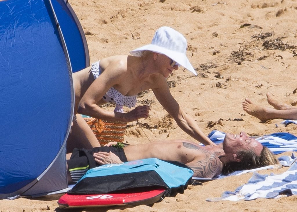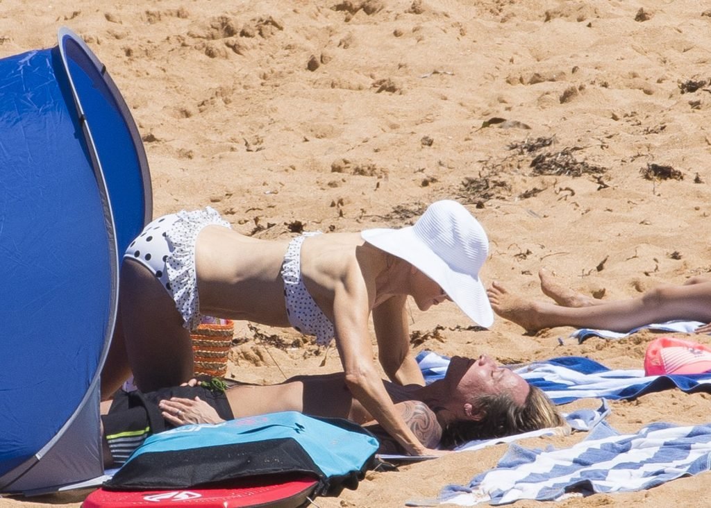 A atriz Nicole Kidman (51) foi fotografada em um momento raramente visto usando um biquíni branco com bolinhas para um dia de véspera de Natal em Palm Beach, Sydney, Austrália, com seu marido Keith Urban, 24/12/2018.
