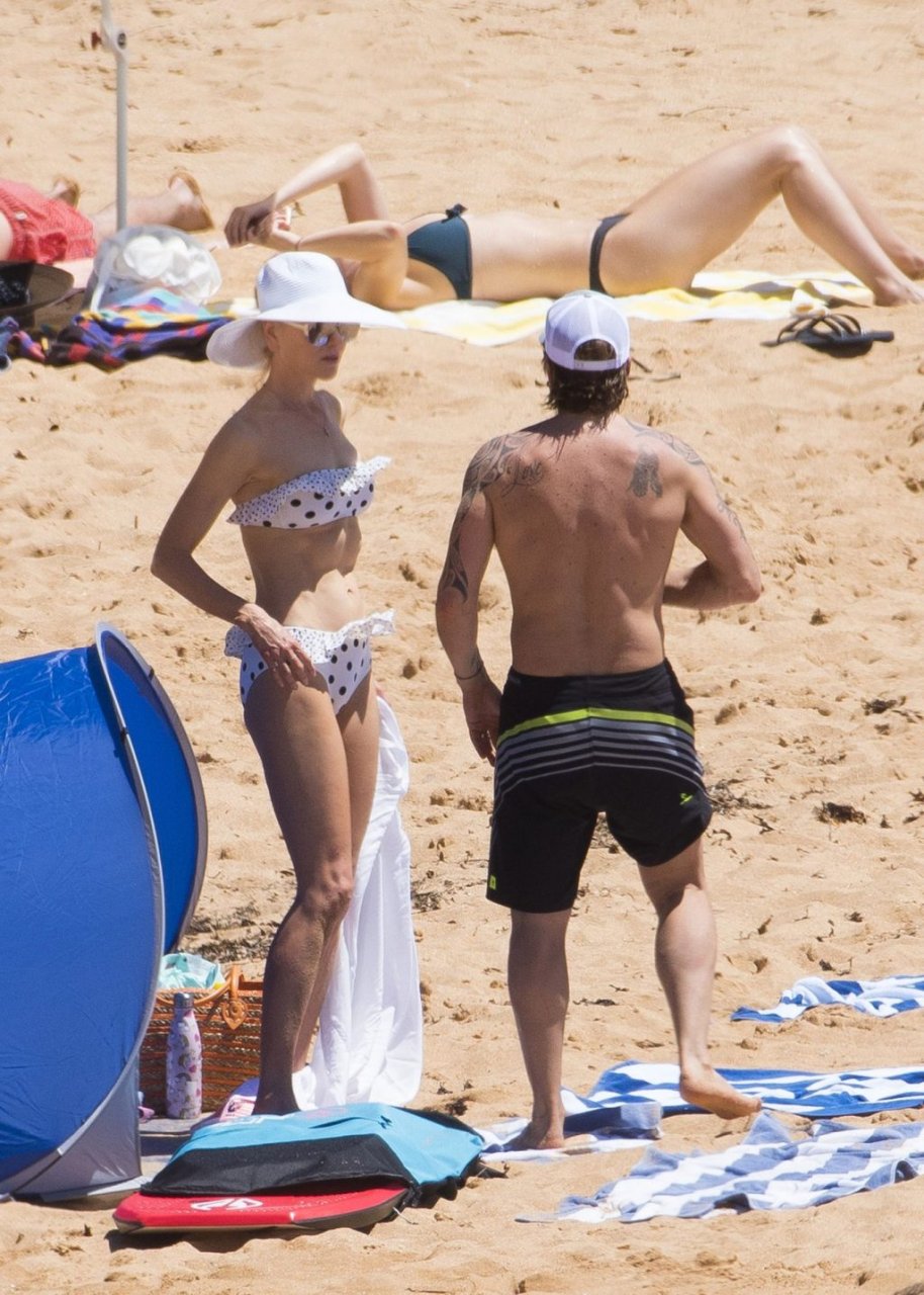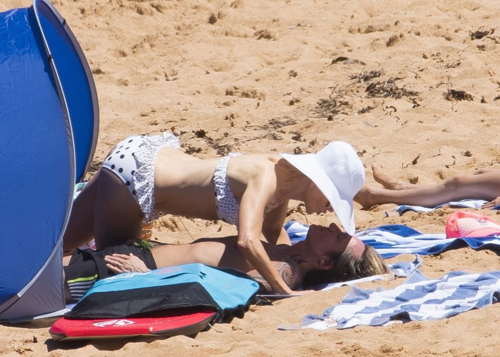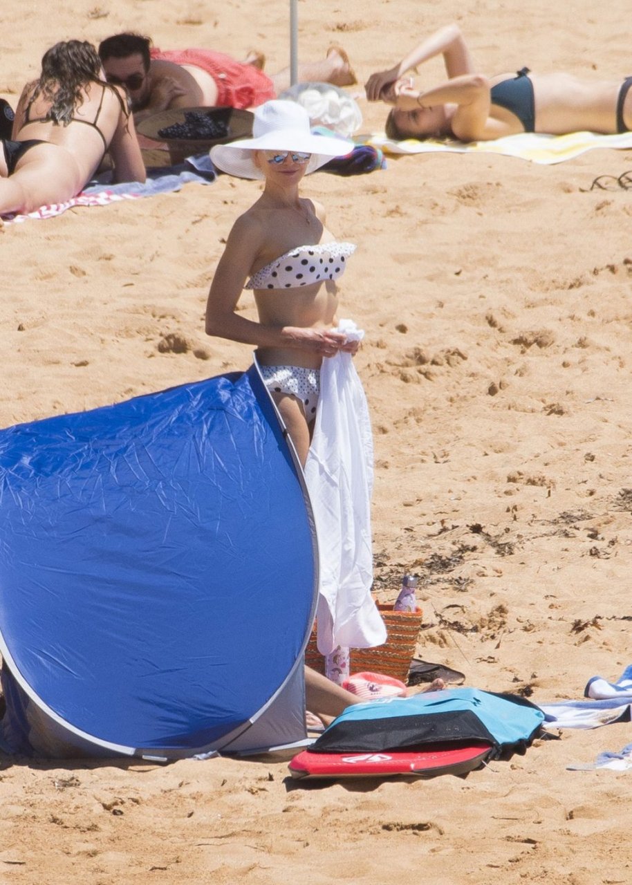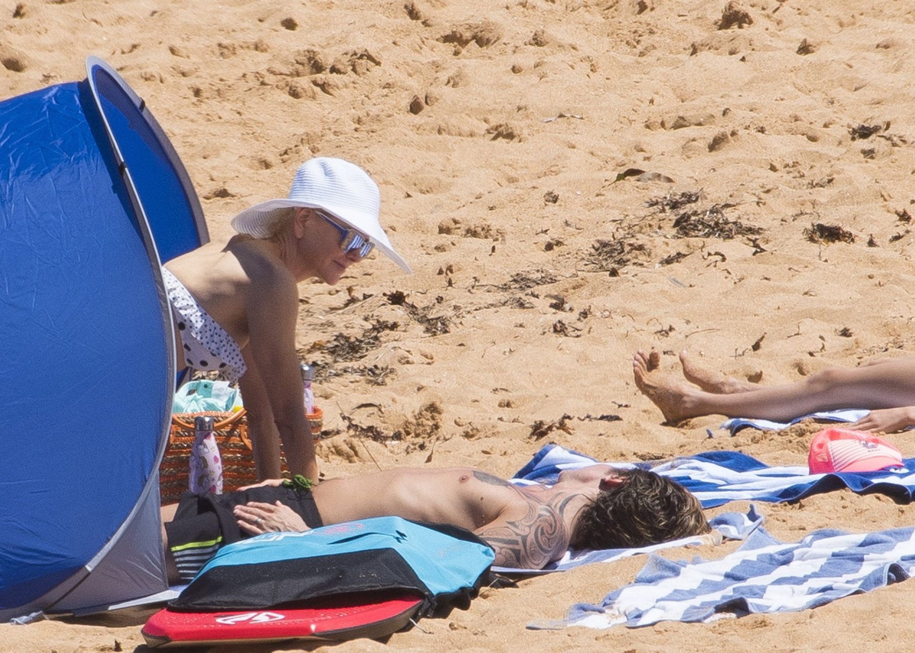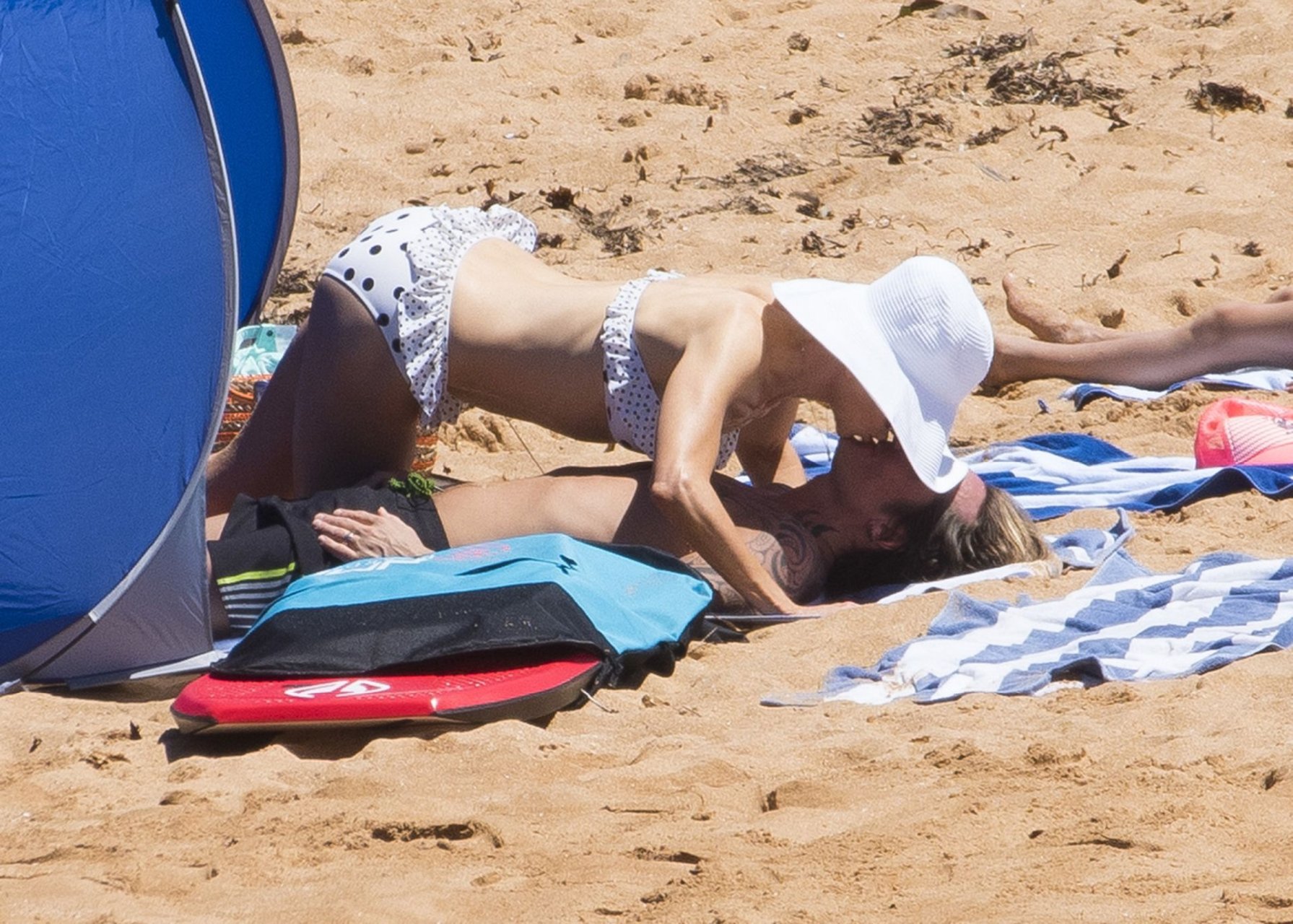 A atriz Nicole Kidman (51) foi fotografada em um momento raramente visto usando um biquíni branco com bolinhas para um dia de véspera de Natal em Palm Beach, Sydney, Austrália, com seu marido Keith Urban, 24/12/2018.