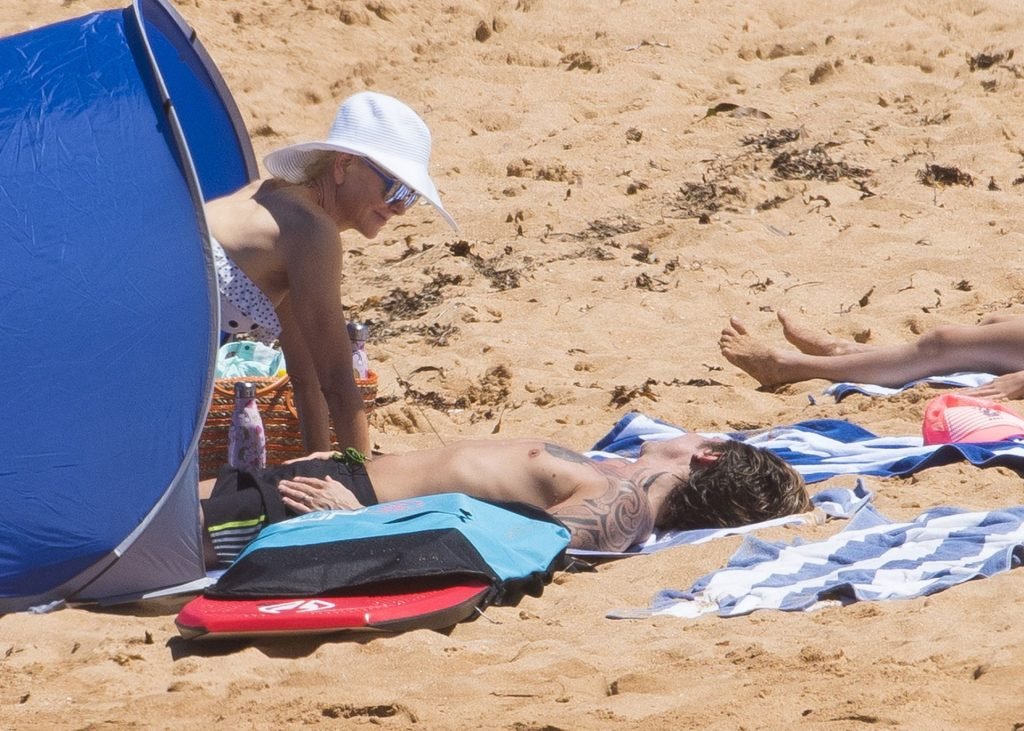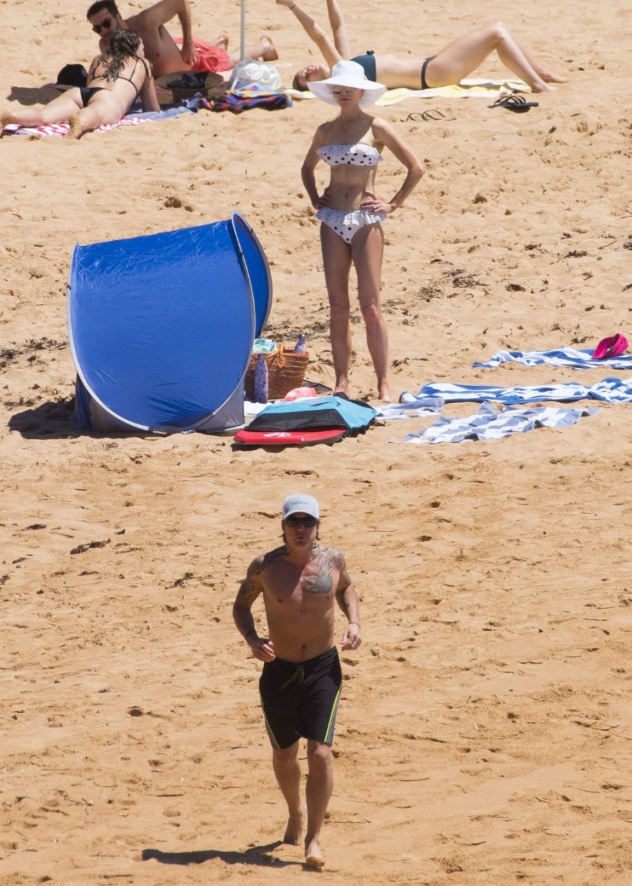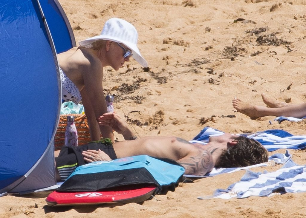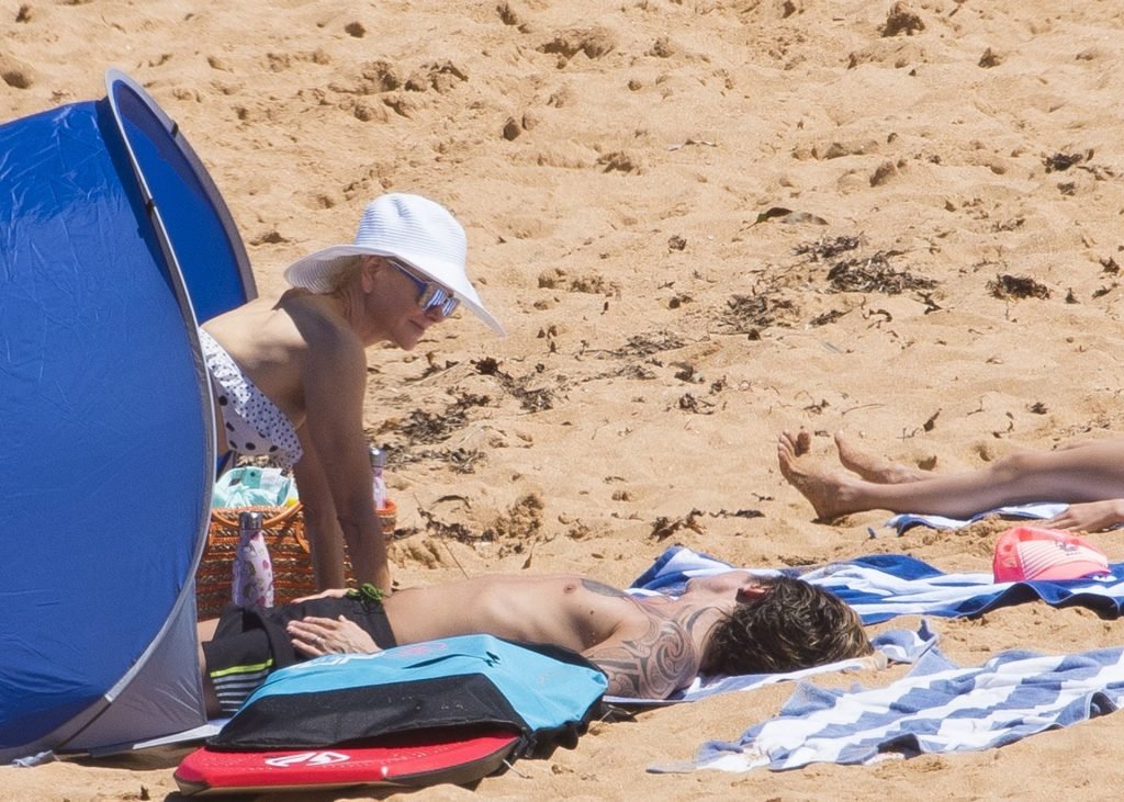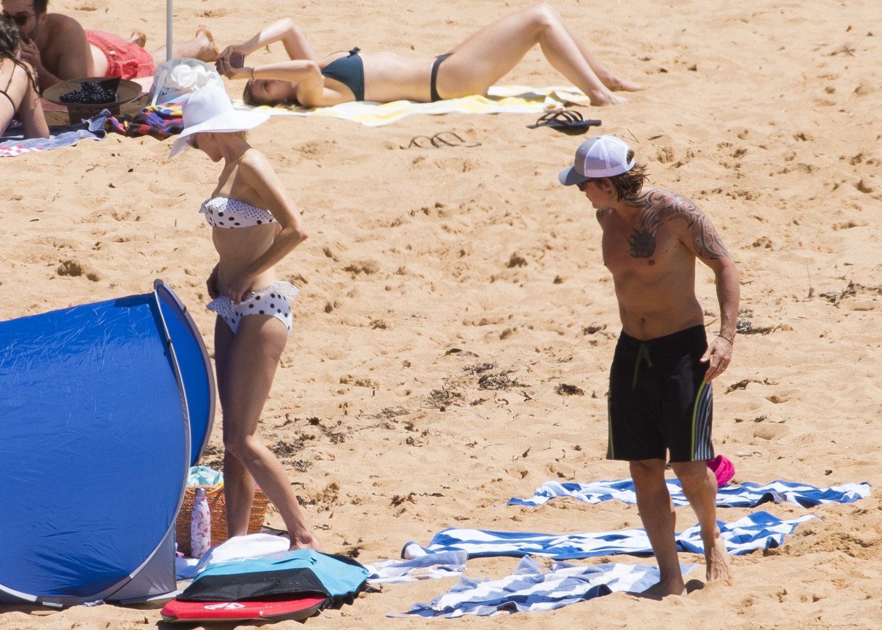 A atriz Nicole Kidman (51) foi fotografada em um momento raramente visto usando um biquíni branco com bolinhas para um dia de véspera de Natal em Palm Beach, Sydney, Austrália, com seu marido Keith Urban, 24/12/2018.