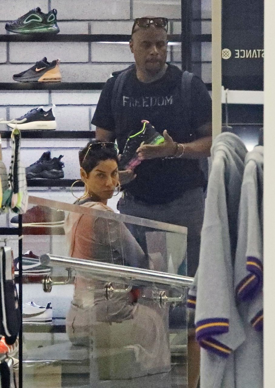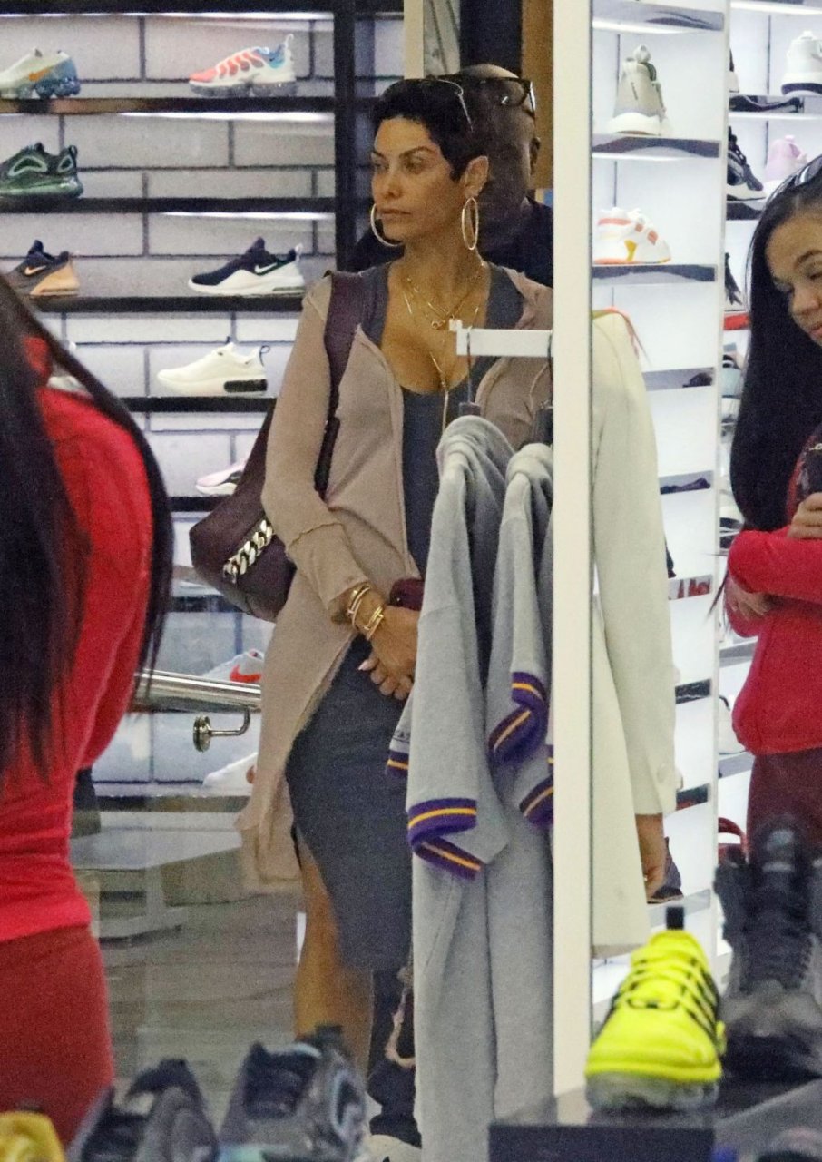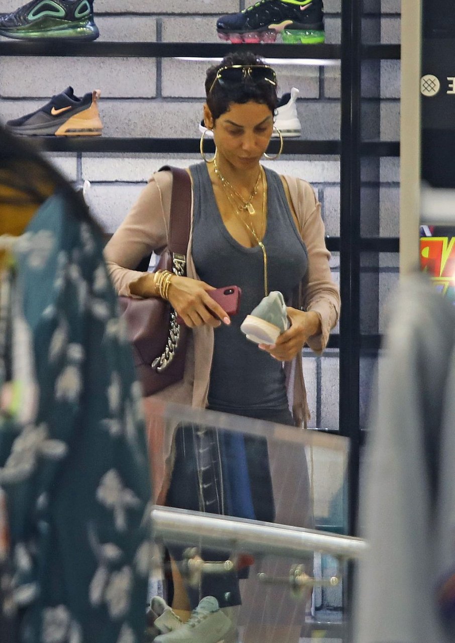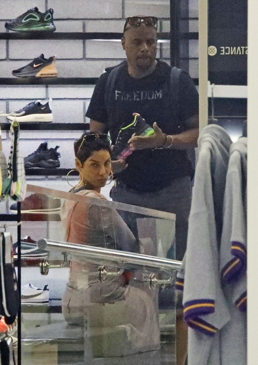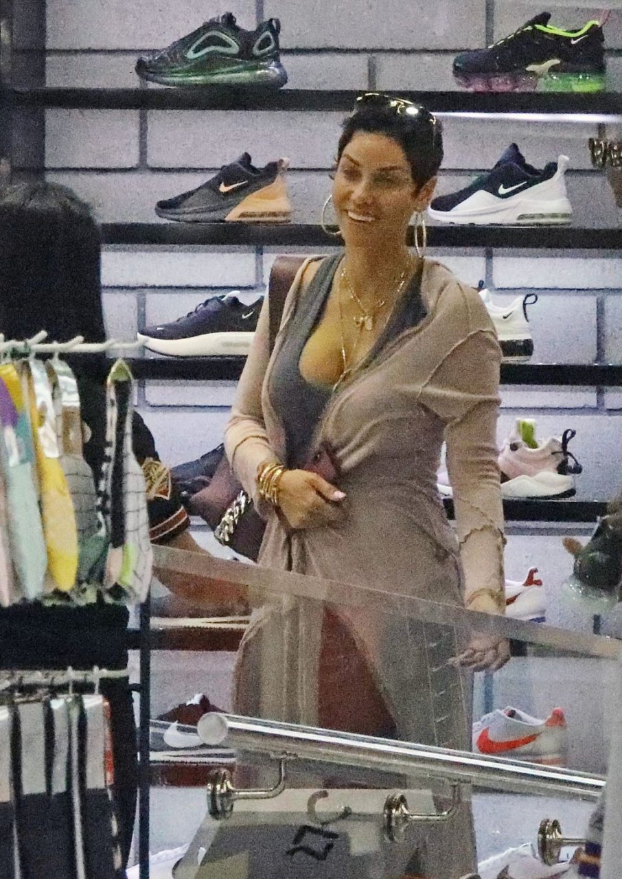 A atriz/modelo/apresentadora de TV americana e voluptuosa Nicole Murphy faz compras na Shoe Palace com um homem misterioso em Los Angeles, 31/03/2019.