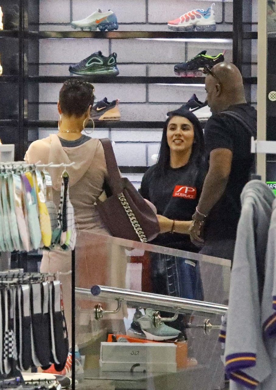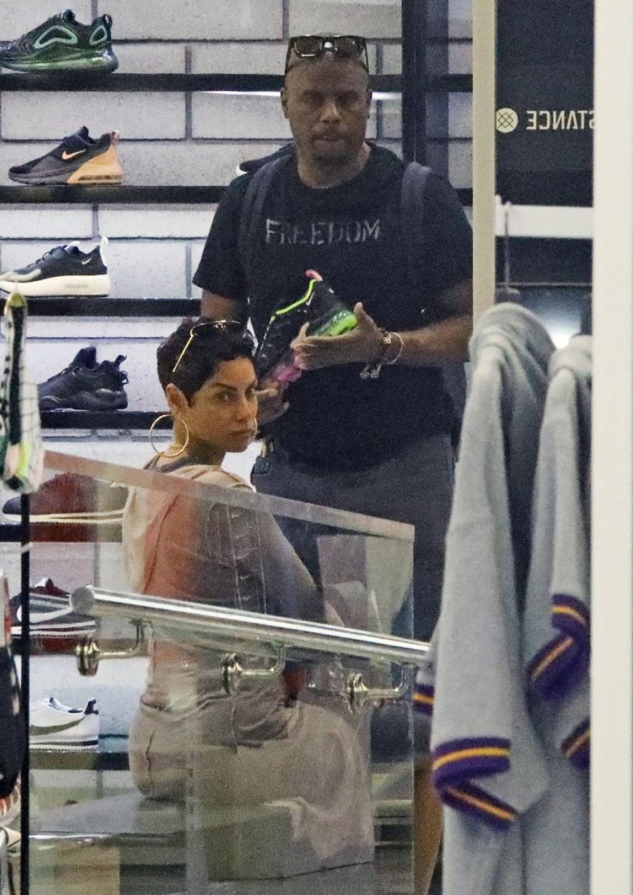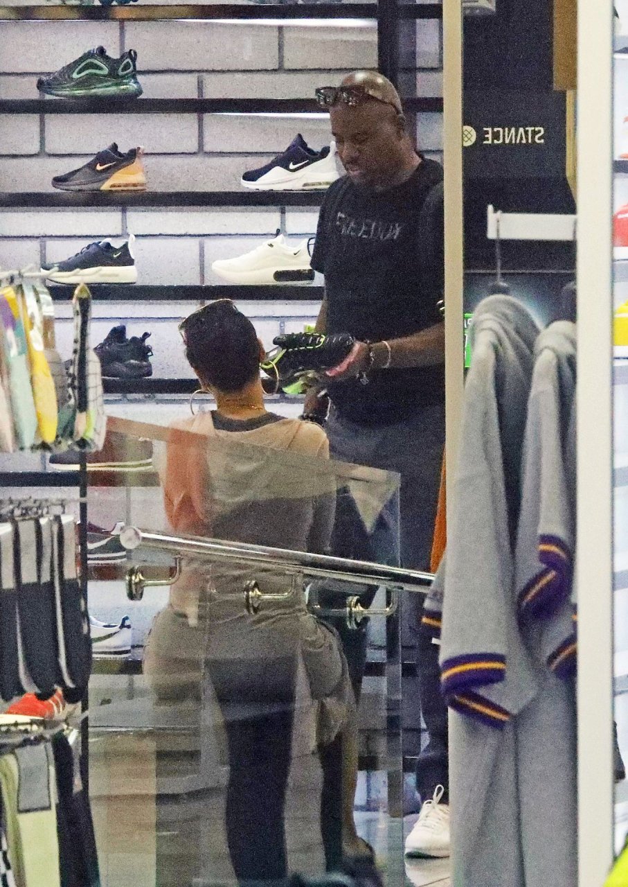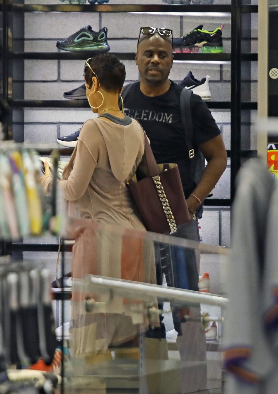 A atriz/modelo/apresentadora de TV americana e voluptuosa Nicole Murphy faz compras na Shoe Palace com um homem misterioso em Los Angeles, 31/03/2019.