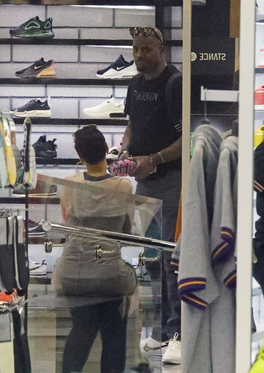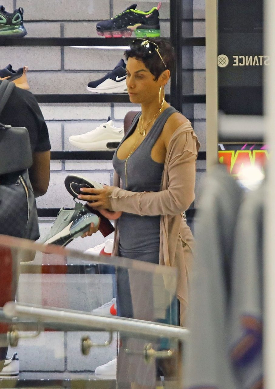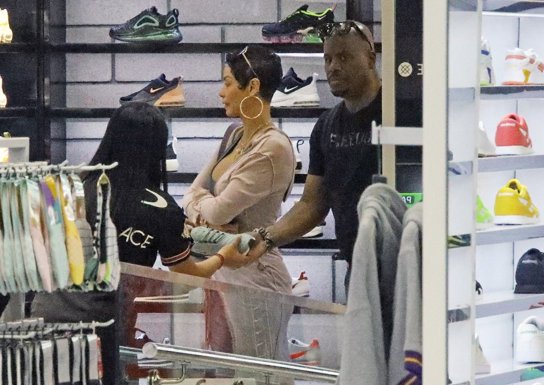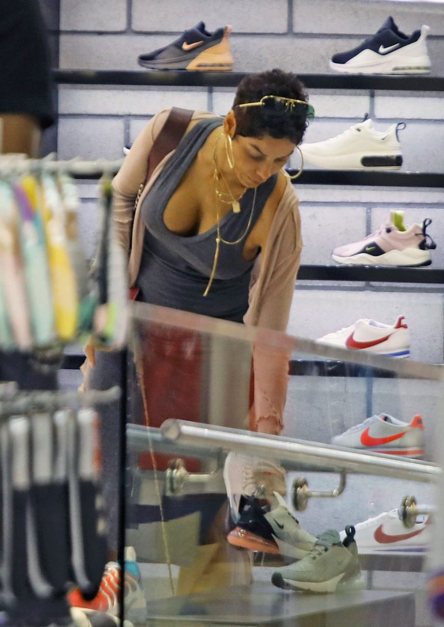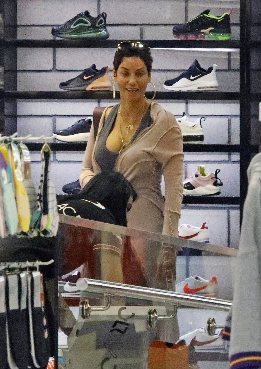A atriz/modelo/apresentadora de TV americana e voluptuosa Nicole Murphy faz compras na Shoe Palace com um homem misterioso em Los Angeles, 31/03/2019.