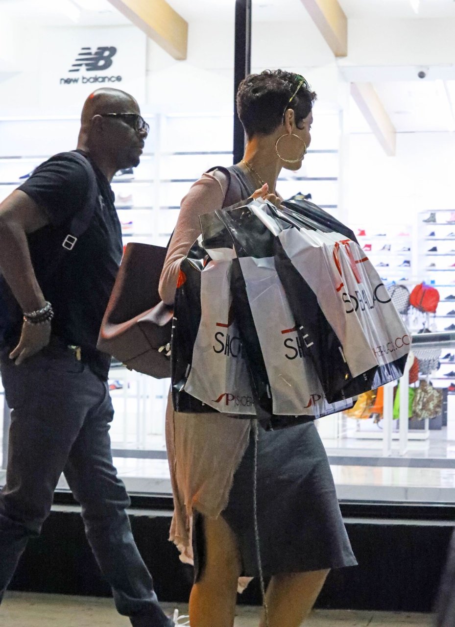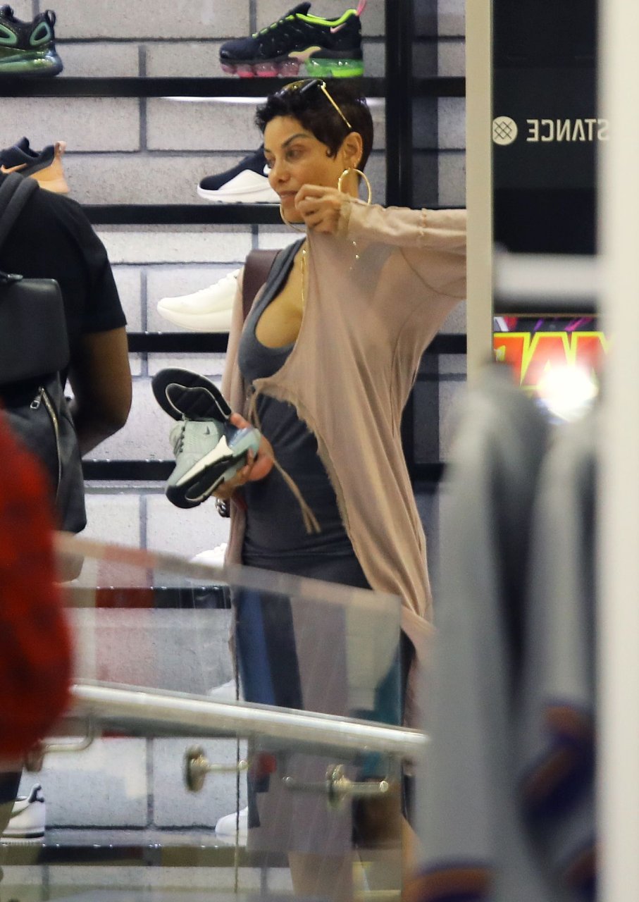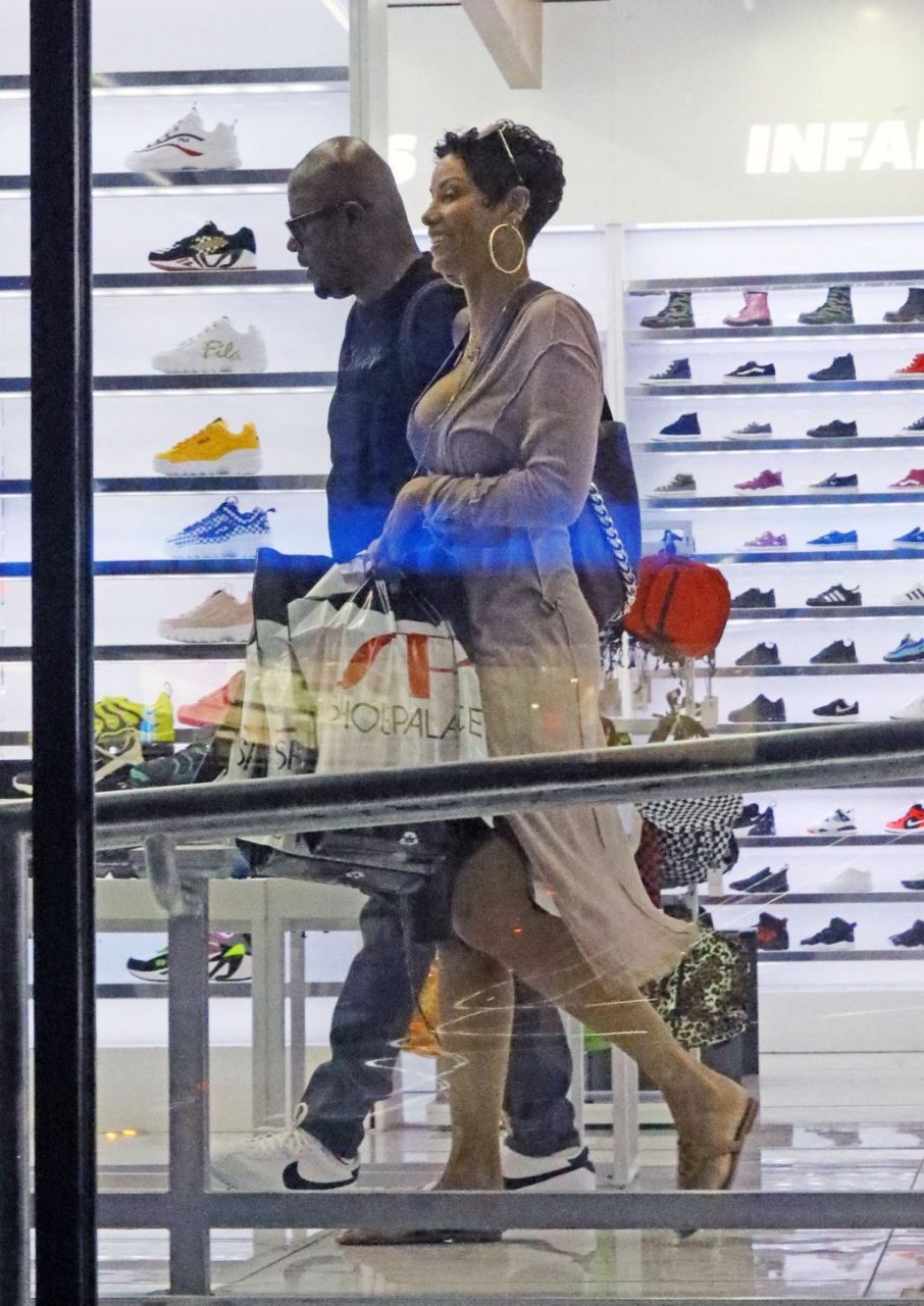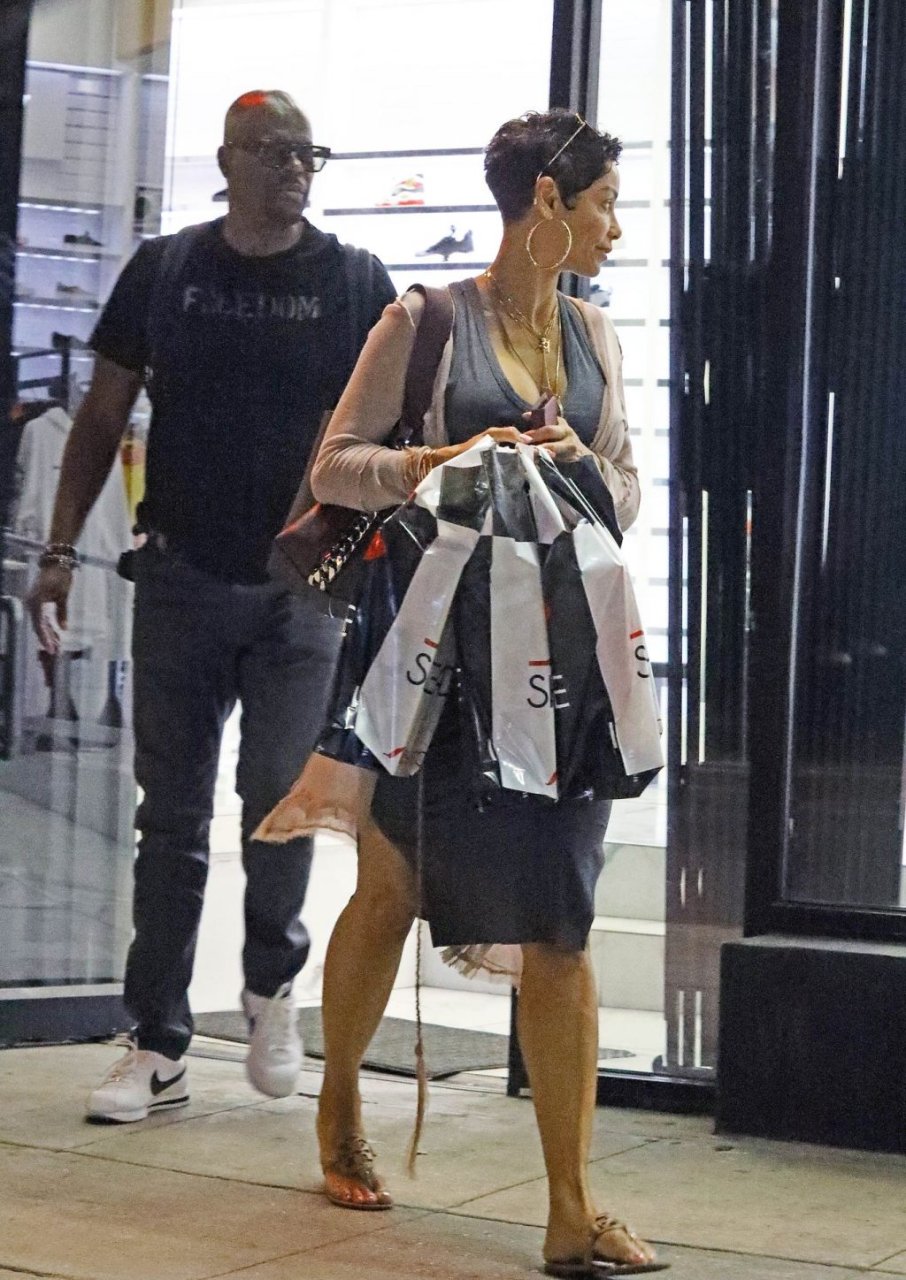 A atriz/modelo/apresentadora de TV americana e voluptuosa Nicole Murphy faz compras na Shoe Palace com um homem misterioso em Los Angeles, 31/03/2019.