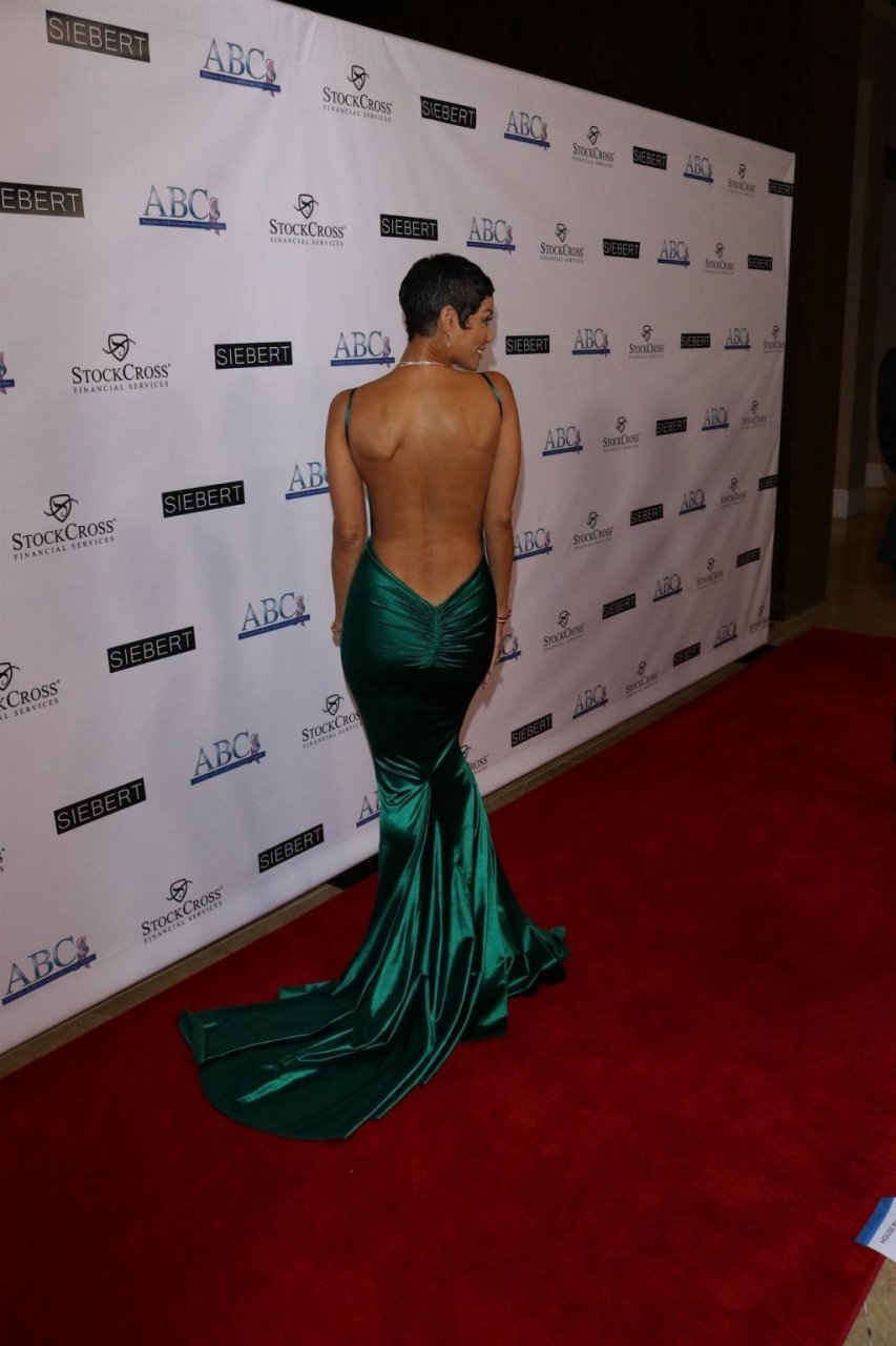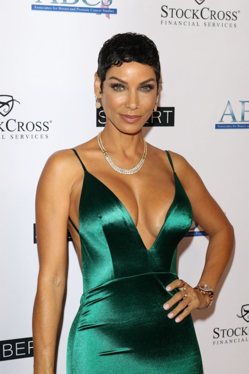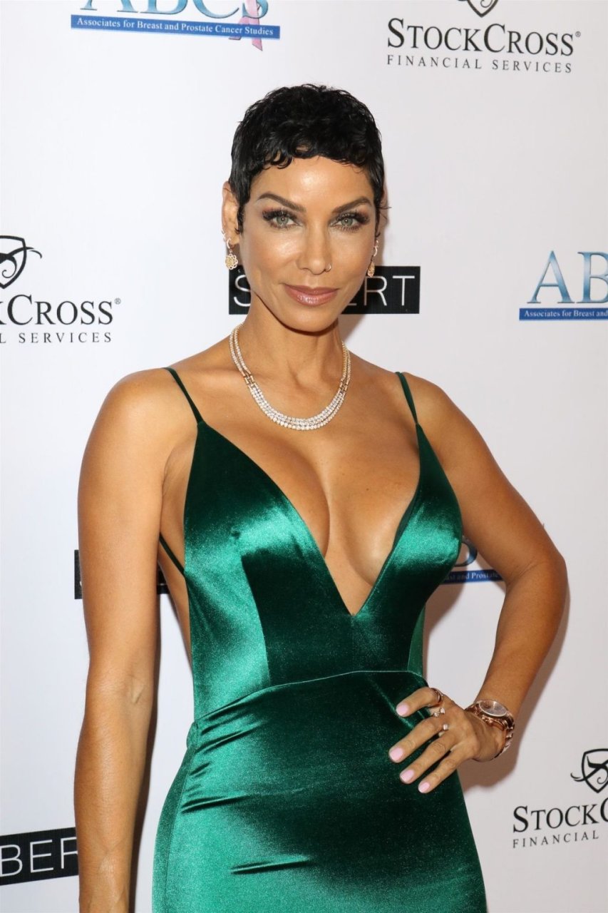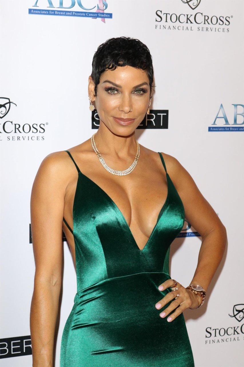 Nicole Murphy, de seios fartos (50), exibiu seu decote em um vestido justo verde no Baile Anual Talk Of The Town da Associates For Breast And Prostate Cancer Studies, no Beverly Hilton Hotel em Beverly Hills, 17/11/2018.