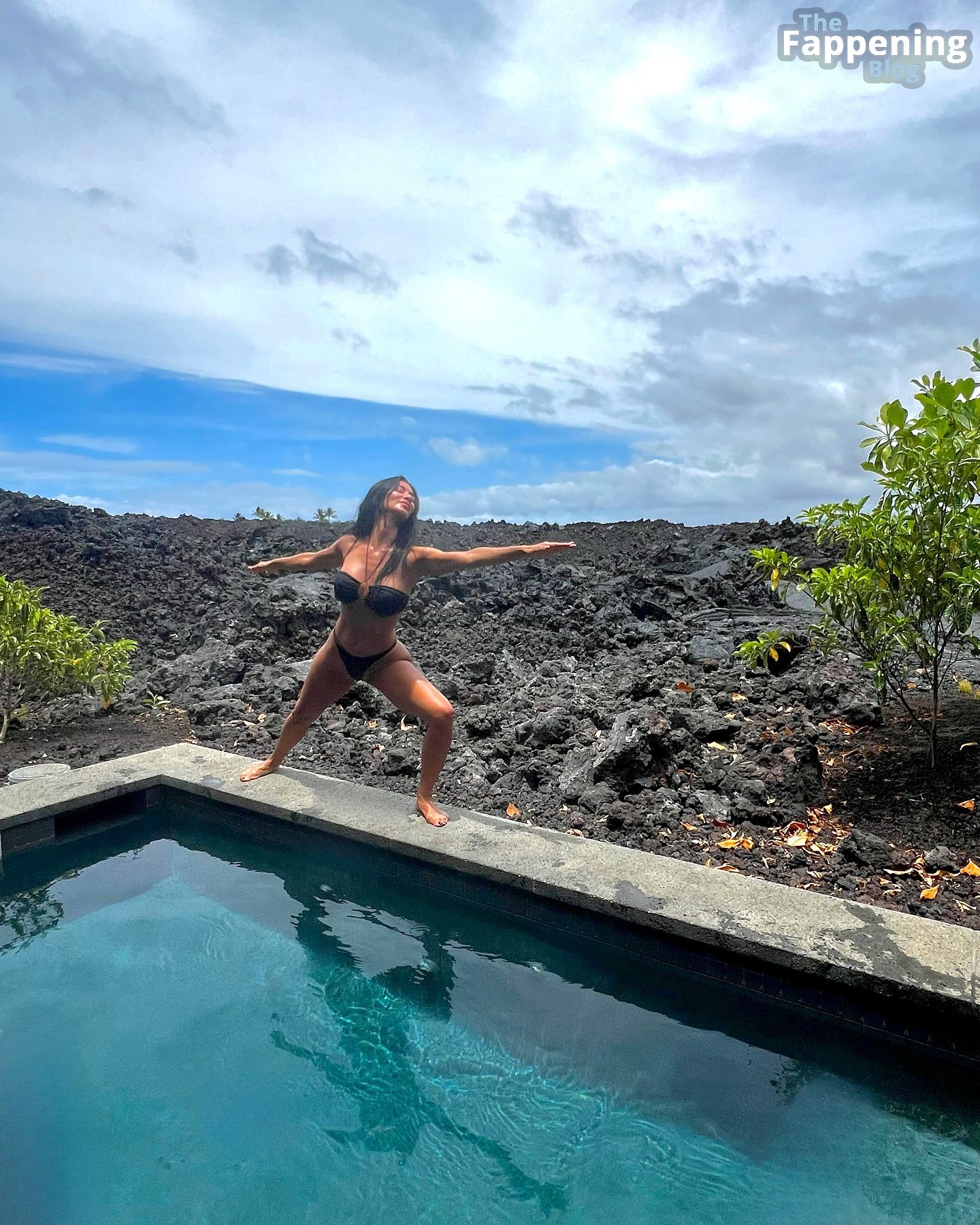 Nicole Scherzinger, 46 anos, está exibindo seu corpo incrível em um biquíni preto minúsculo enquanto faz algumas poses de ioga no Havaí.