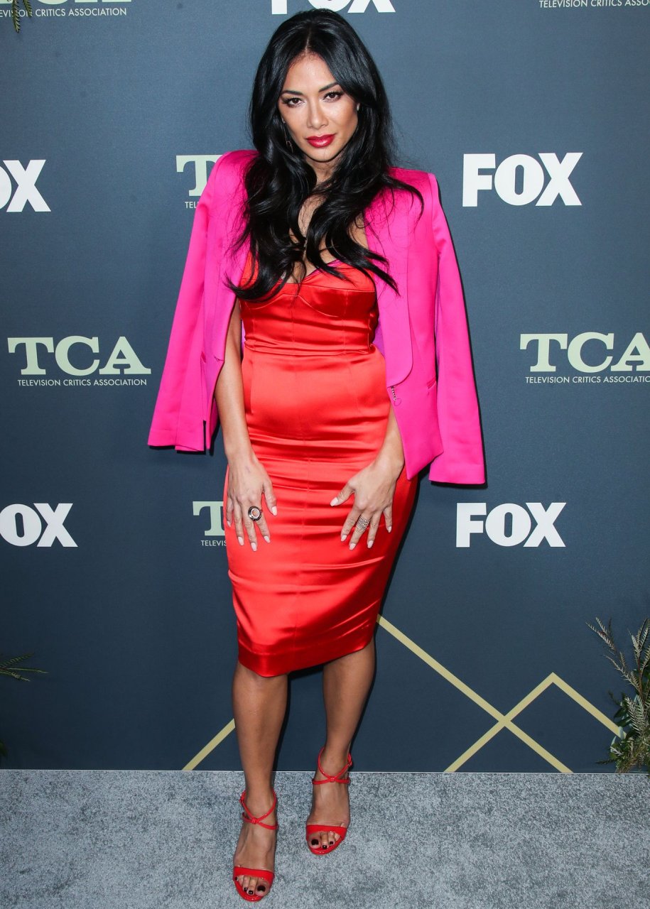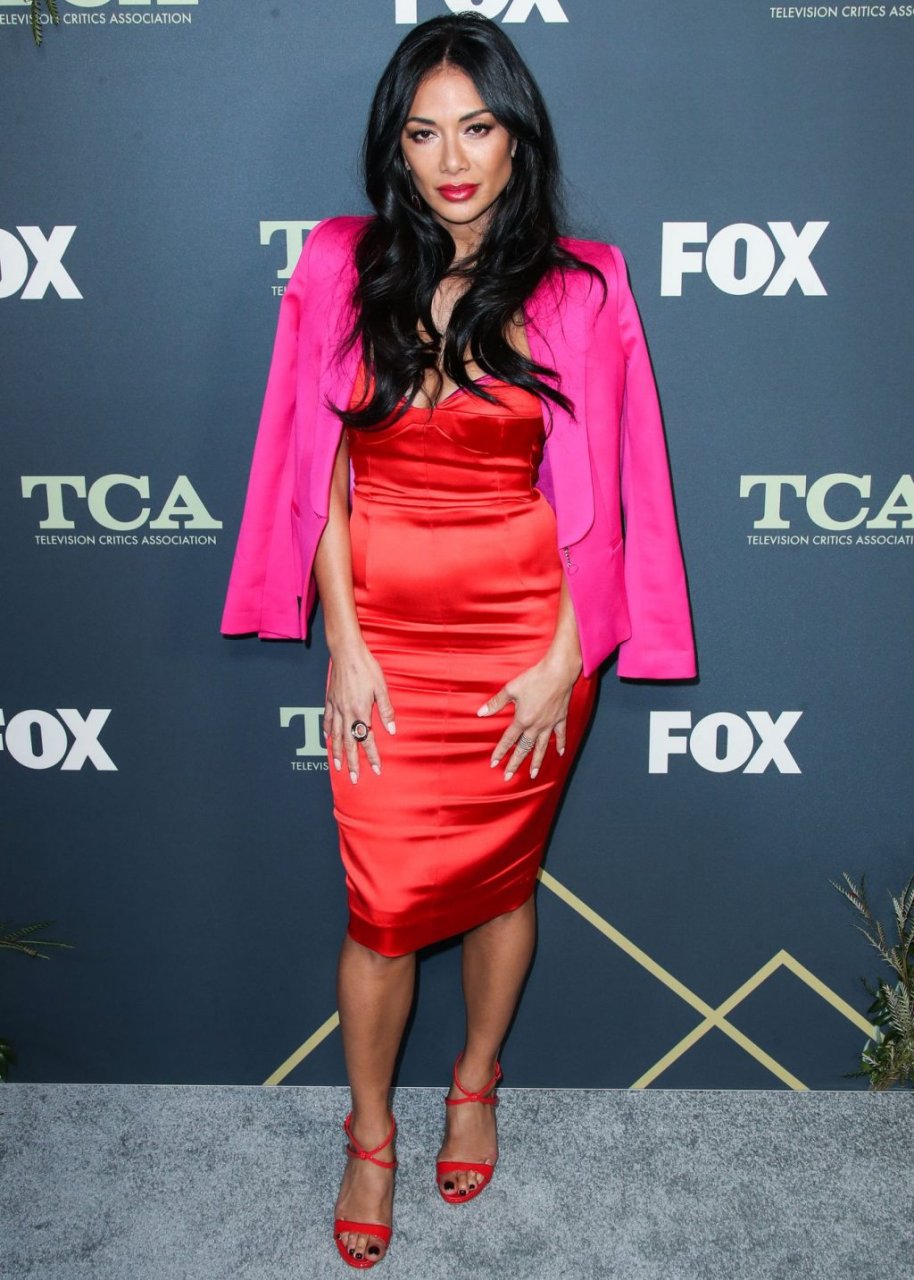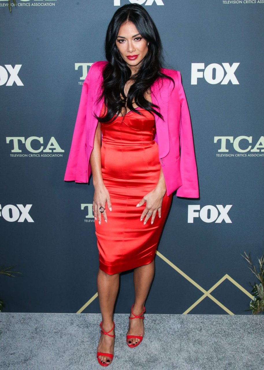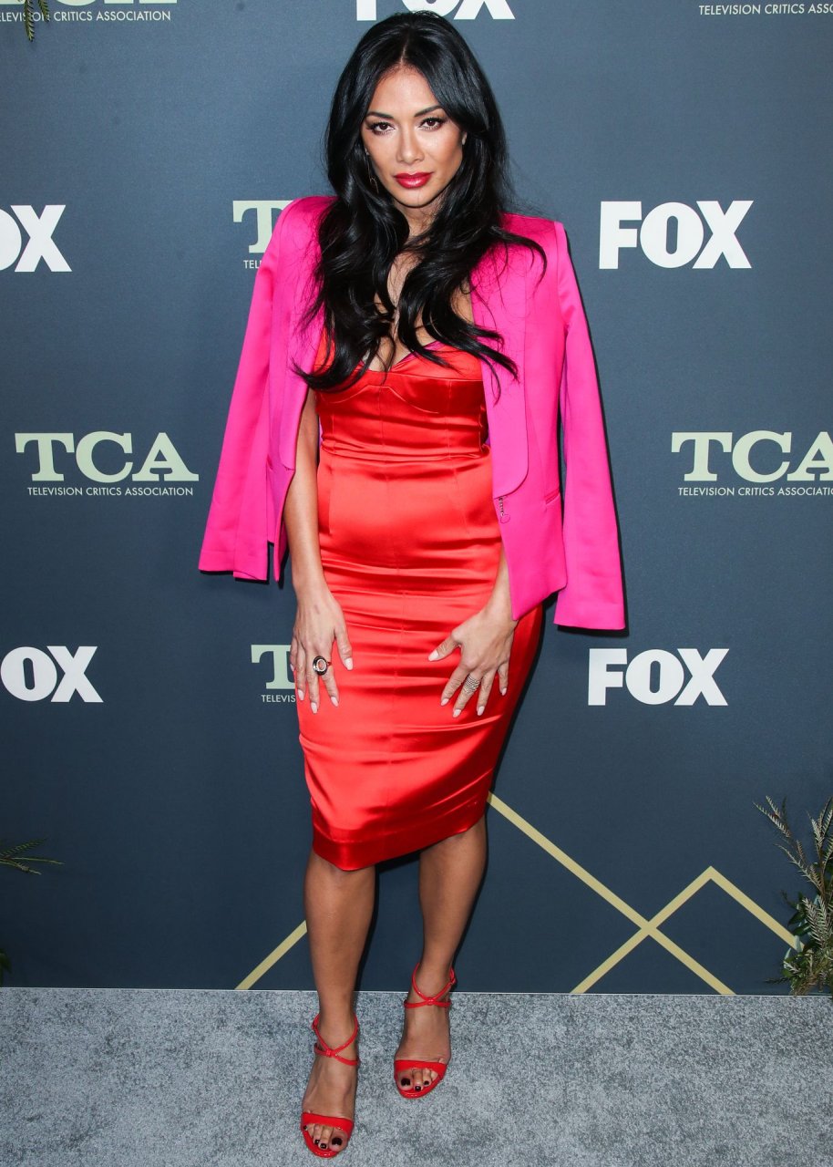 Cantora alta e voluptuosa Nicole Scherzinger chega à festa FOX Winter TCA 2019 All-Star realizada no The Fig House em Pasadena, Los Angeles, 02/06/2019.
