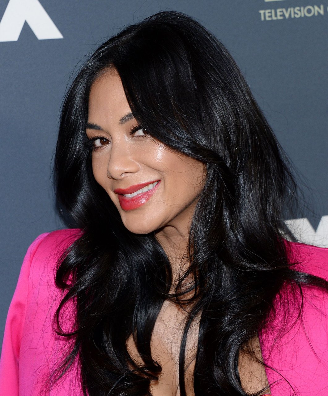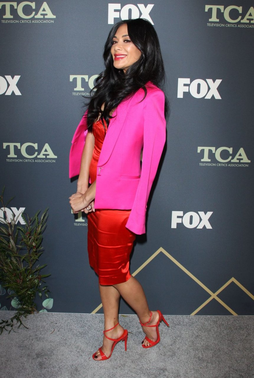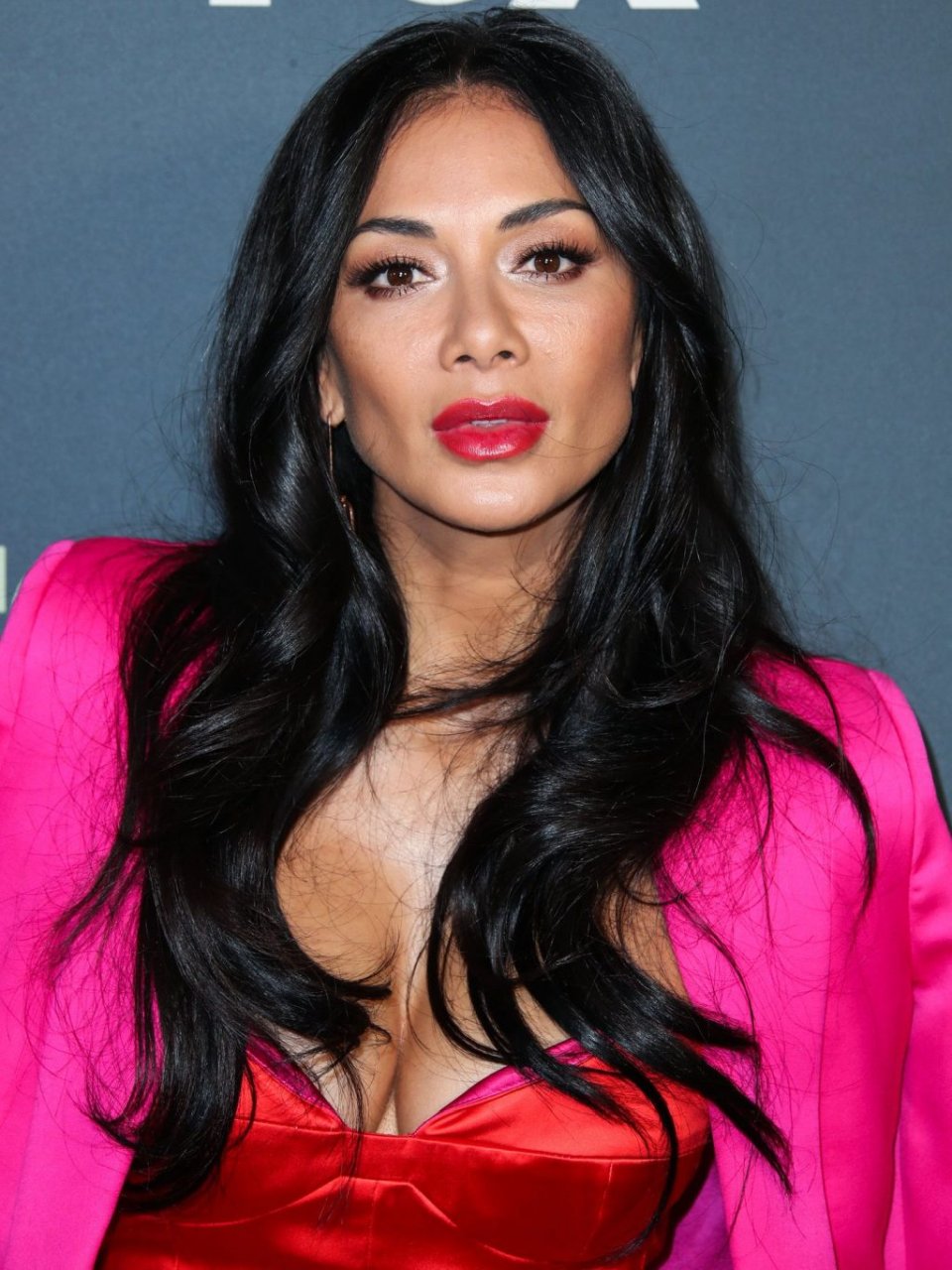 Cantora alta e voluptuosa Nicole Scherzinger chega à festa FOX Winter TCA 2019 All-Star realizada no The Fig House em Pasadena, Los Angeles, 02/06/2019.