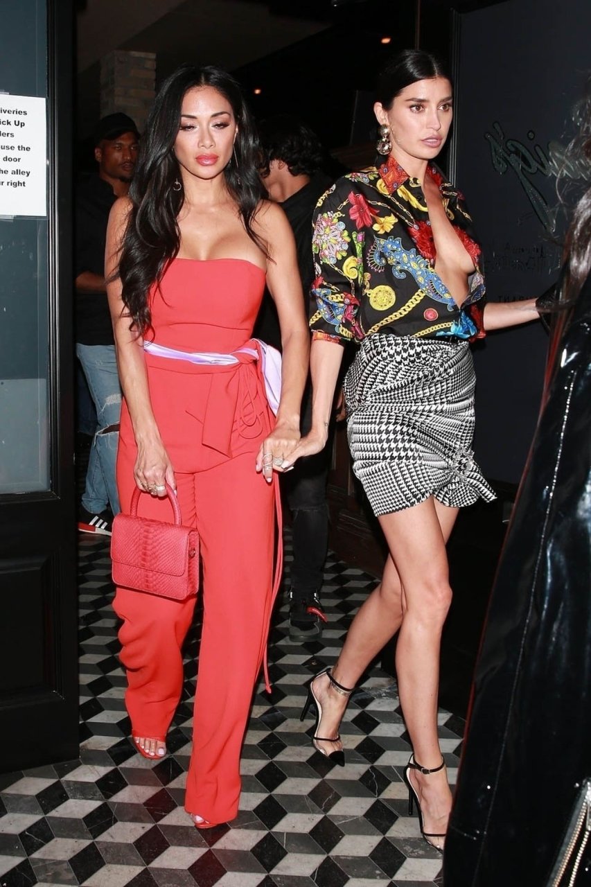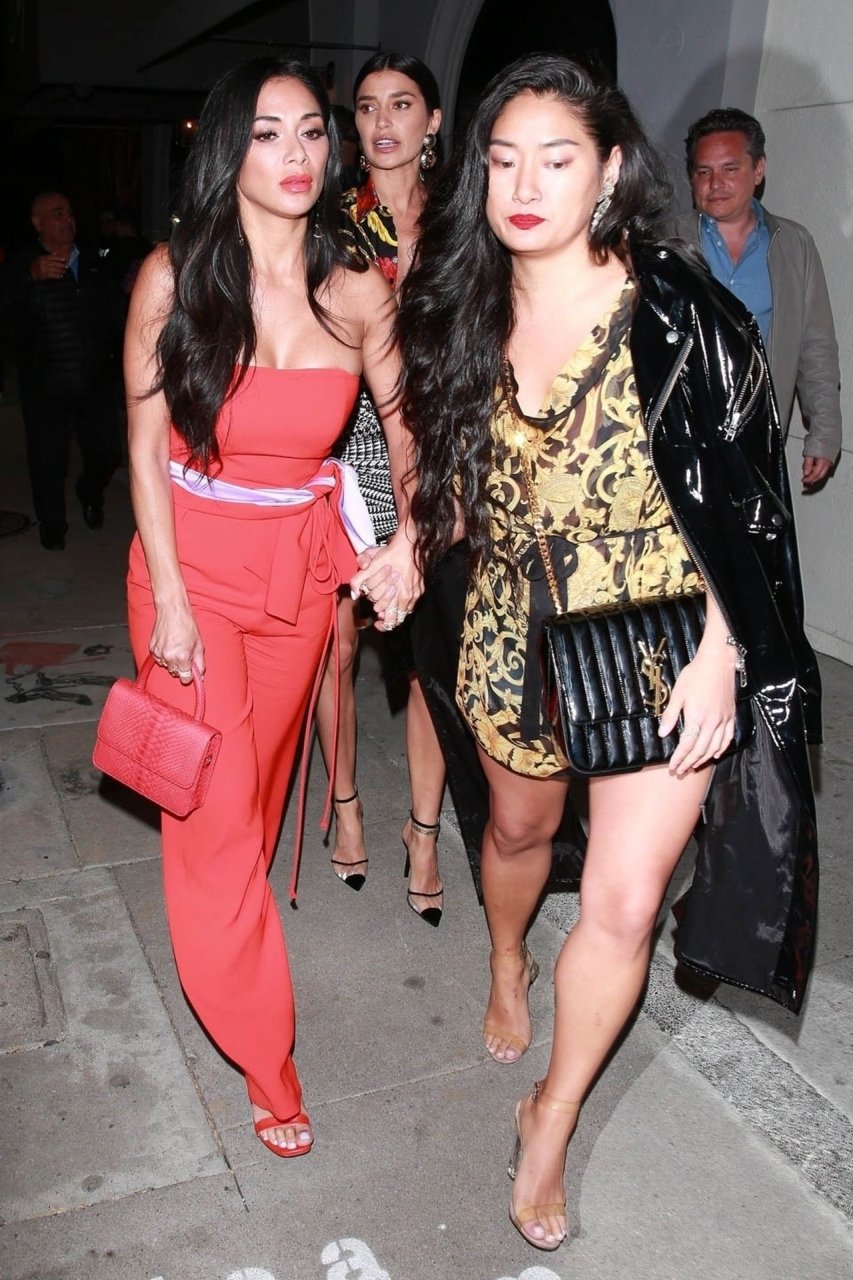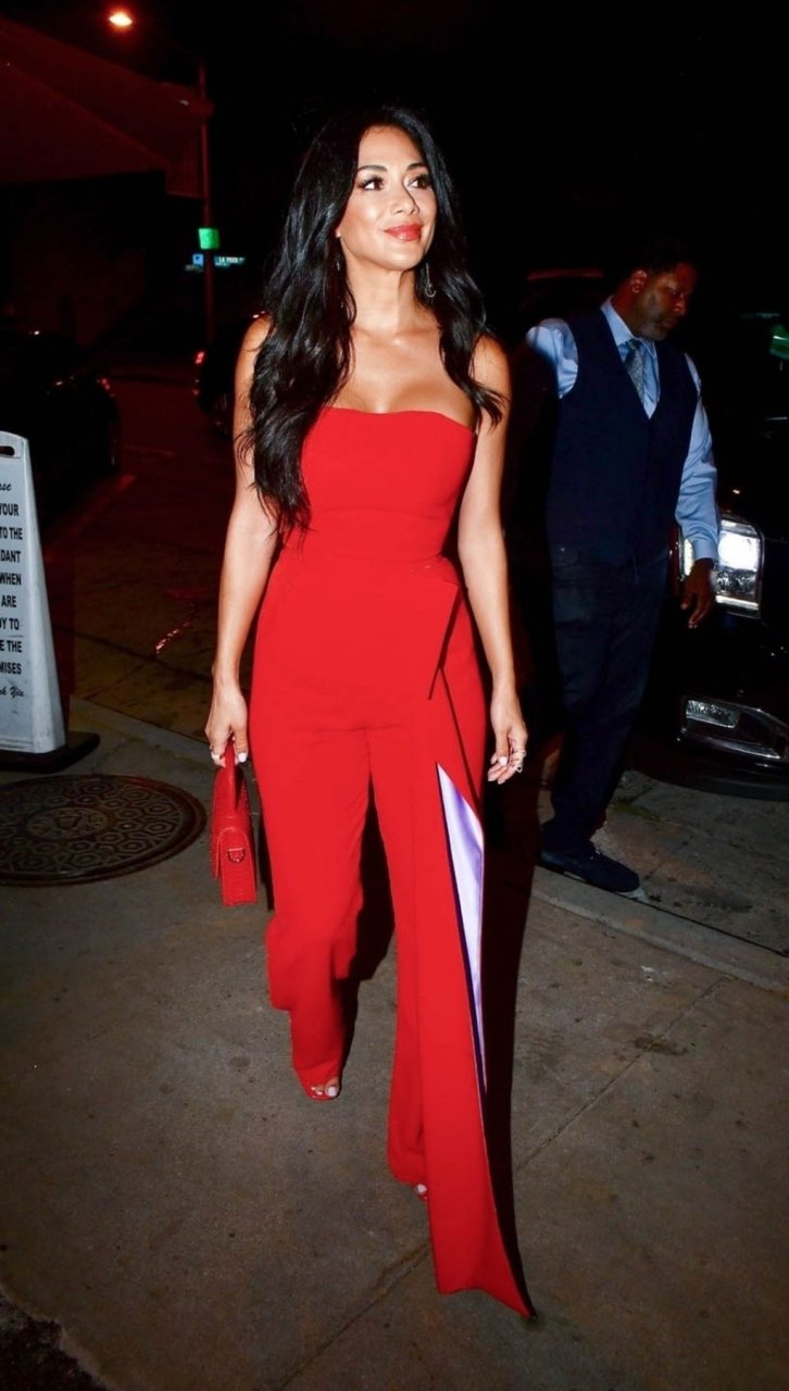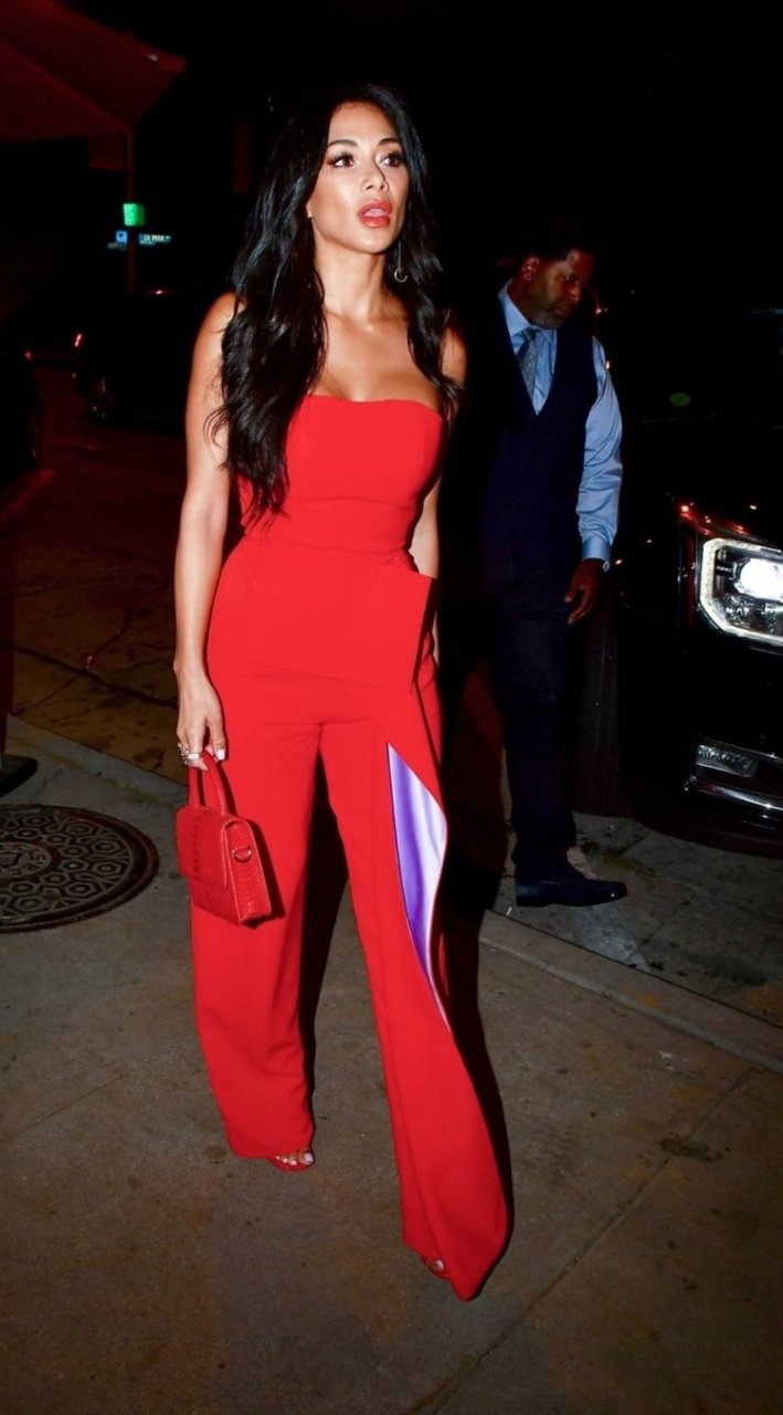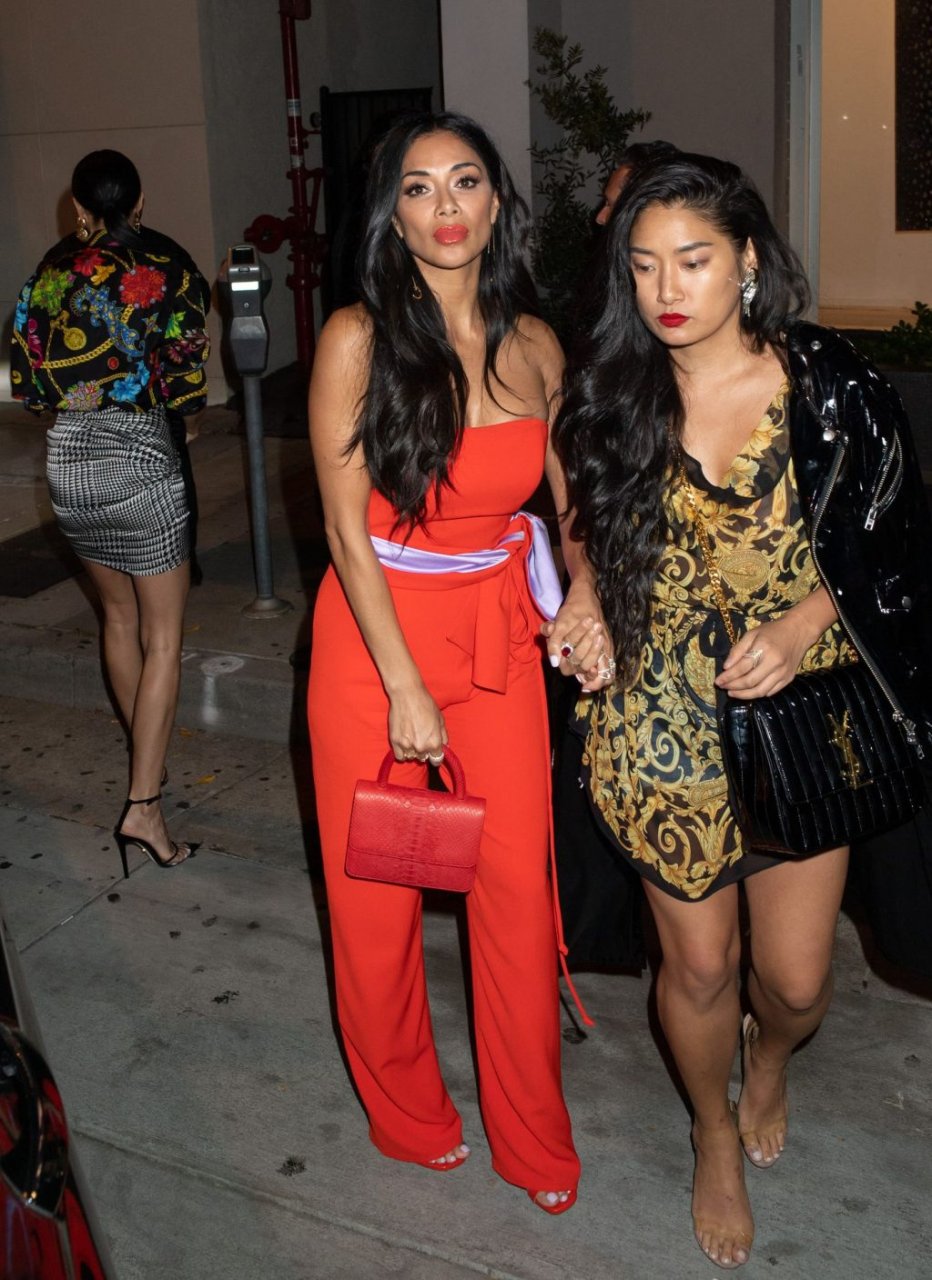 A cantora principal do “Pussycat Dolls”, Nicole Scherzinger, está deslumbrante com uma roupa vermelha ao chegar para jantar com Nicole Williams no Craig’s em West Hollywood, 25/04/2019.