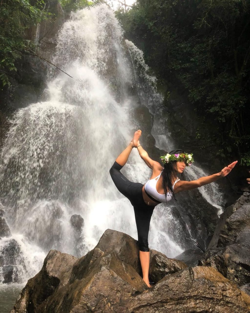 Nicole Scherzinger compartilhou algumas fotos sensuais no Instagram, 12/10/2018. A superestrela de 40 anos mostrou várias poses de yoga no Havaí.