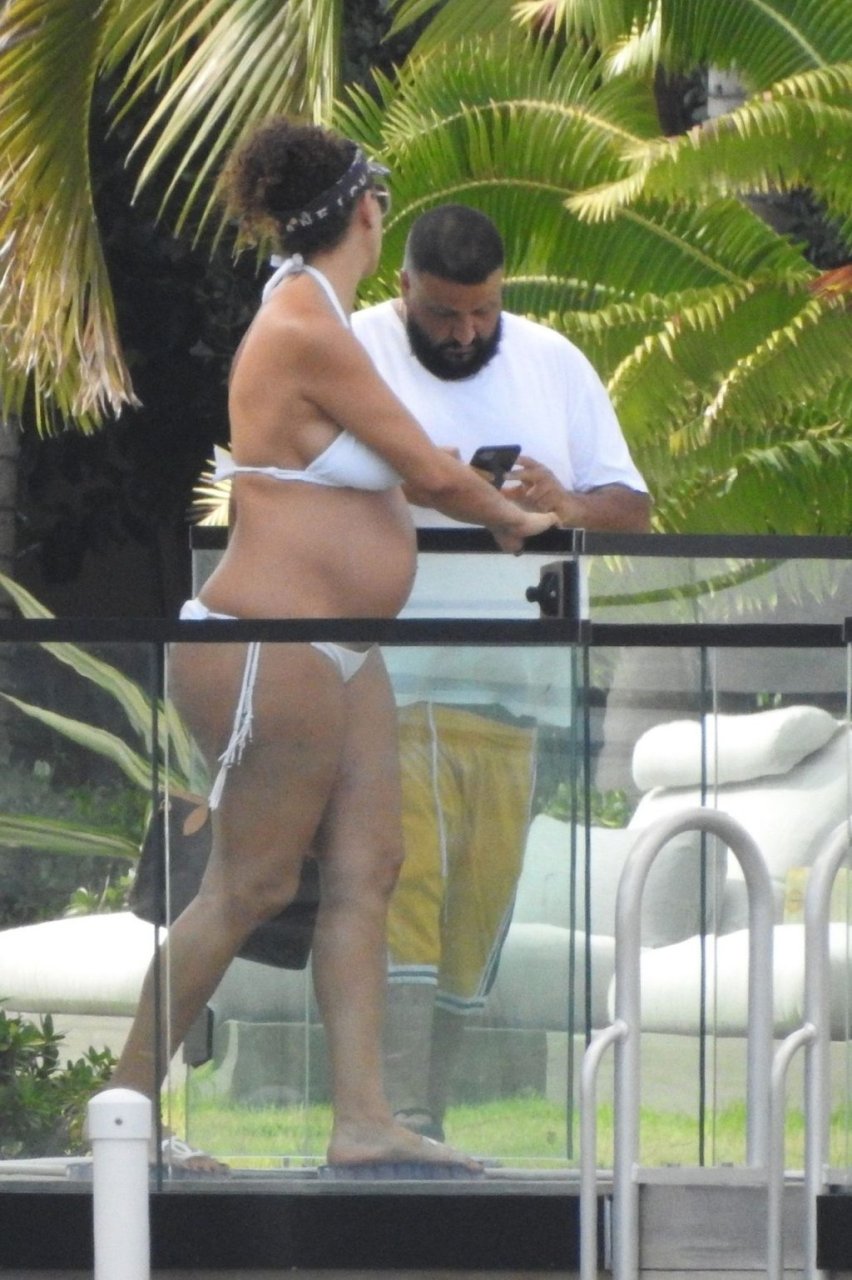 DJ Khaled tem “Outro” a caminho! A sensação pop americana DJ Khaled e sua esposa grávida de 43 anos, Nicole Tuck, de biquíni, exibiram sua grande barriga de grávida enquanto aproveitavam uma linda tarde de domingo e um passeio de barco em um enorme iate de luxo em Miami Beach, 06/10/2019.
