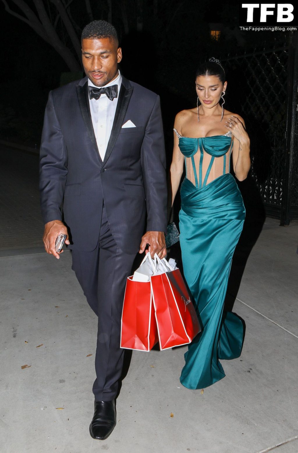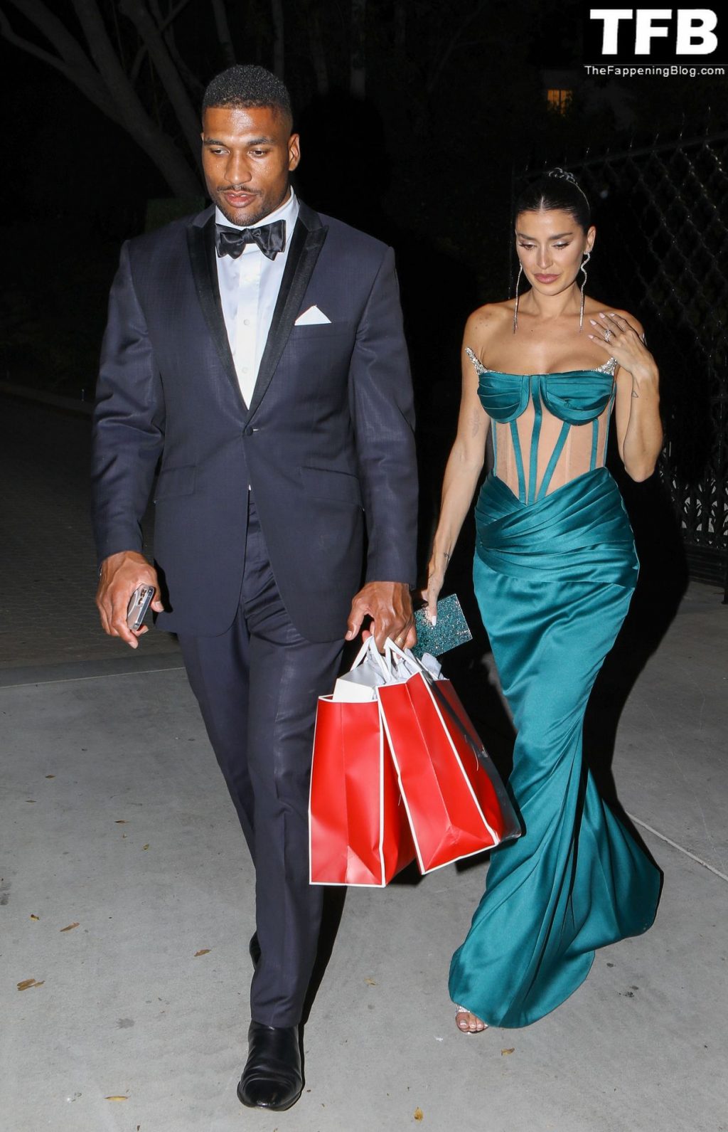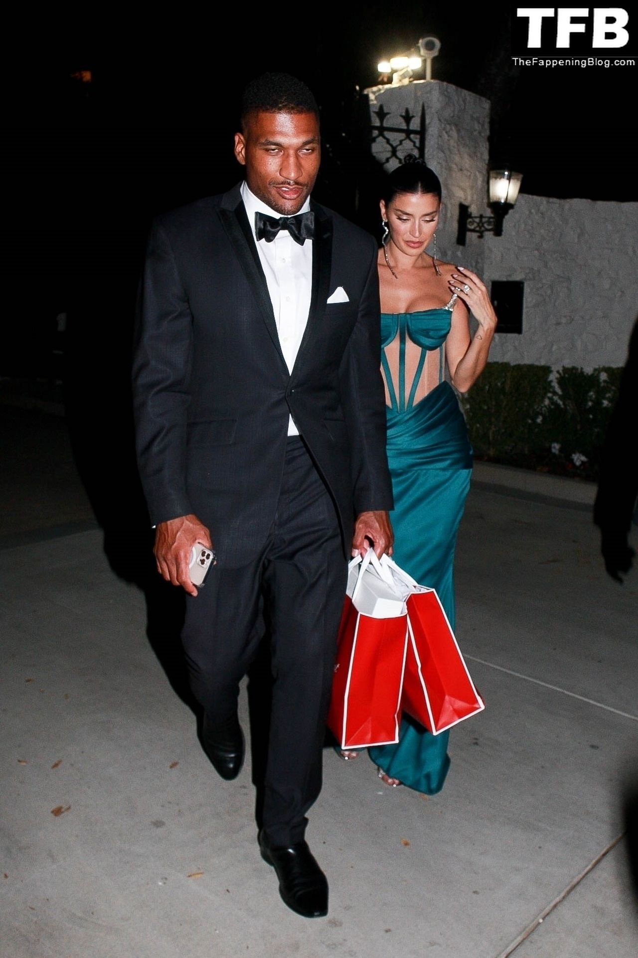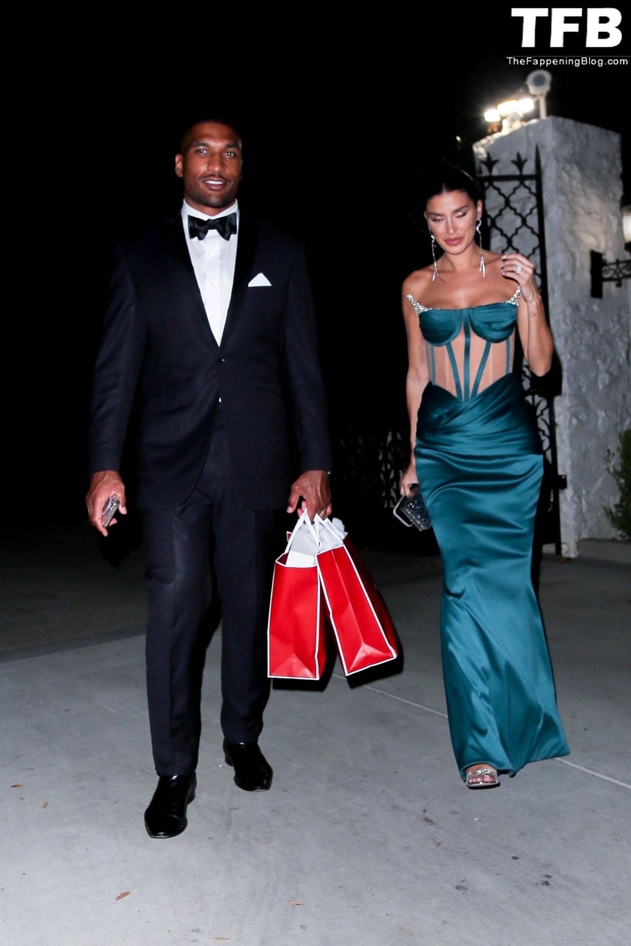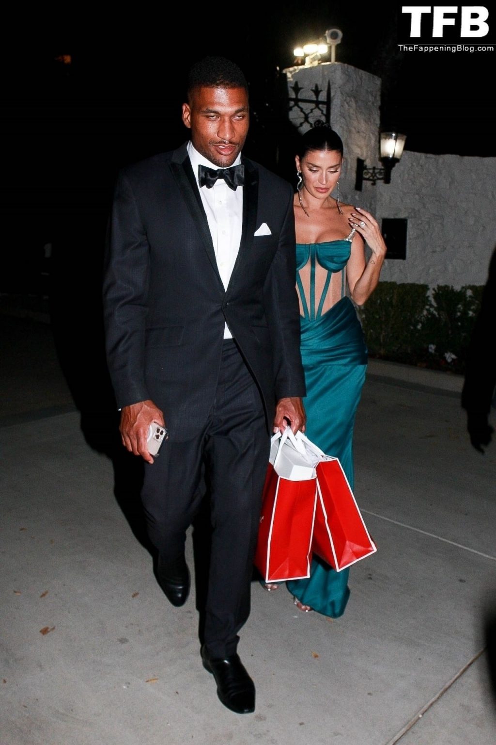 A estrela canadense do WAGS Nicole Williams e seu marido Larry English foram vistos saindo do casamento de Paris Hilton em Beverly Hills, 12/11/2021.