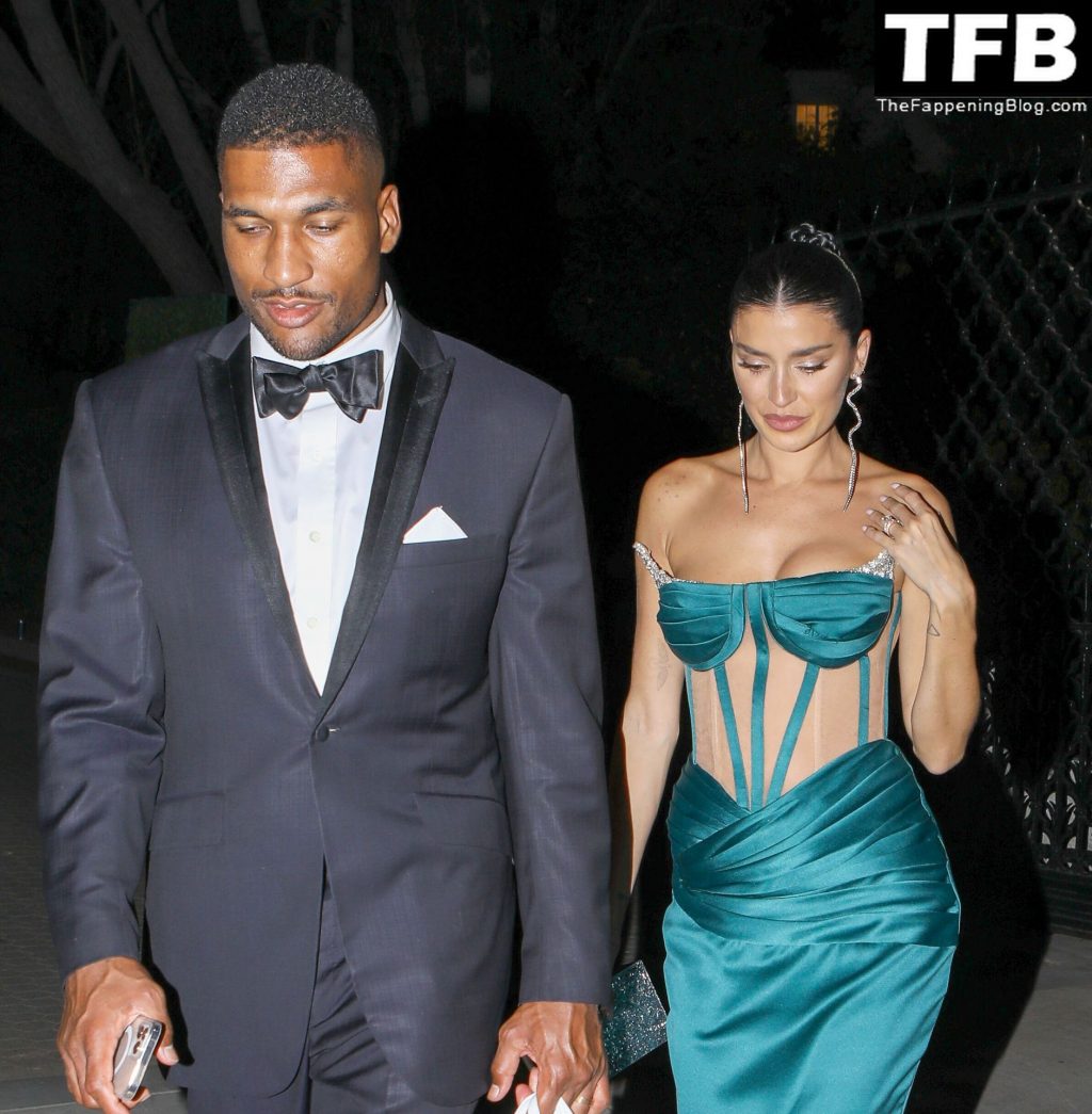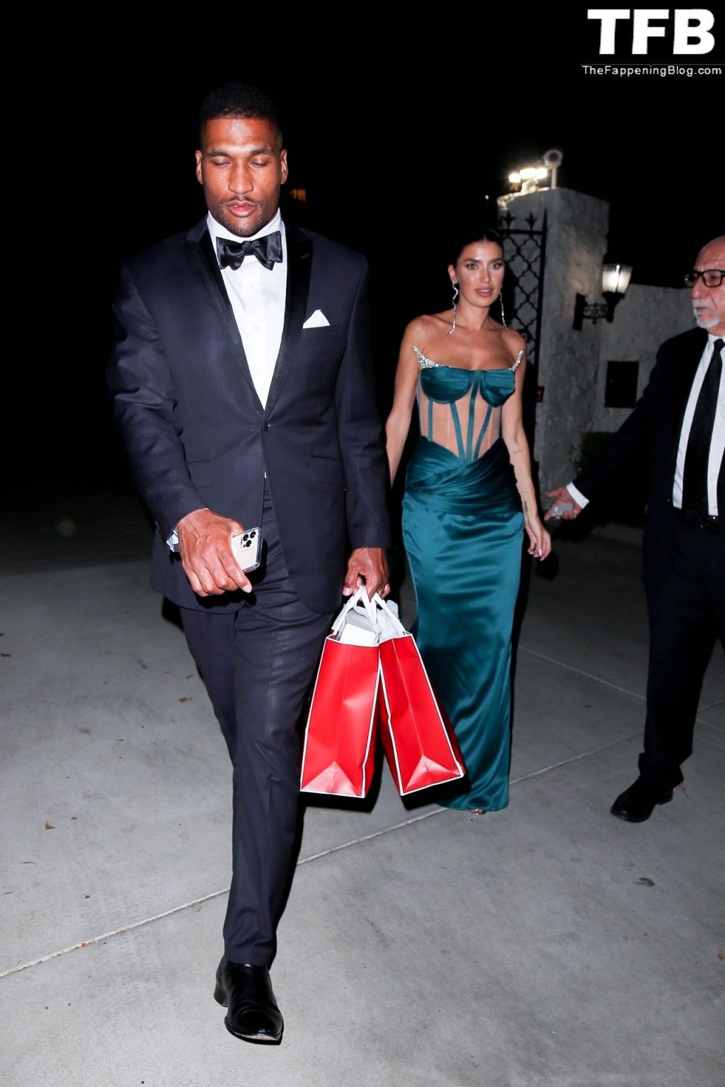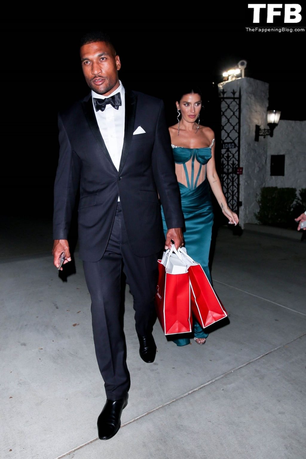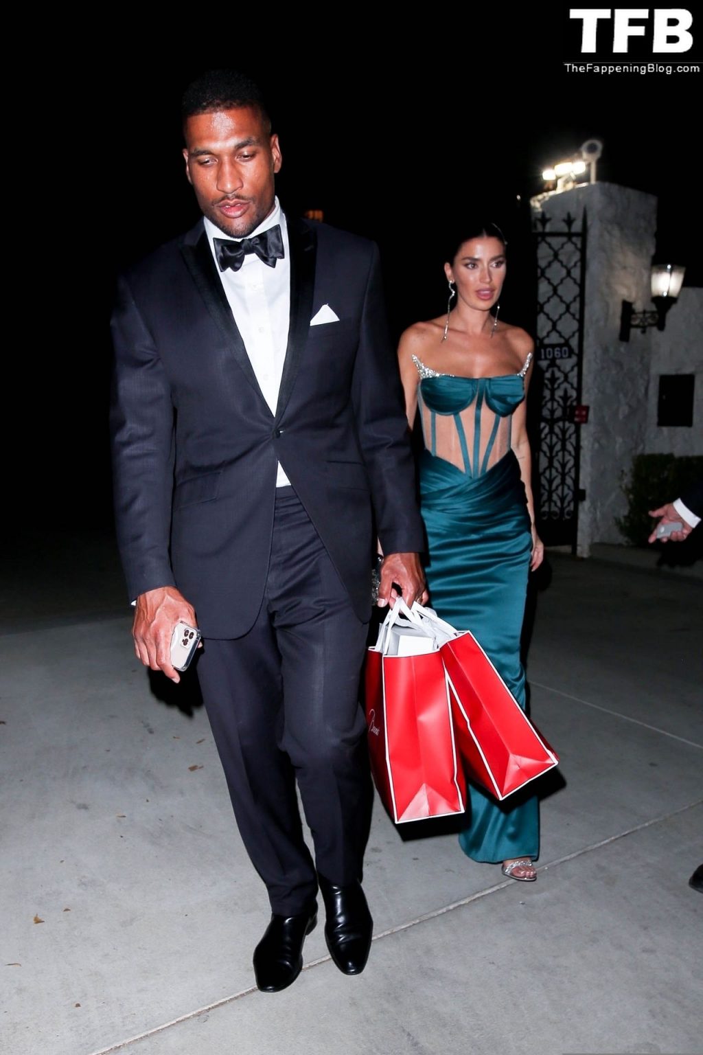 A estrela canadense do WAGS Nicole Williams e seu marido Larry English foram vistos saindo do casamento de Paris Hilton em Beverly Hills, 12/11/2021.