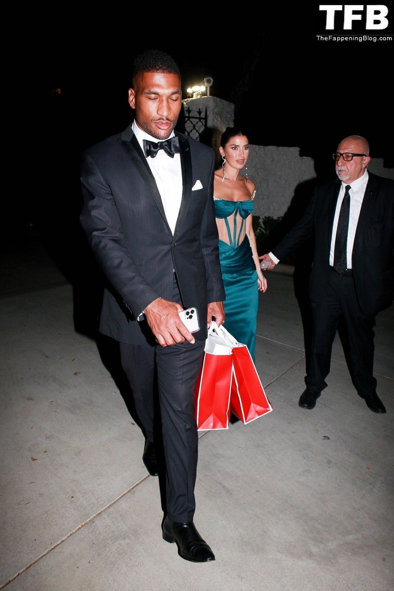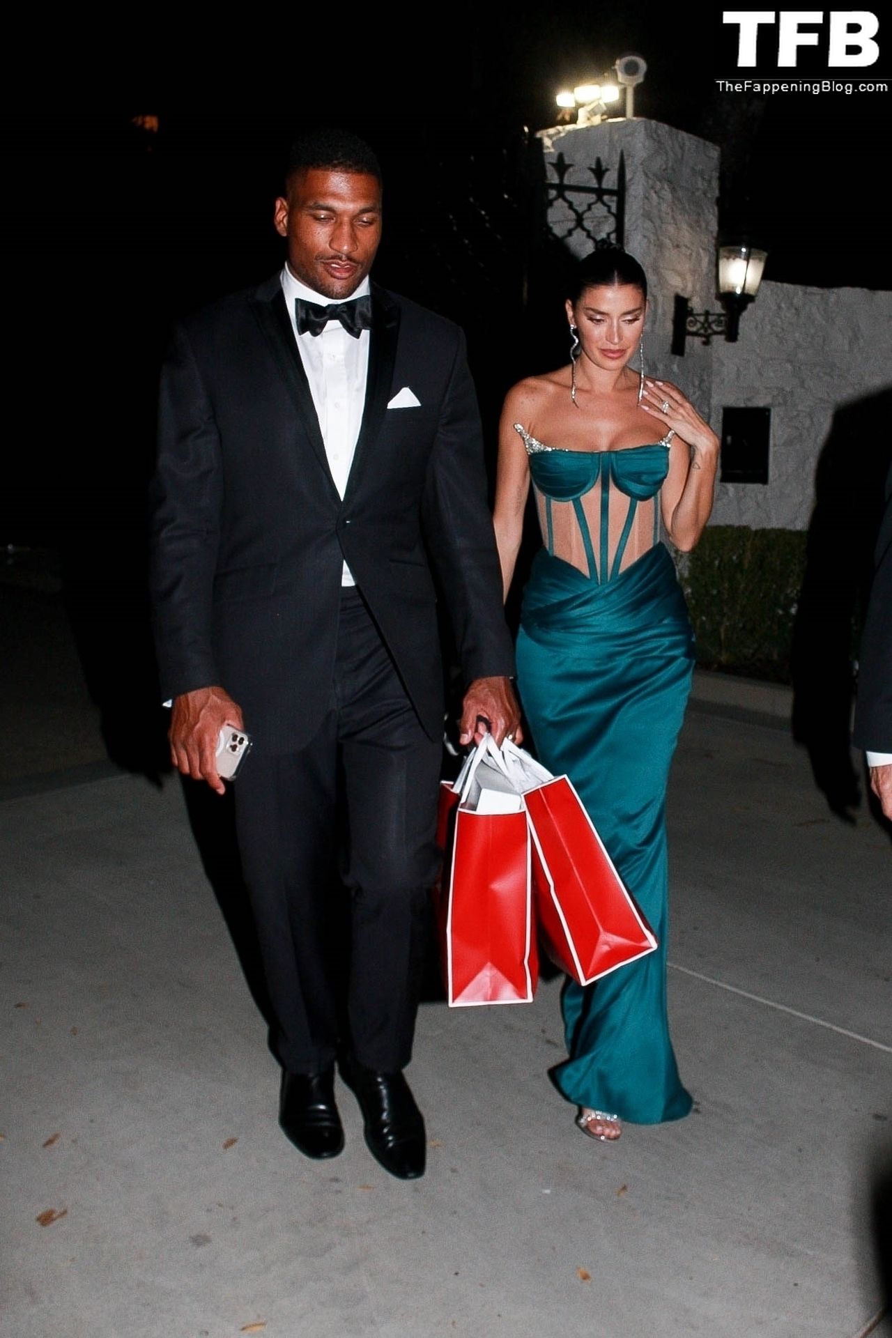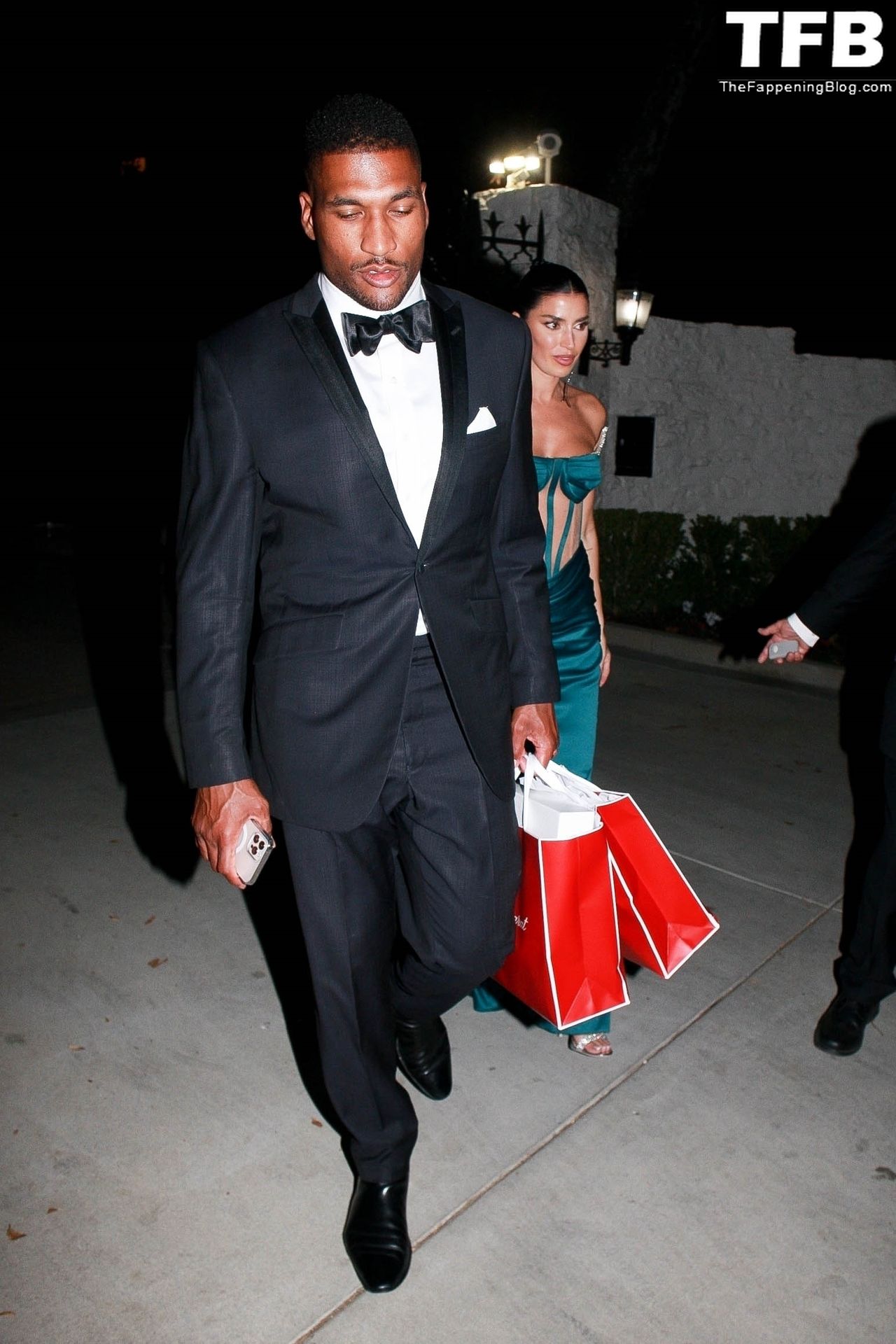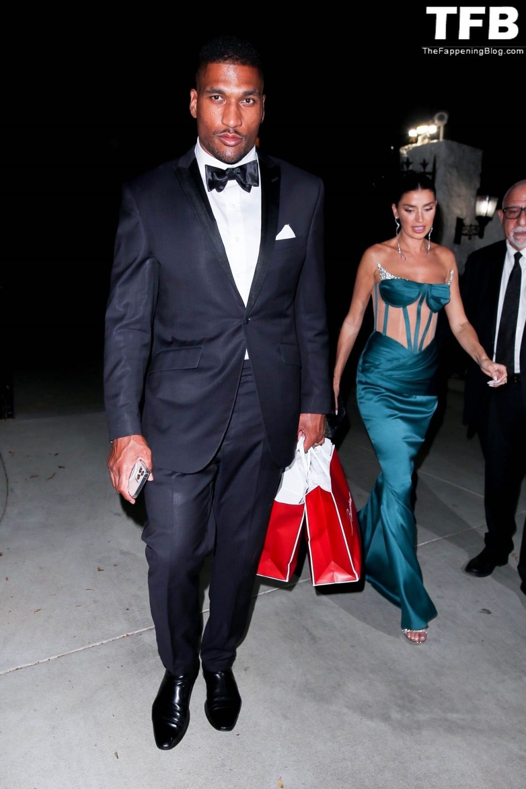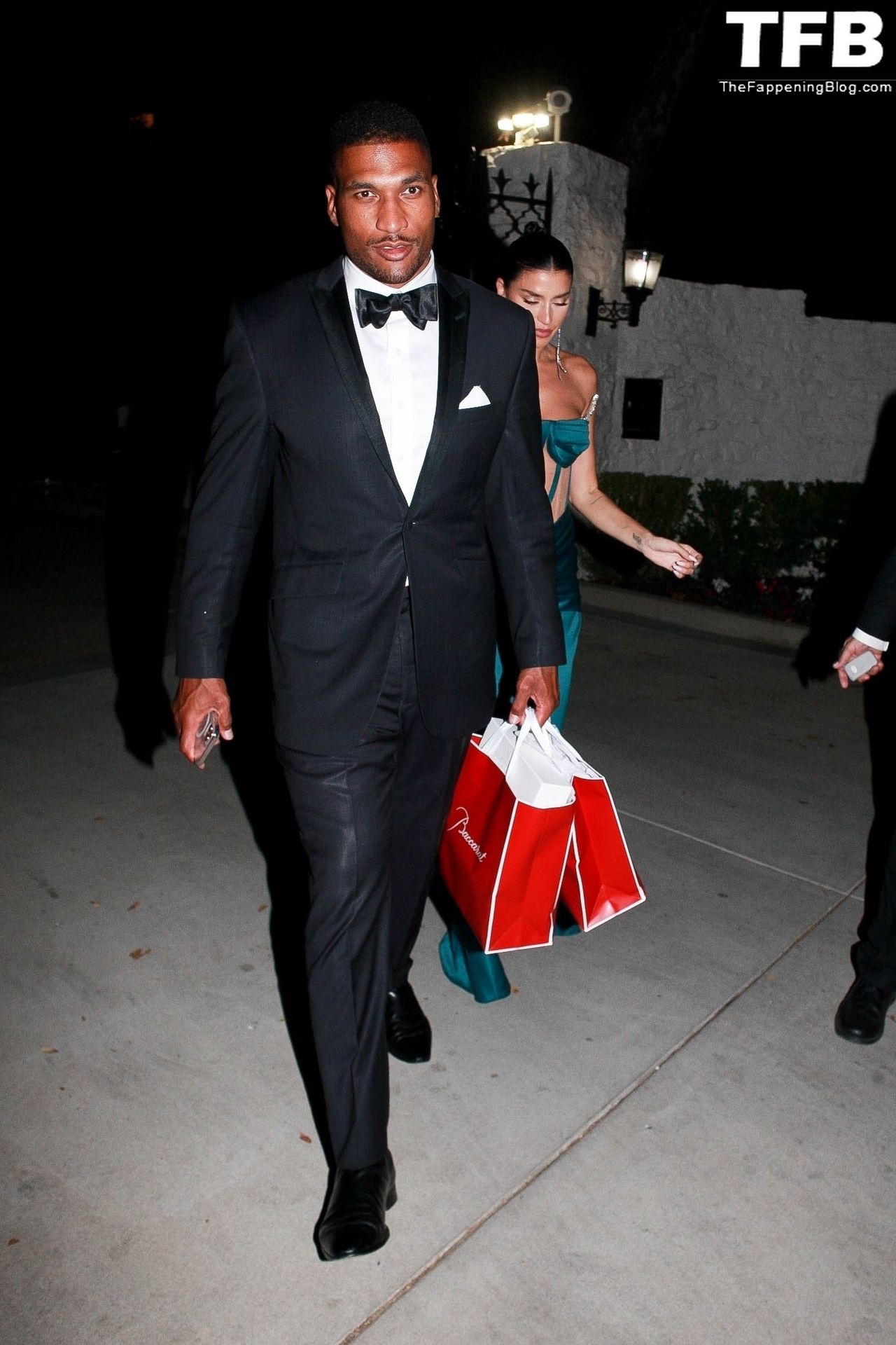 A estrela canadense do WAGS Nicole Williams e seu marido Larry English foram vistos saindo do casamento de Paris Hilton em Beverly Hills, 12/11/2021.