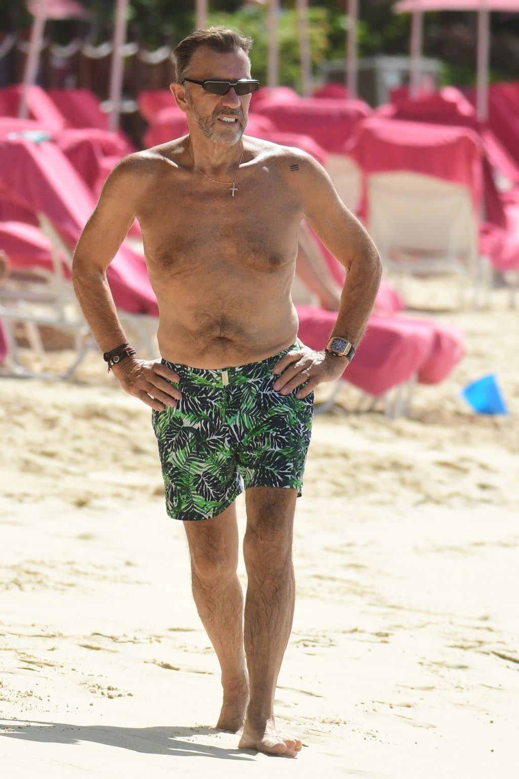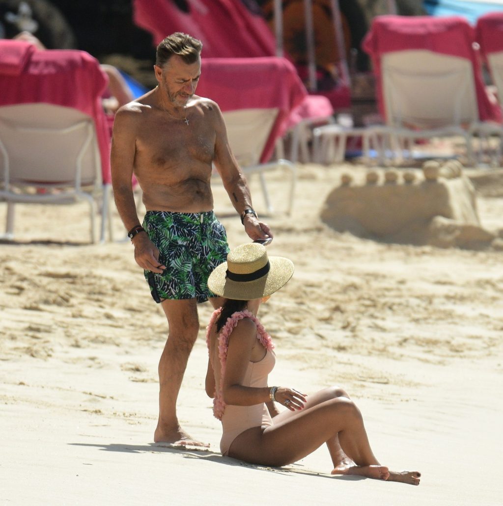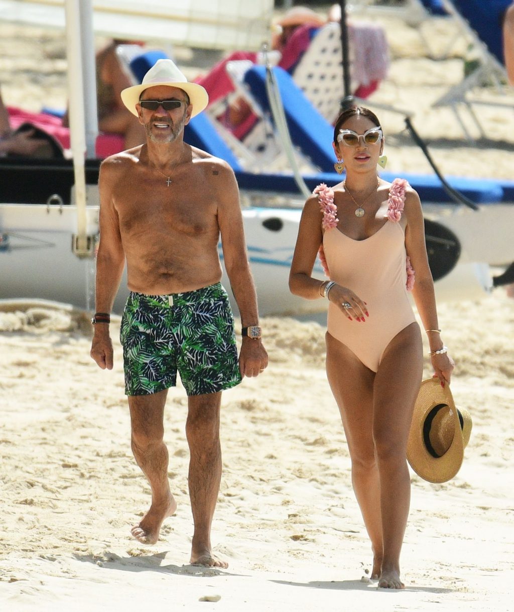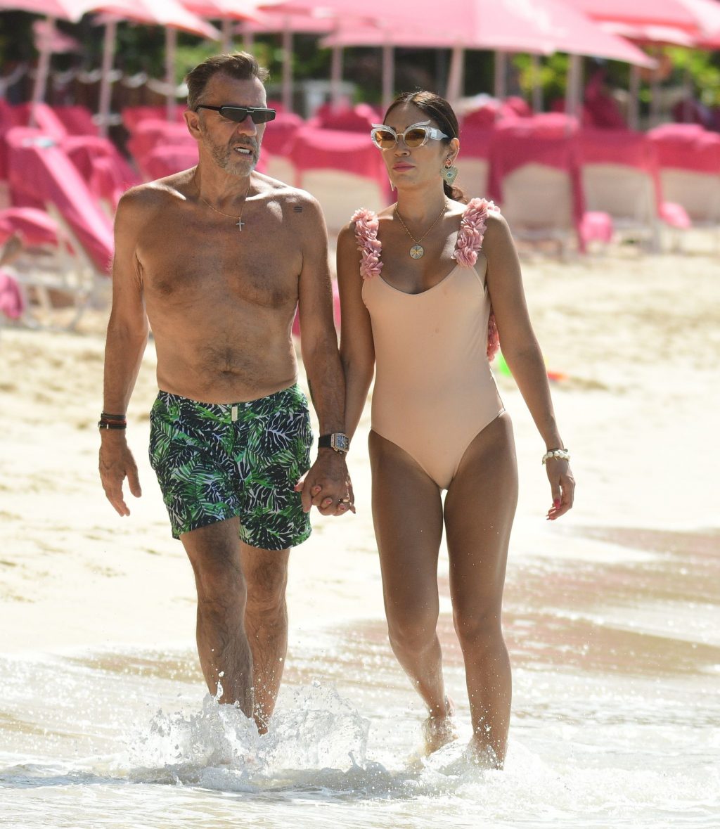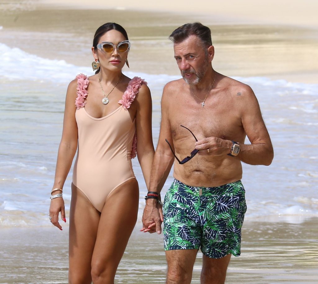 Duncan Bannatyne e sua esposa Nigora foram vistos no dia de Natal na praia em Barbados aproveitando as férias, 26/12/2019.