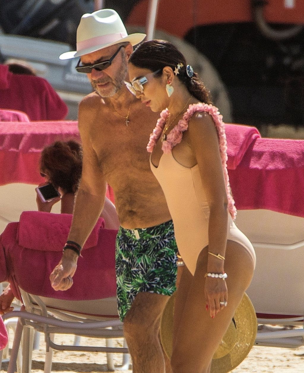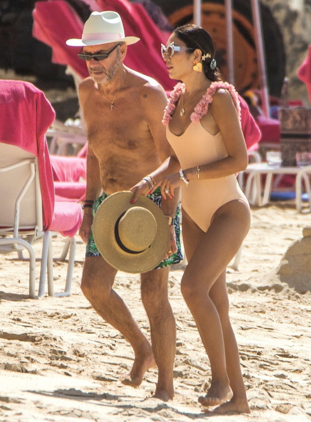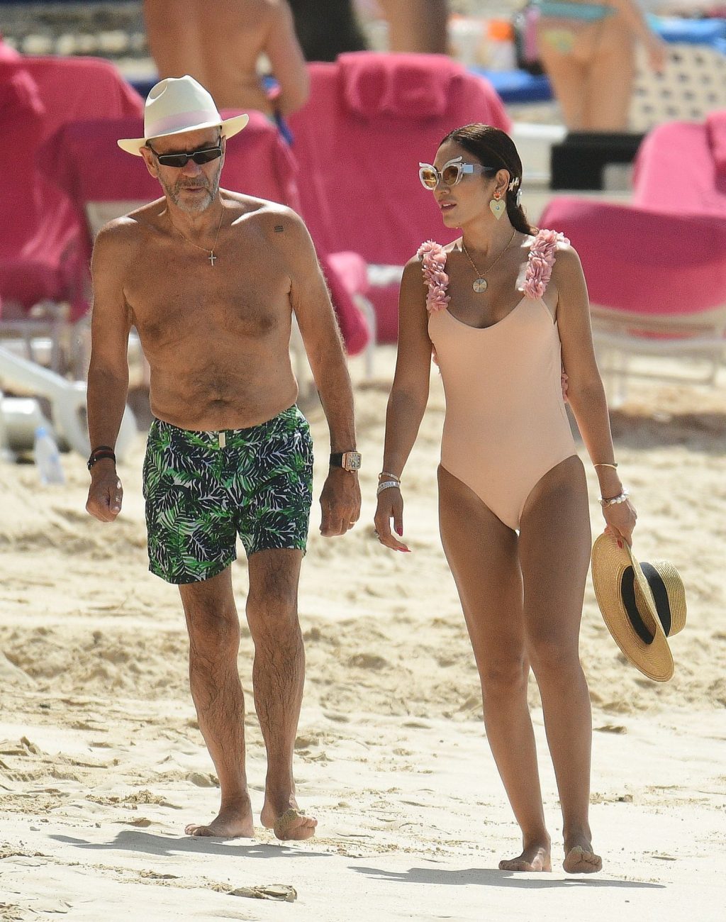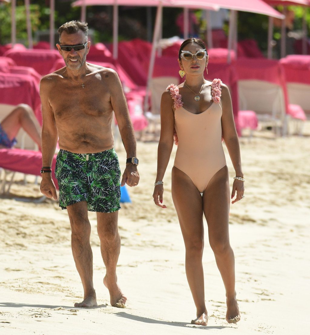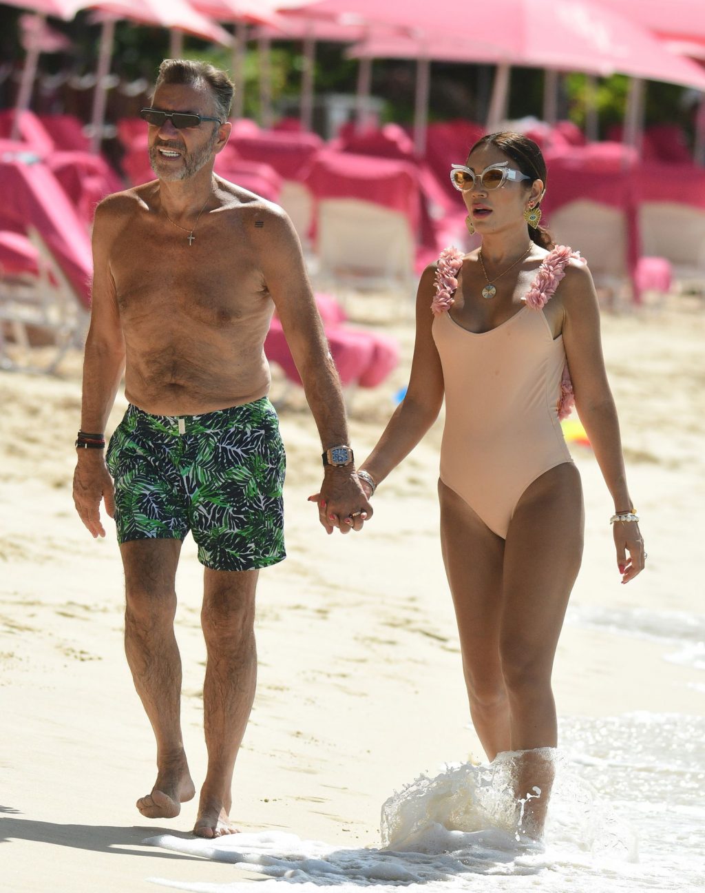 Duncan Bannatyne e sua esposa Nigora foram vistos no dia de Natal na praia em Barbados aproveitando as férias, 26/12/2019.