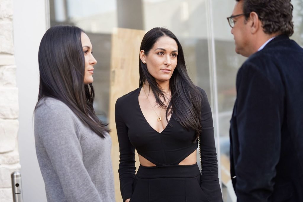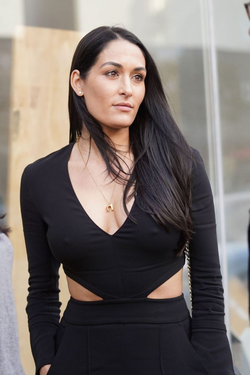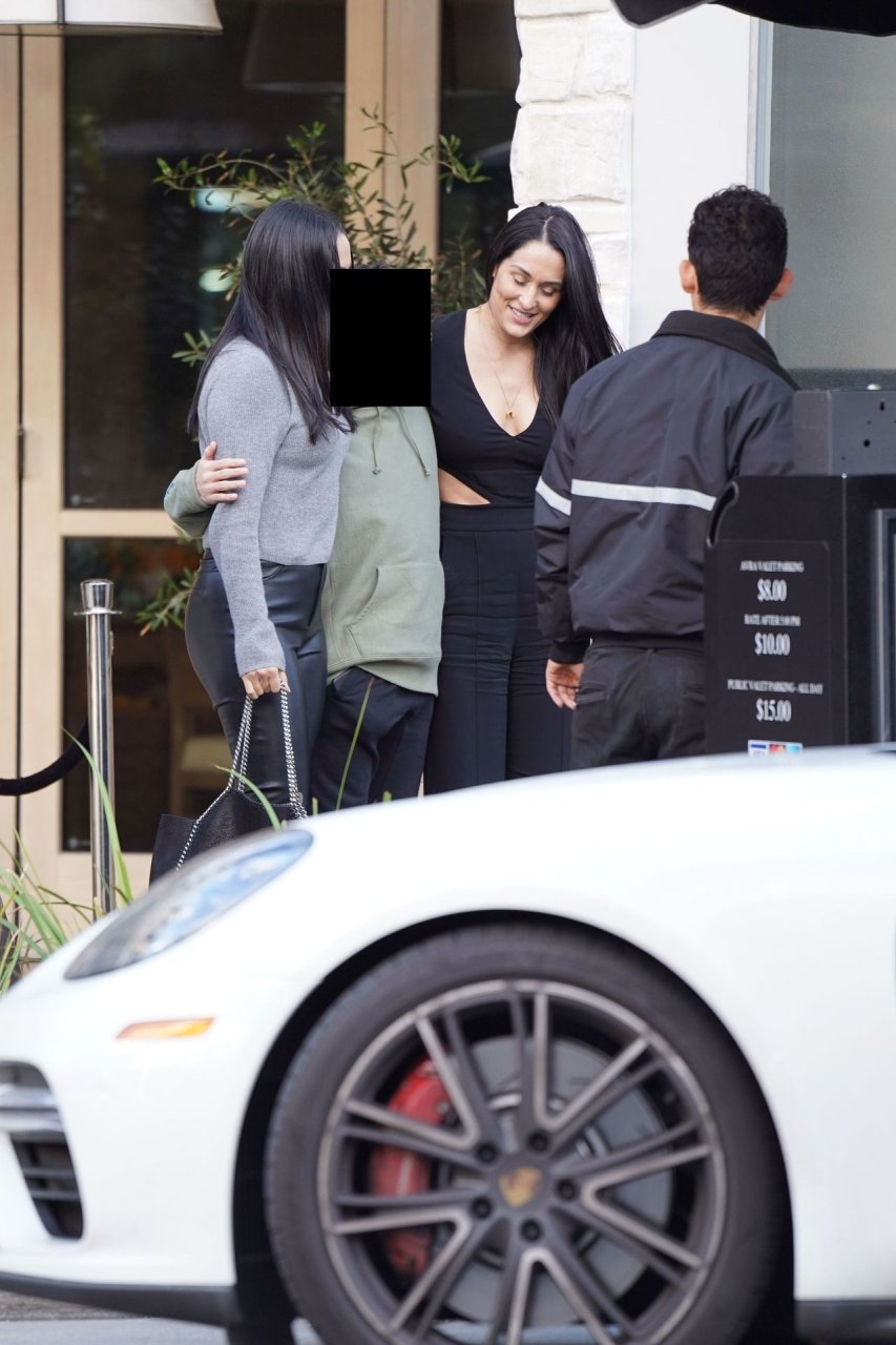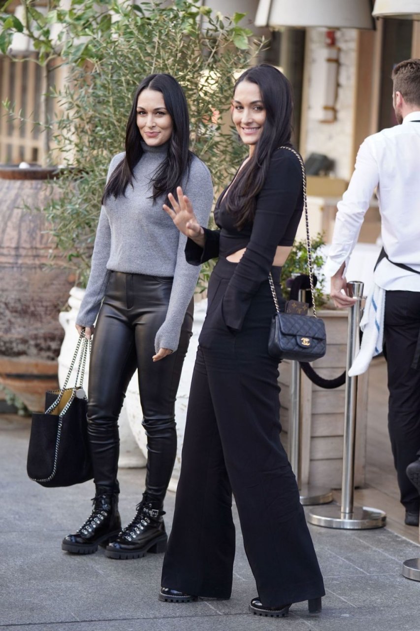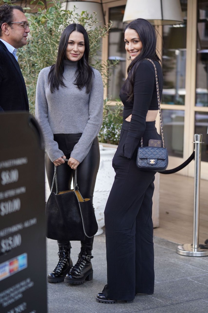 Nikki e Brie Bella fizeram uma exibição elegante ao saírem de uma reunião de almoço no Avra em Beverly Hills, 20/02/2019. As Bella Twins estavam todas sorridentes nesta tarde enquanto foram vistas tirando uma foto com um jovem fã animado, e esperavam pelo carro no valet.