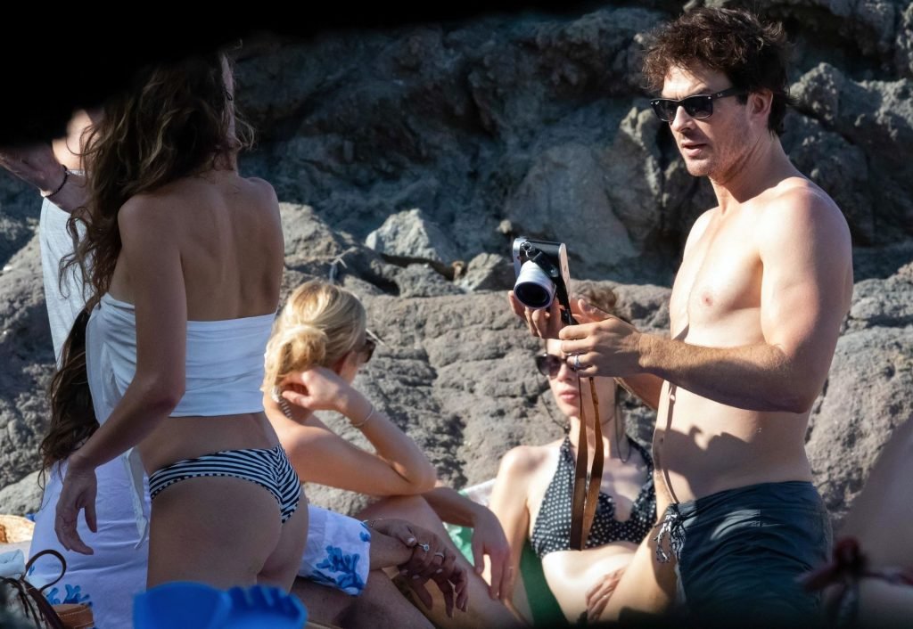 Ian Somerhalder e Nikki Reed aproveitam o fim do verão em Ibiza, 19/09/2019. A dupla foi vista mostrando um pouco de PDA enquanto ficam carinhosos deitados na praia.