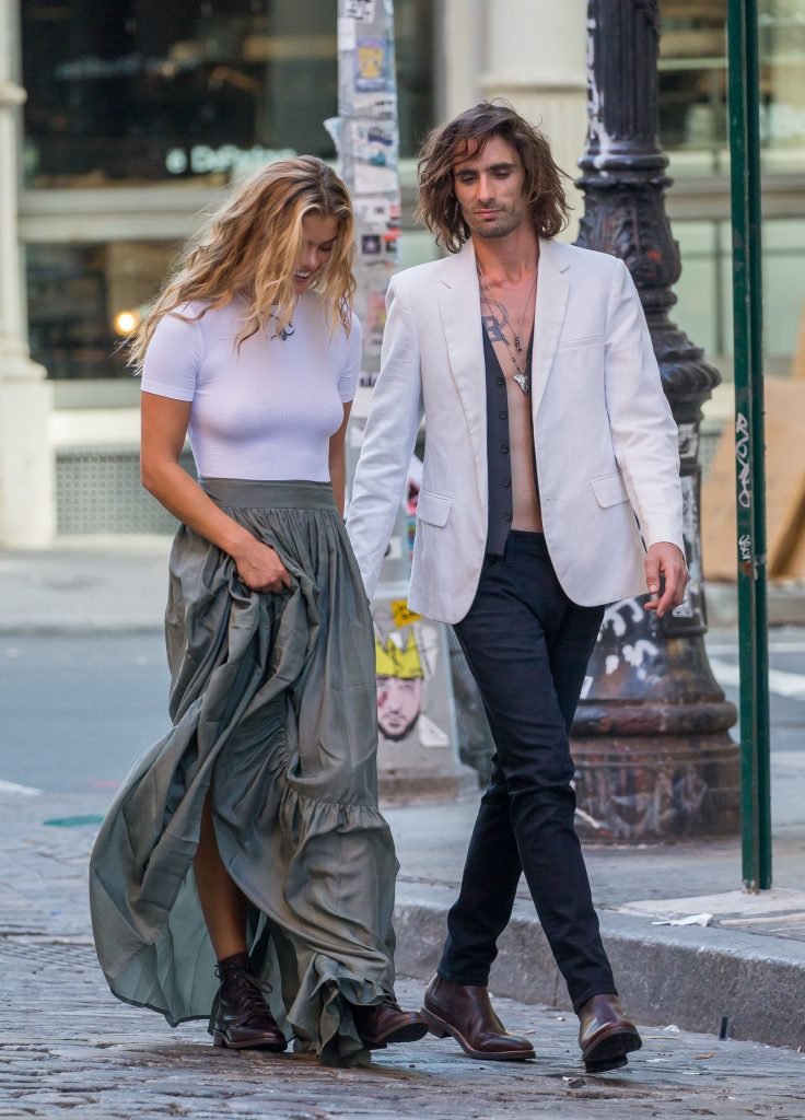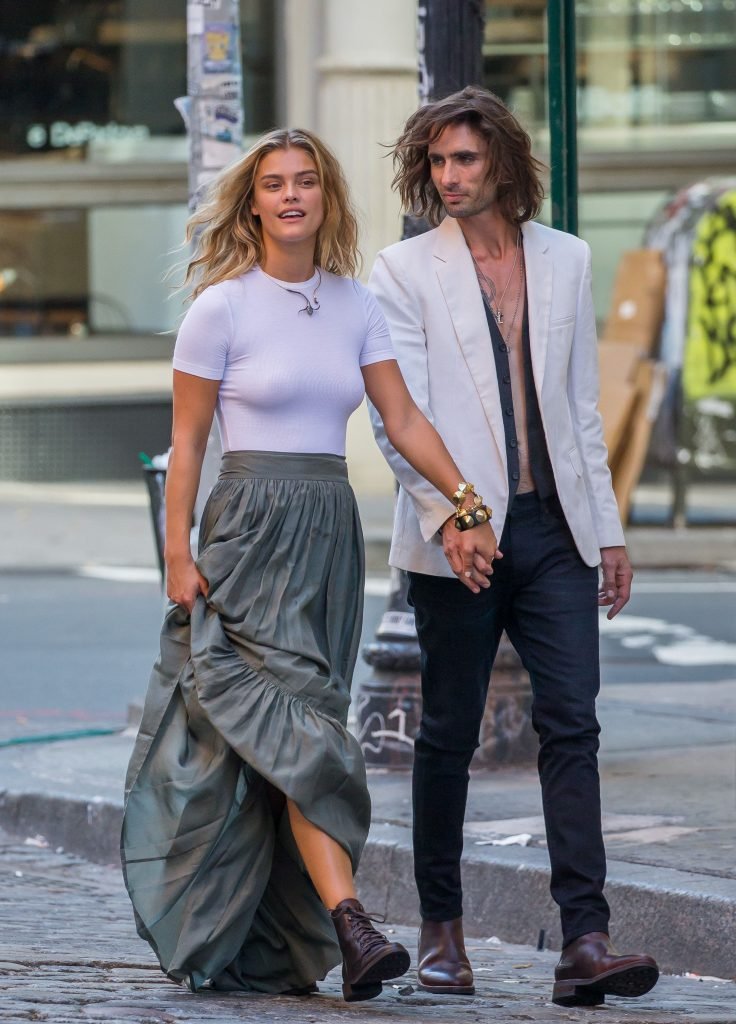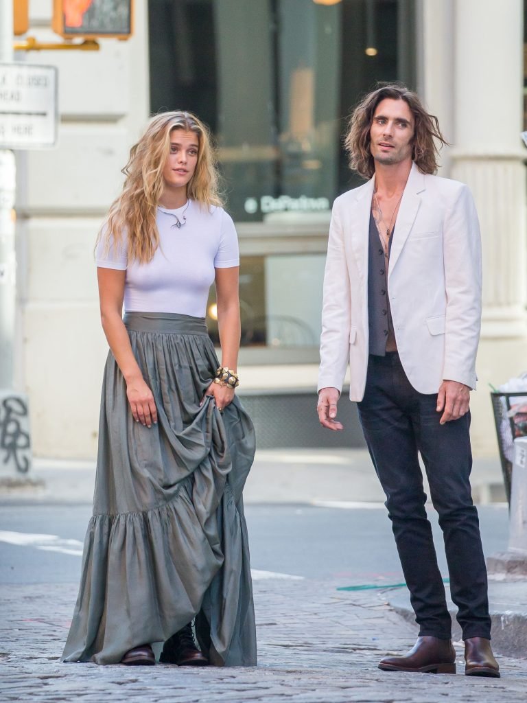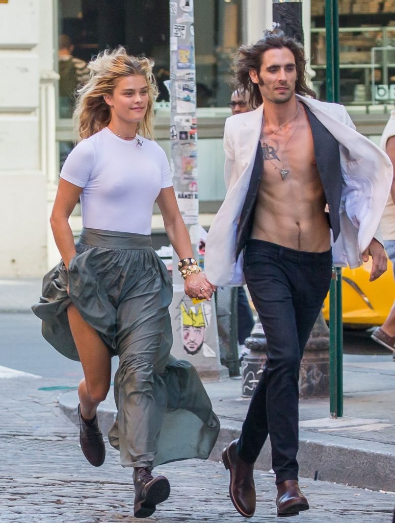 A modelo dinamarquesa de 25 anos Nina Agdal é vista com Tyson Ritter em uma sessão de fotos em Soho, Nova York, 24/08/2017.