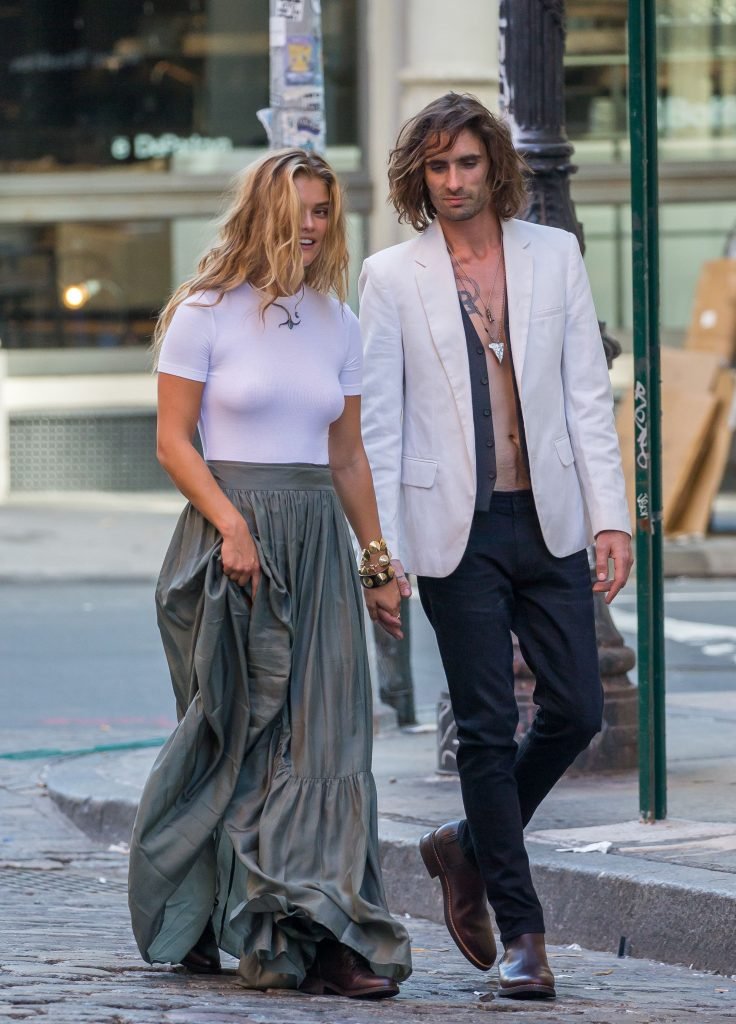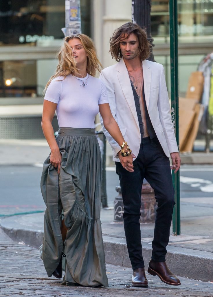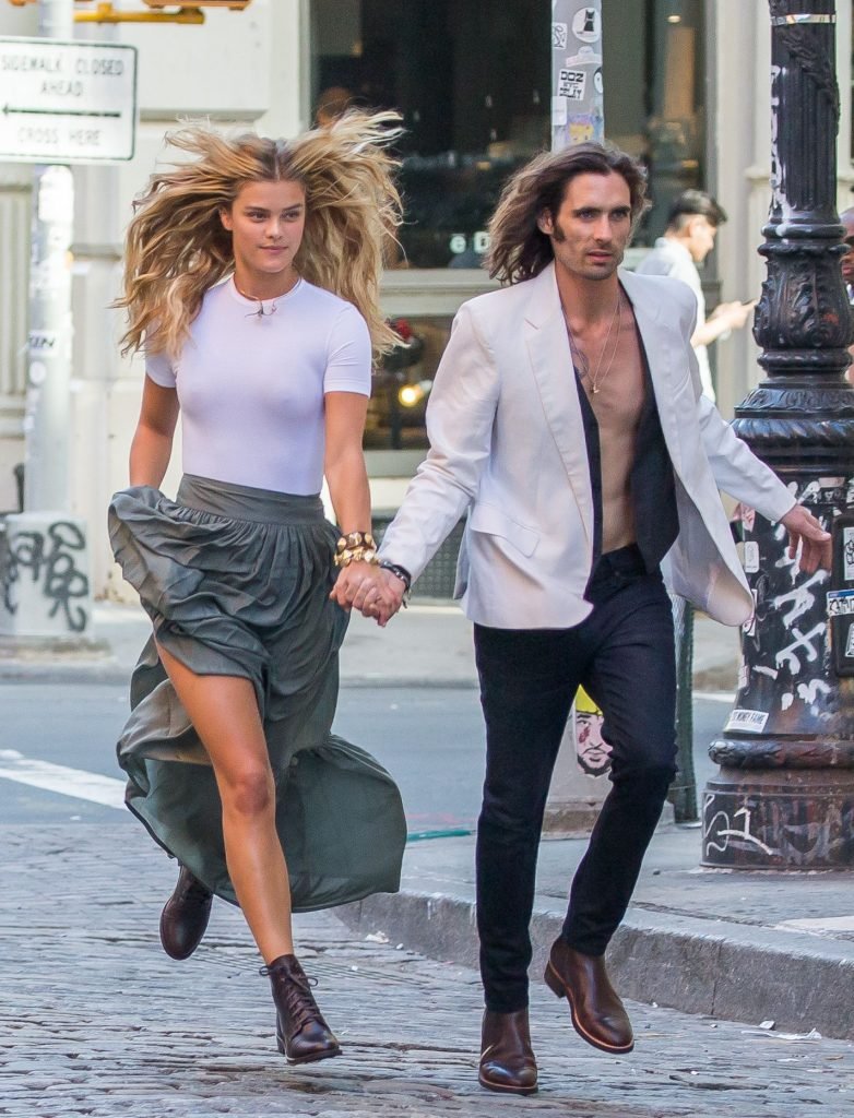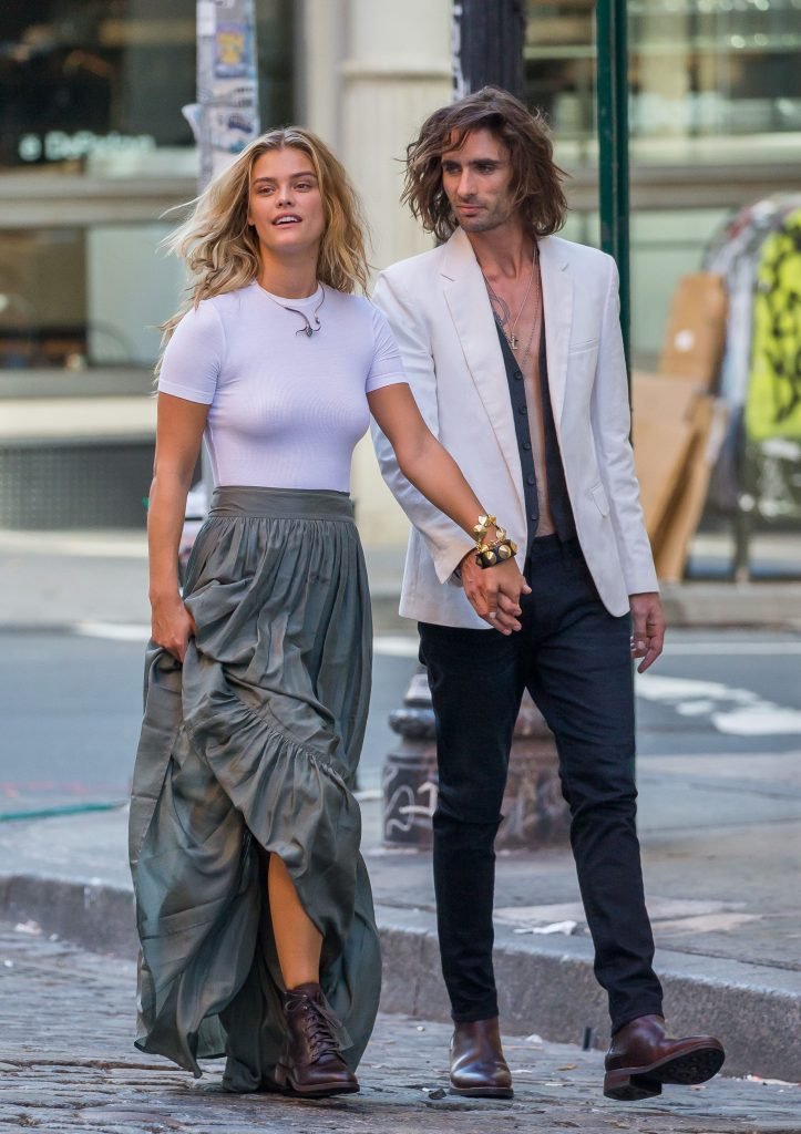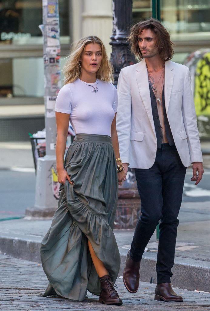 A modelo dinamarquesa de 25 anos Nina Agdal é vista com Tyson Ritter em uma sessão de fotos em Soho, Nova York, 24/08/2017.