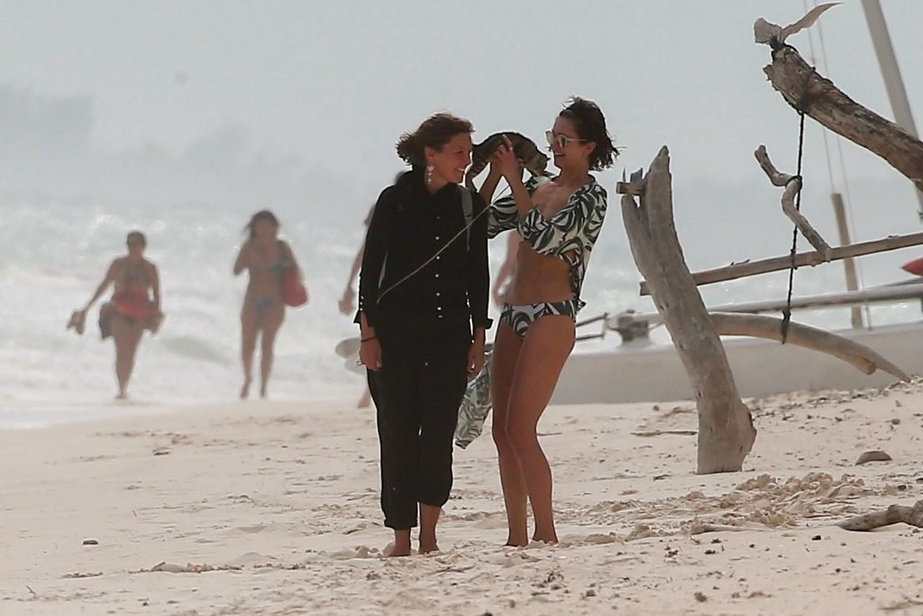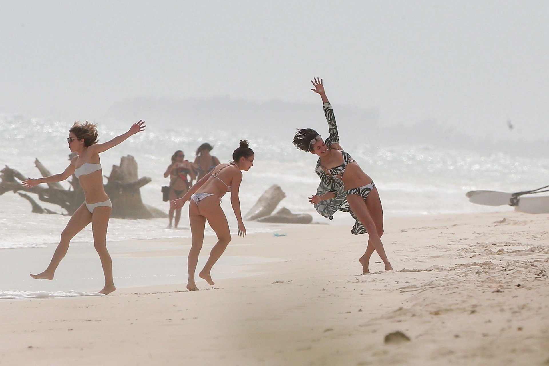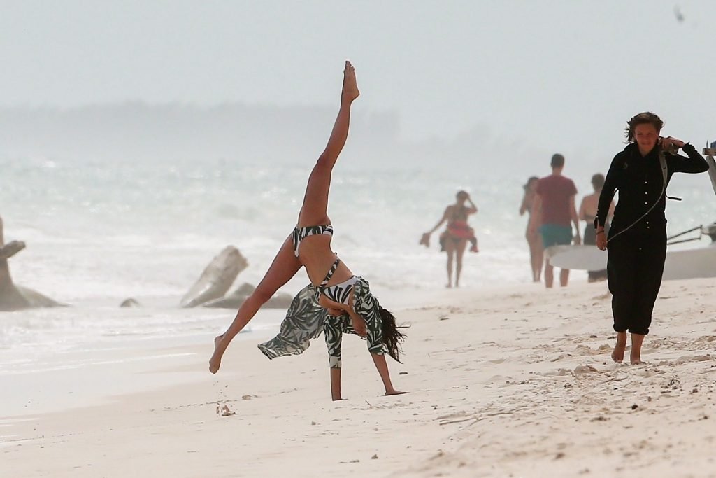Nina Dobrev troca vários biquínis enquanto aproveita um dia na praia em Tulum, México, 18/01/2018.