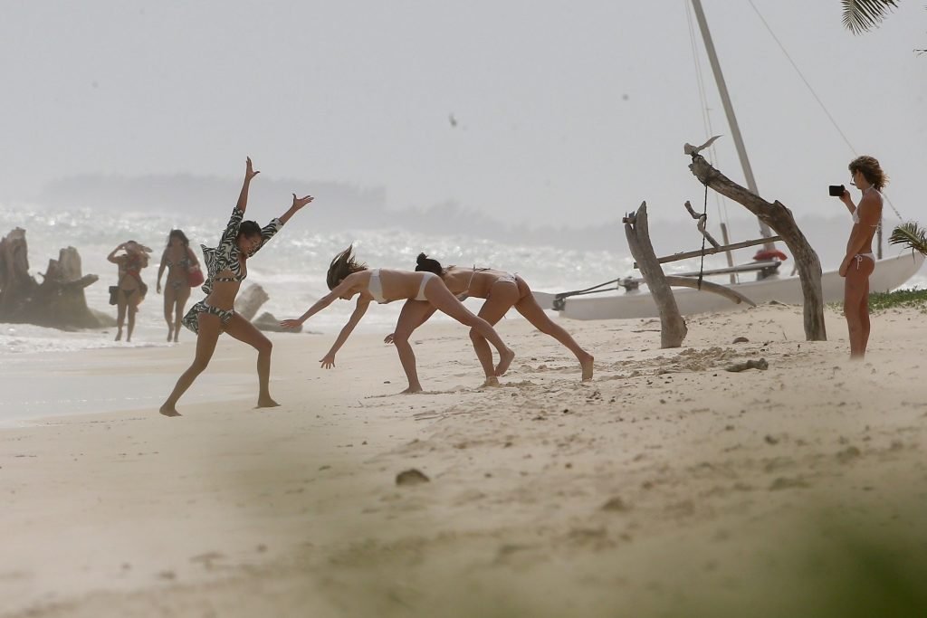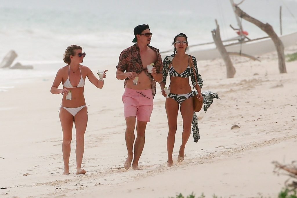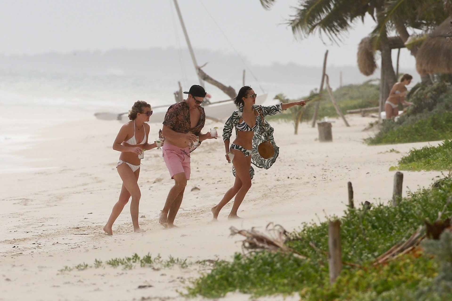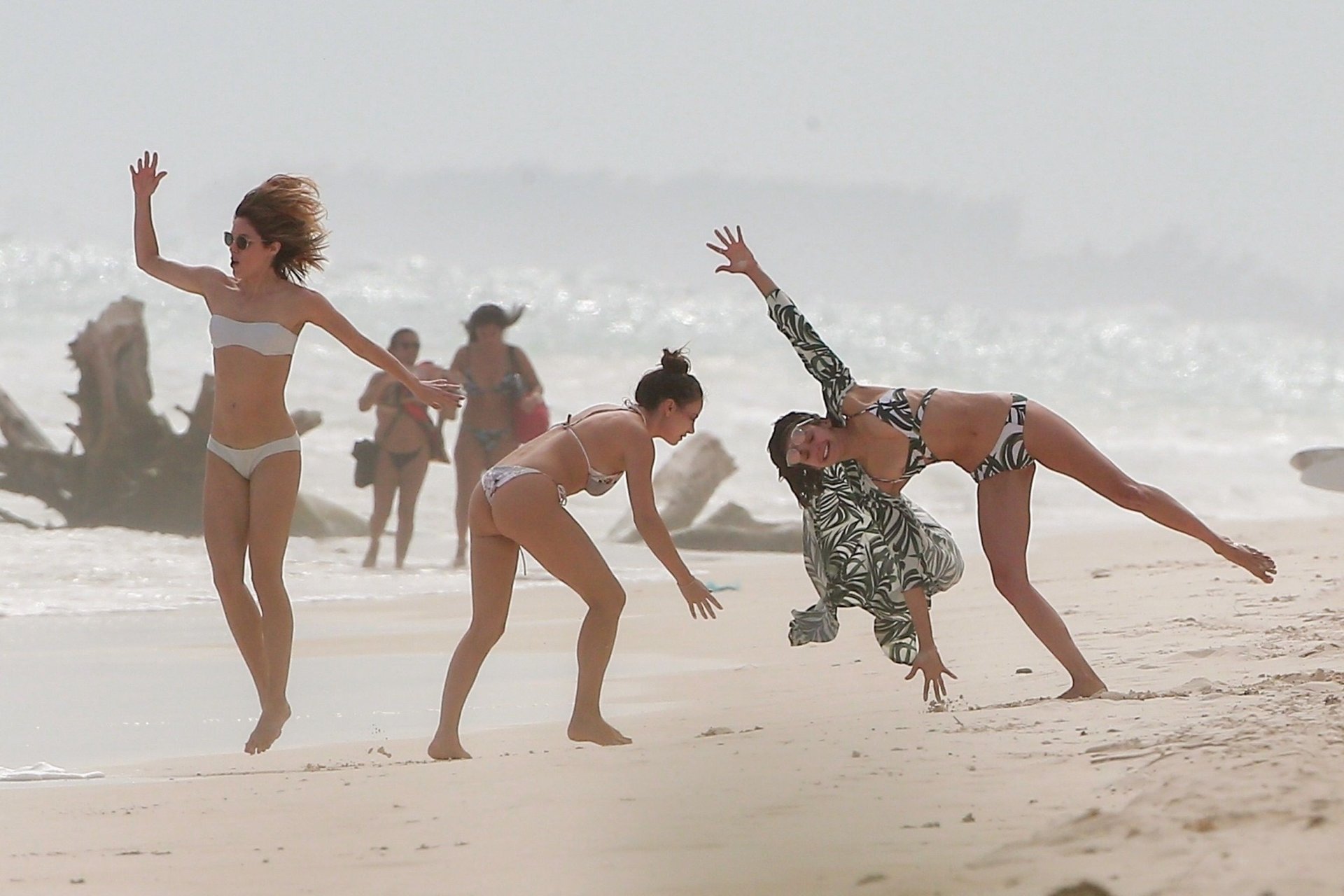 Nina Dobrev troca vários biquínis enquanto aproveita um dia na praia em Tulum, México, 18/01/2018.