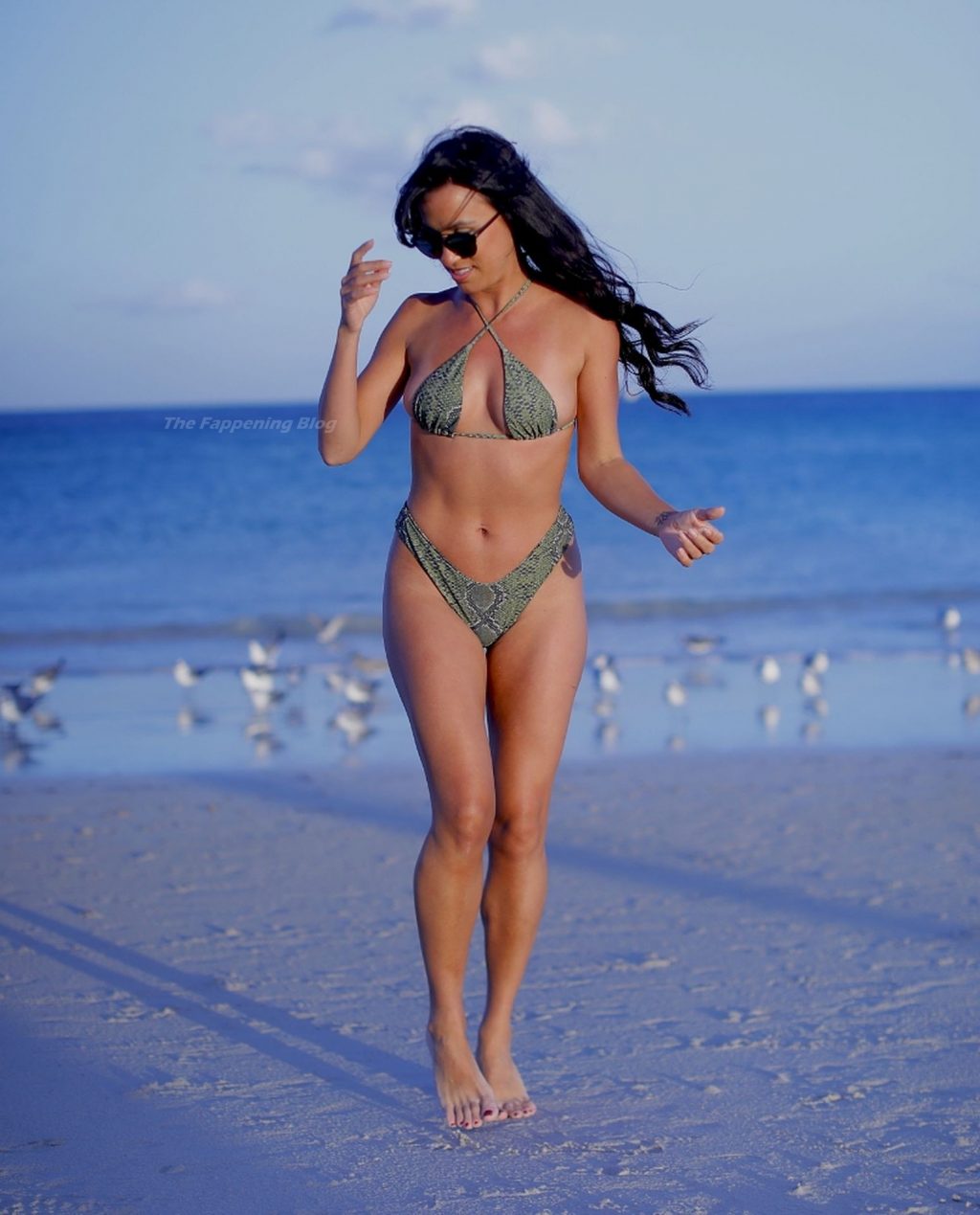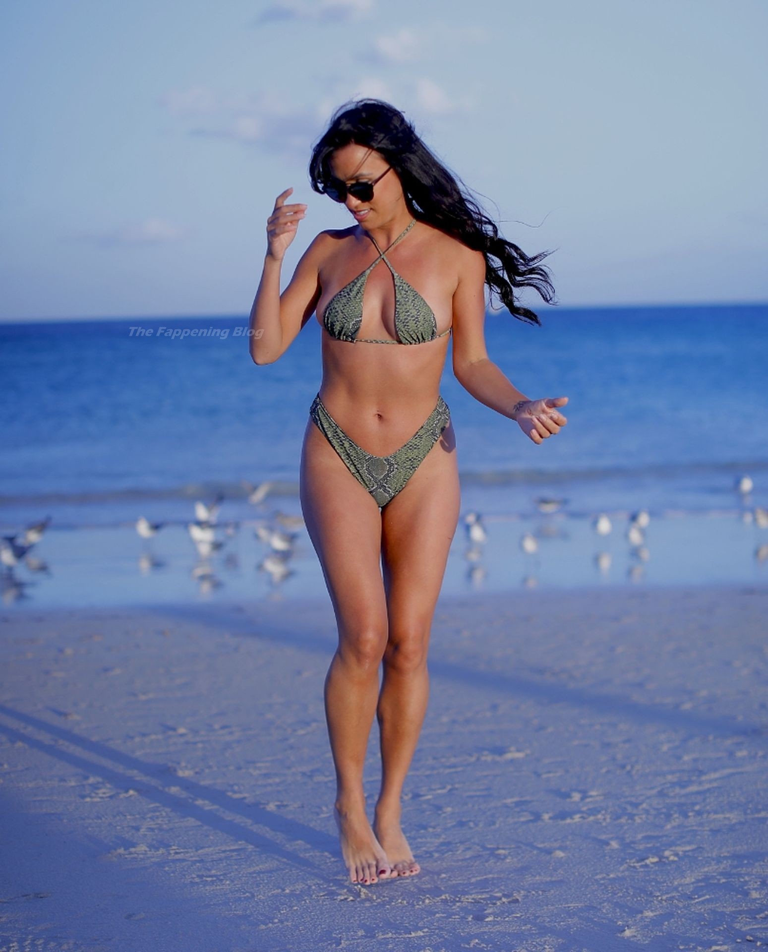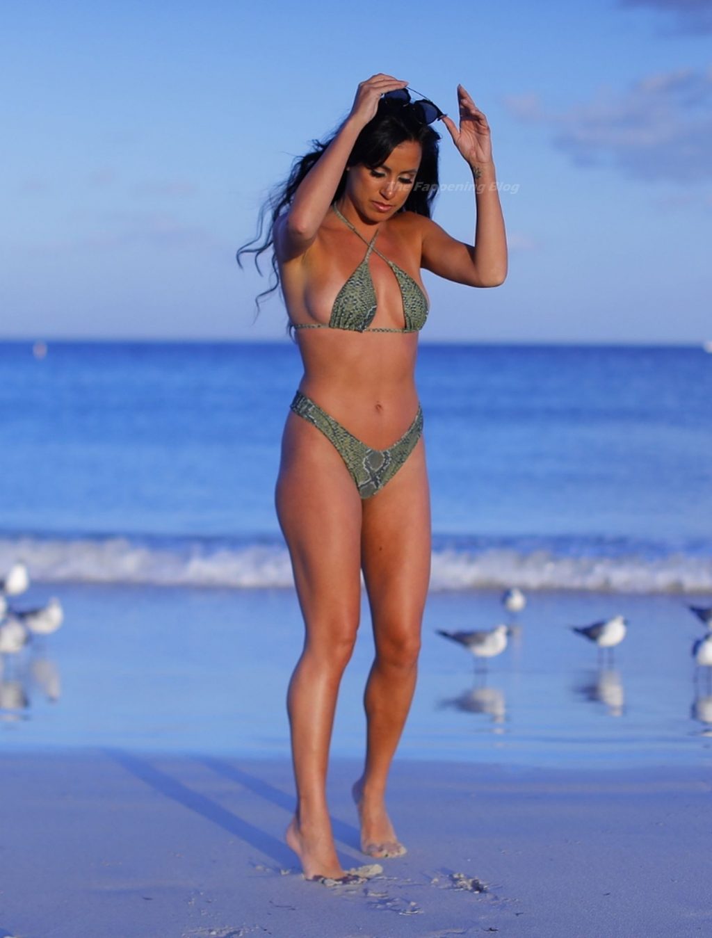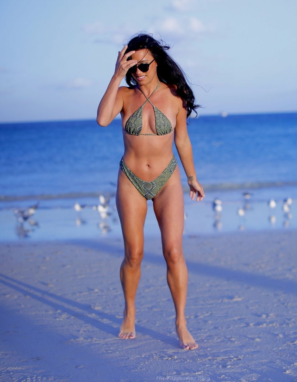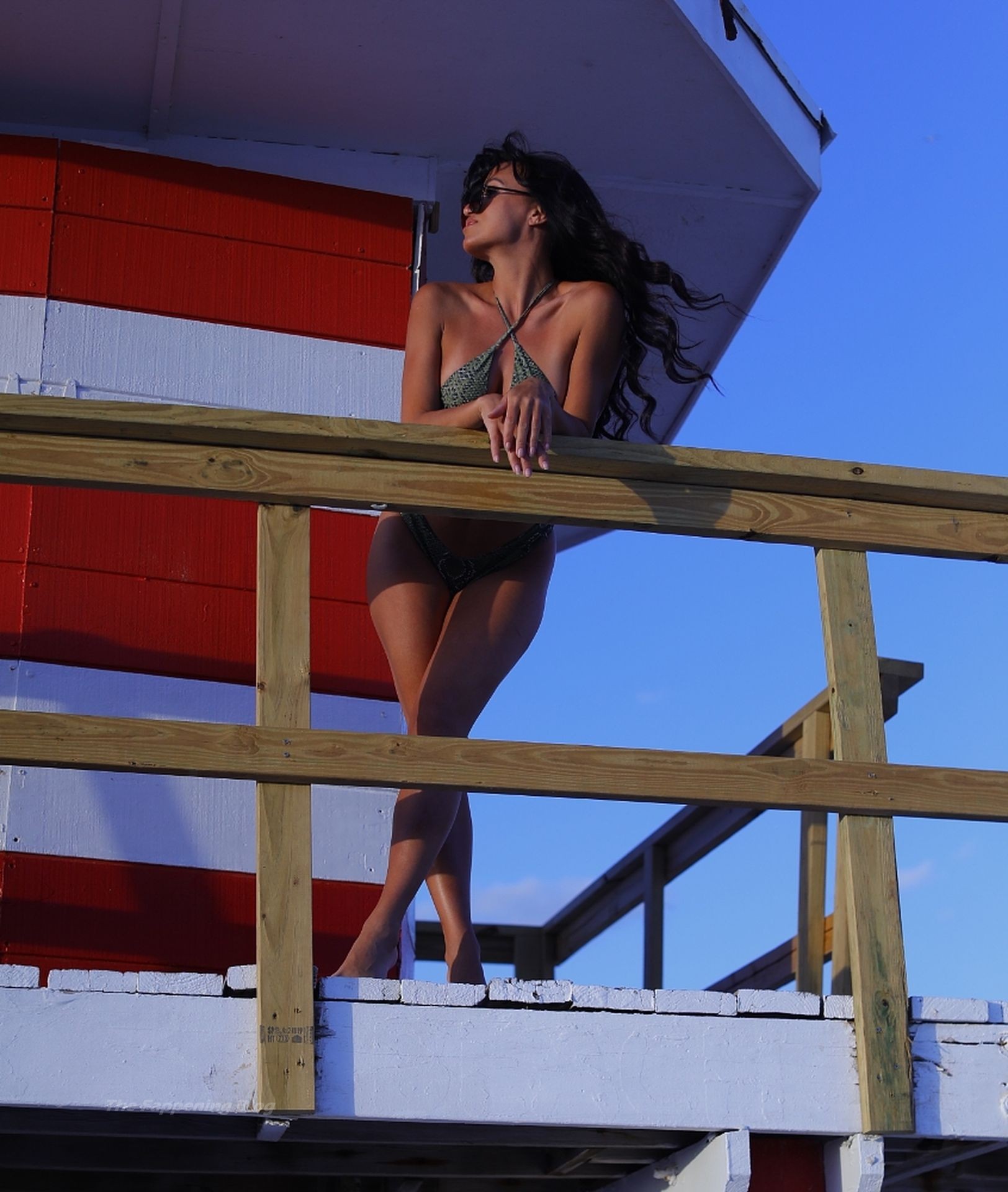 A estilista italiana e modelo de moda praia Nina Sicurella exibe suas curvas em um biquíni pequeno na Praia de Miami, 01/02/2021. A modelo foi vista em um posto de salva-vidas e estava sorridente enquanto aproveitava a praia.