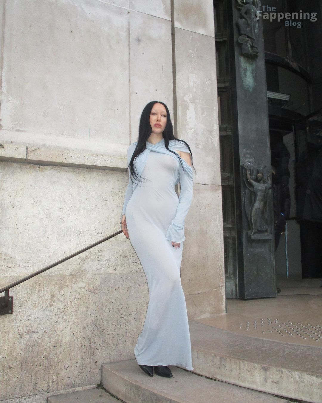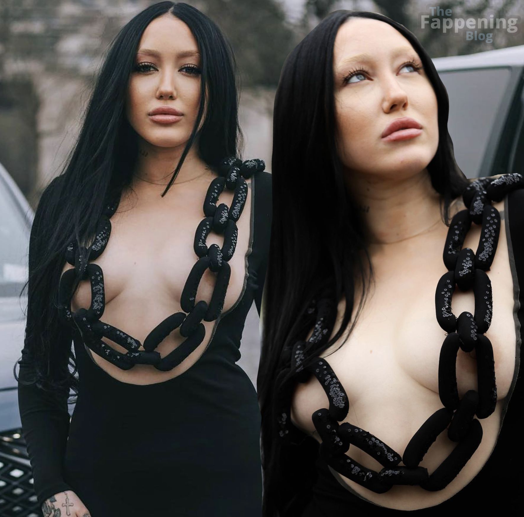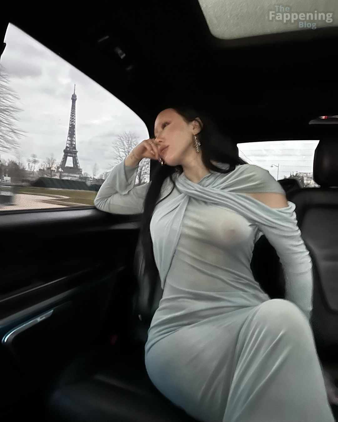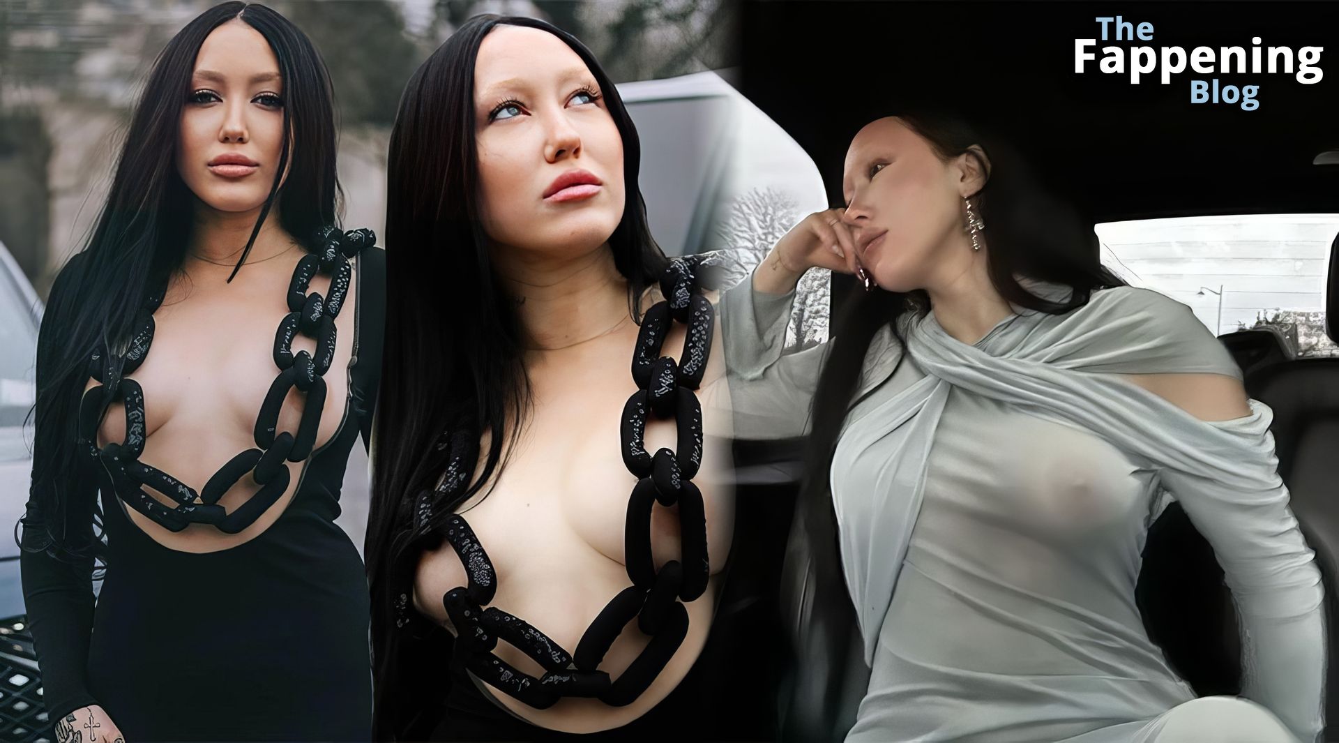Noah Cyrus estava arrasando com um vestido azul totalmente transparente, exibindo sua silhueta a caminho de um desfile de moda em Paris. A cantora mantém seu estilo, mostrando seus atributos com esse look parisiense, exibindo bastante o mamilo. Confira mais fotos dos mamilos de Noah Cyrus em Paris na galeria!