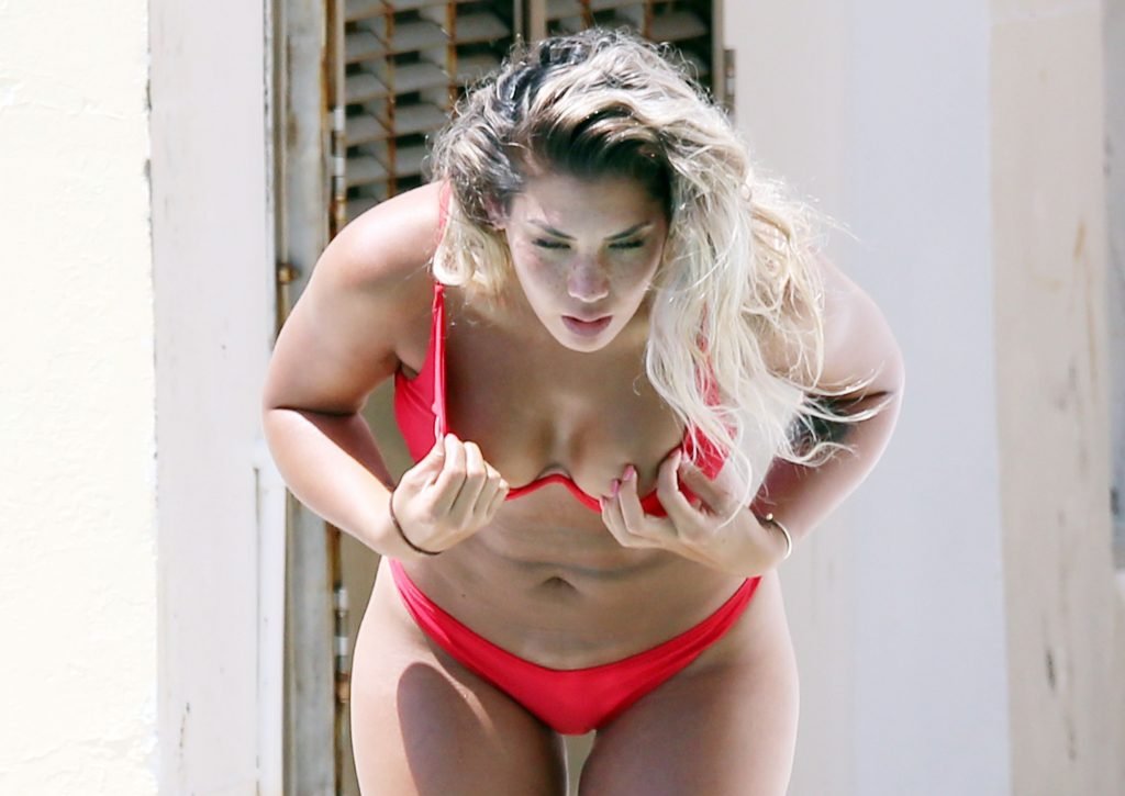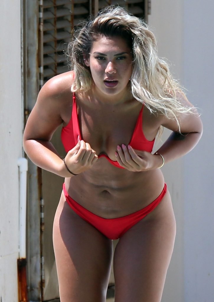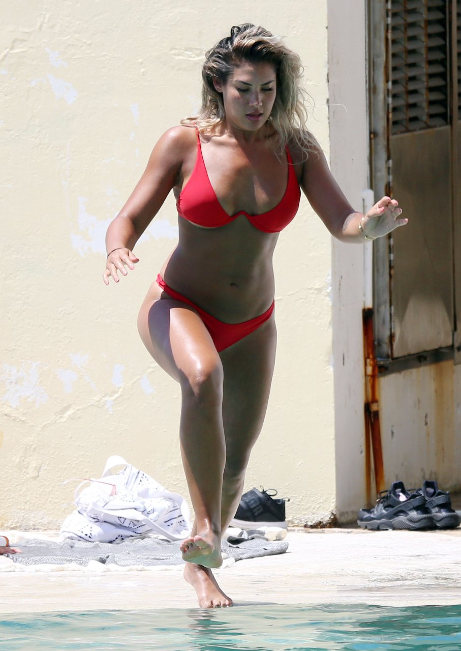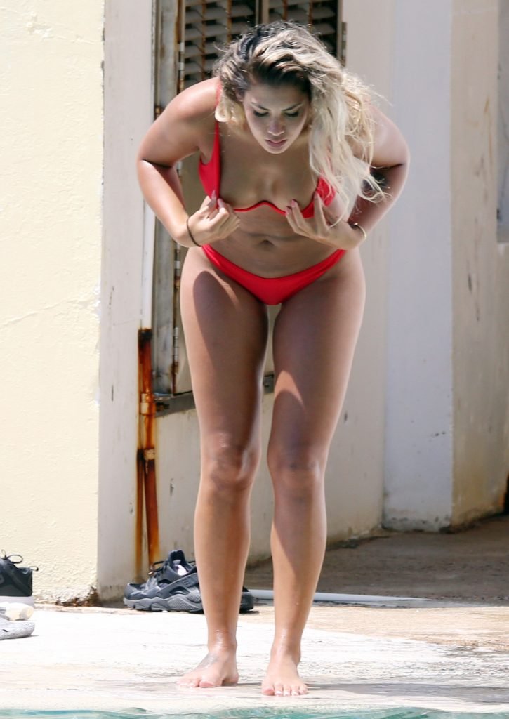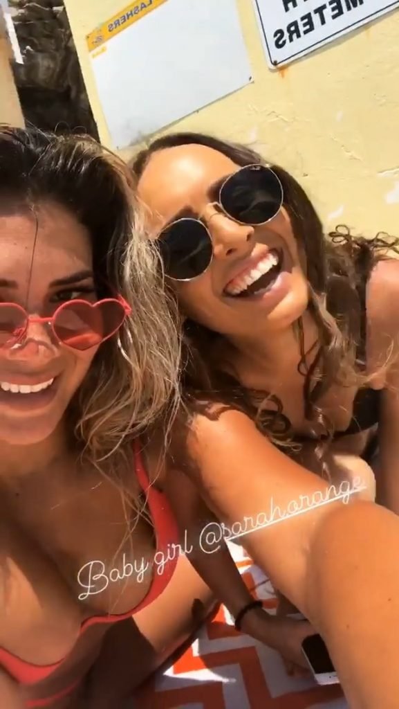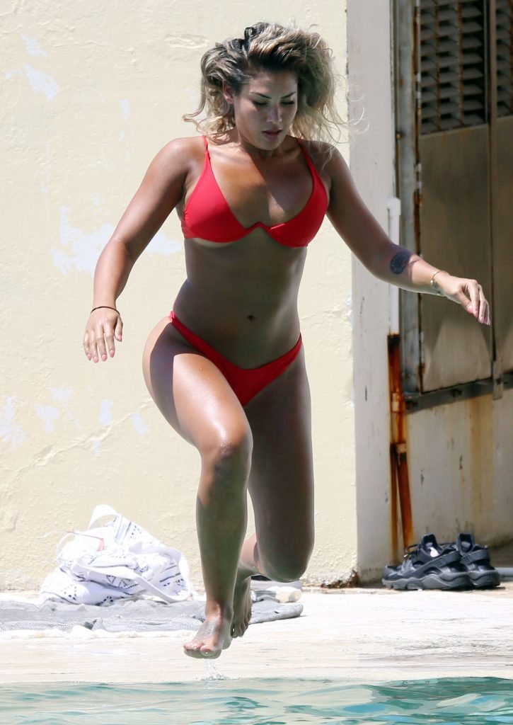 ‘The Bachelor’ favorita Noni Janur, 27, exibe seu corpo sexy em um biquíni vermelho enquanto toma sol e nada com uma amiga na Bronte Pool, Sydney, 12/02/2018.