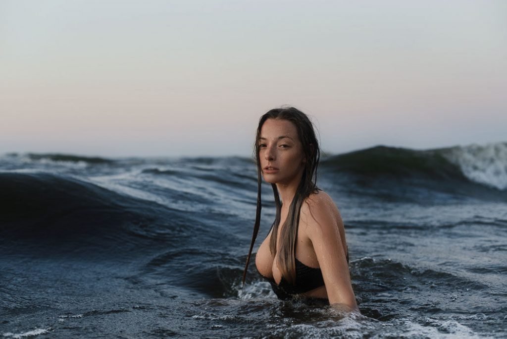 Modelo russa de seios fartos Olga Kobzar Olga Kobzar mostrou como ela se parece com a Rainha do Mar em um ensaio fotográfico nua por Tatiana Mertsalova (2017).